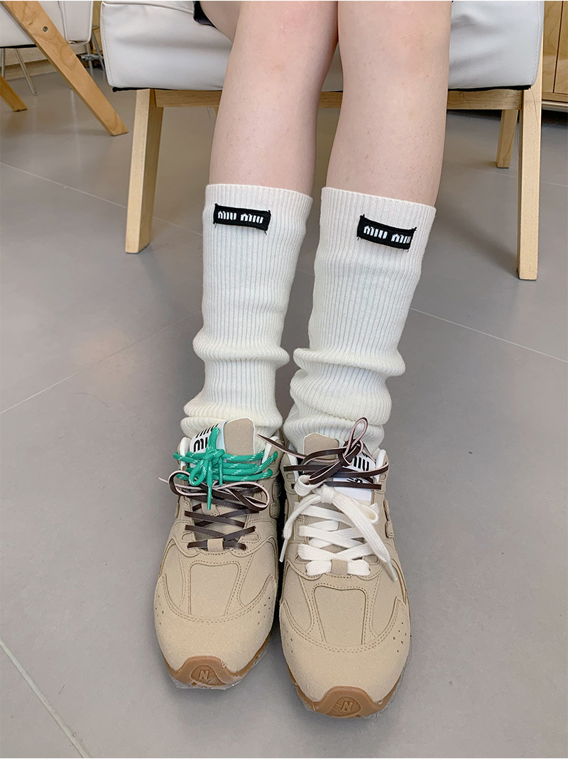 새로운 Miu 스타일 유행 편지 더미 통기성 여성 양말 Ins 스타일 송아지 중간 배럴 양말 봄 여름 얇은 다리 커버