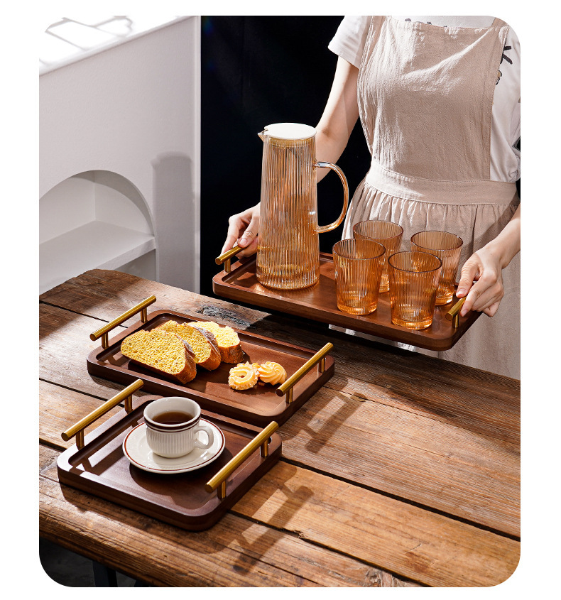일본식 직사각형 양손잡이 금색 손잡이 나무 트레이 차 트레이 레트로 수납 트레이 과일 디스플레이 트레이 라이트 럭셔리스토어 가기