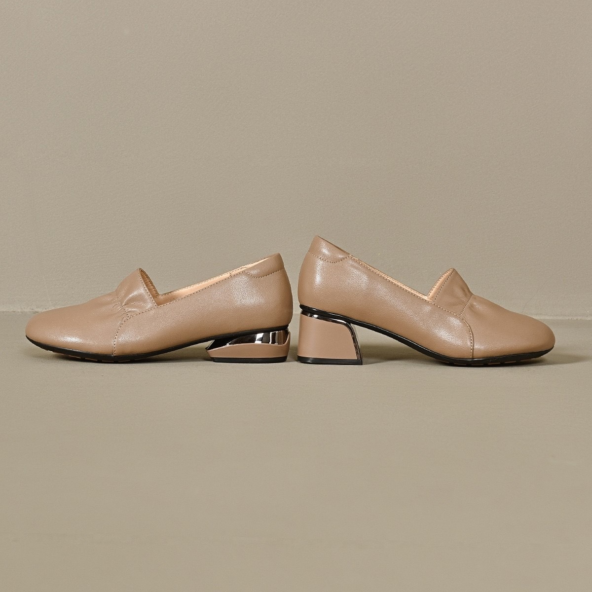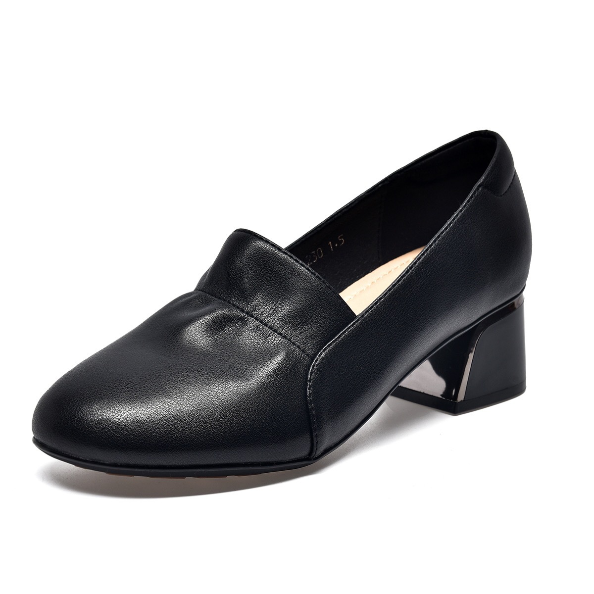 봄 2024 새로운 정품 가죽 하이힐 여성의 뾰족한 두꺼운 힐 유행 낮은 vat 싱글 신발 여성을위한 미드 힐 올 매치 가죽 신발스토어 가기