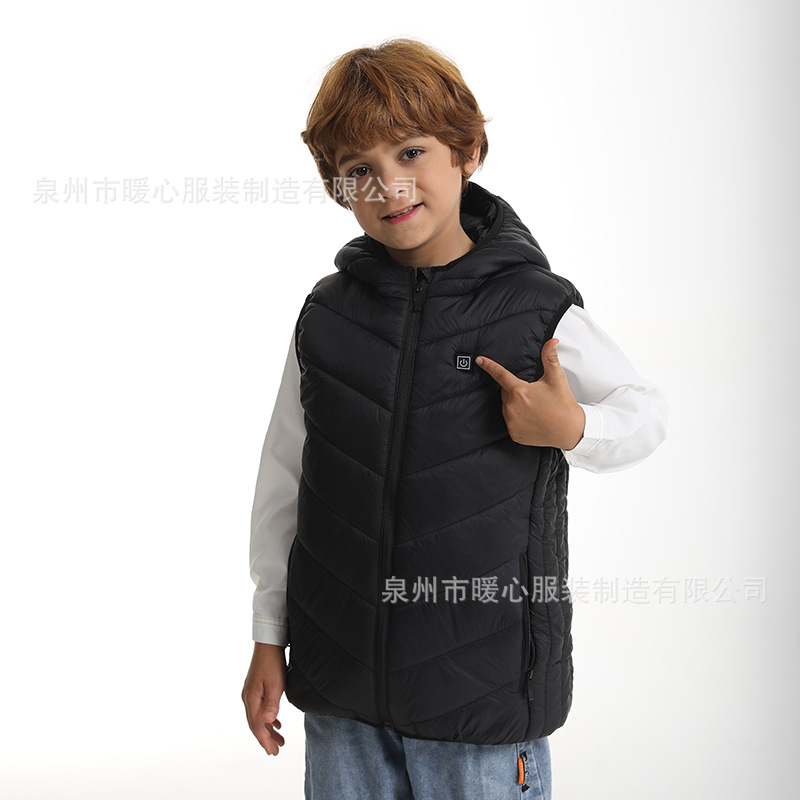 어린이 난방 조끼 후드 가열 면 옷 난방 조끼 남녀 10 대 전기 난방 조끼 따뜻한 조끼