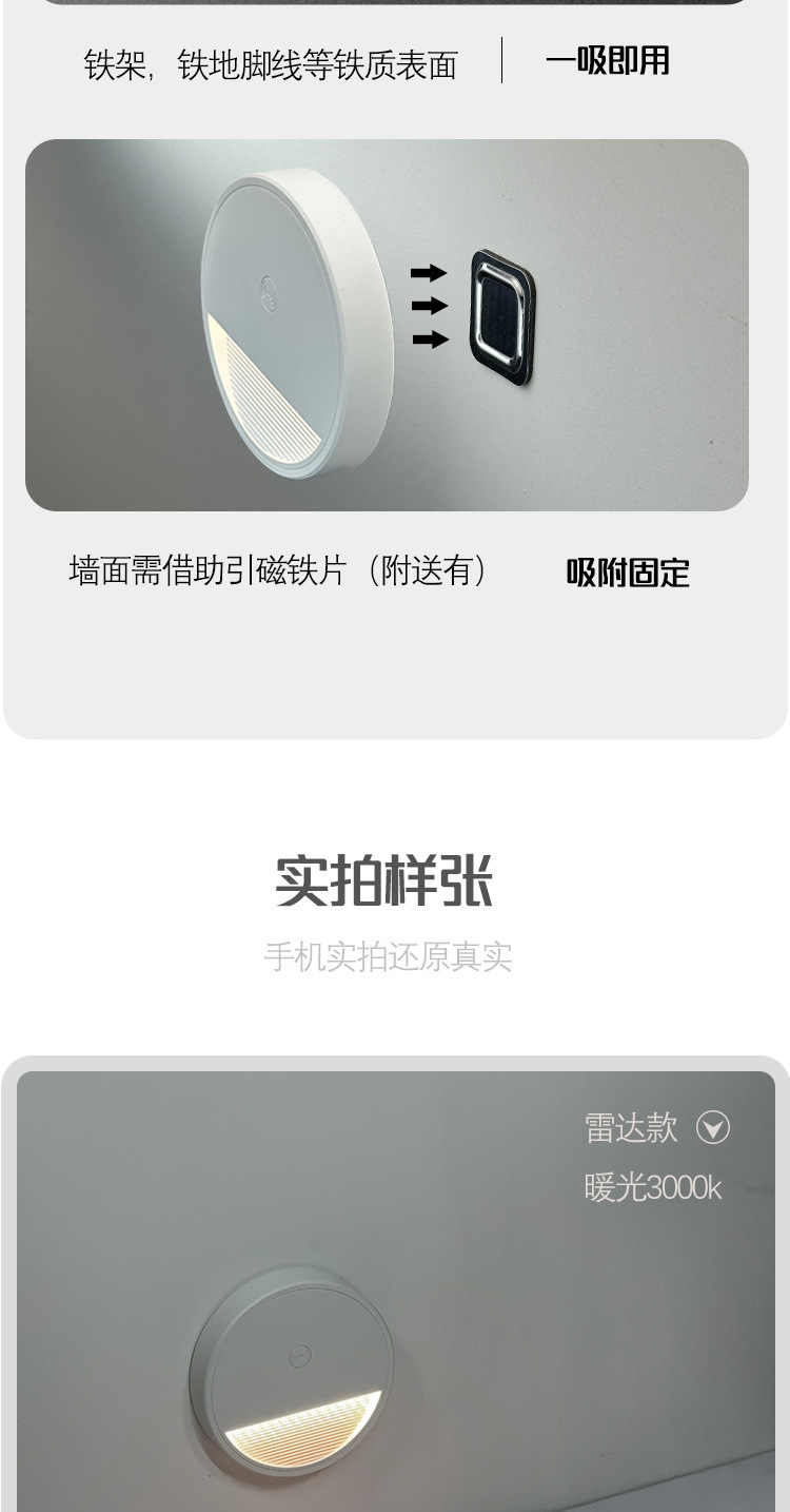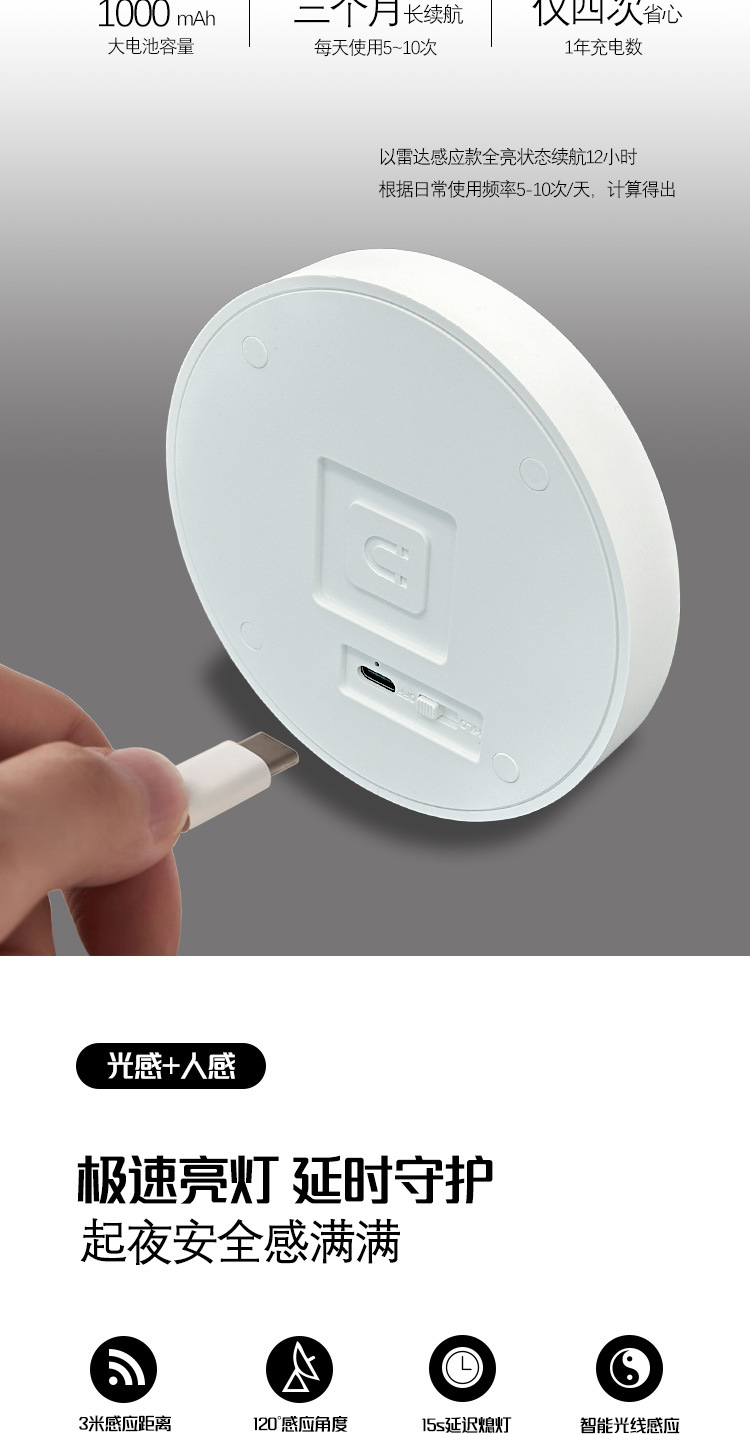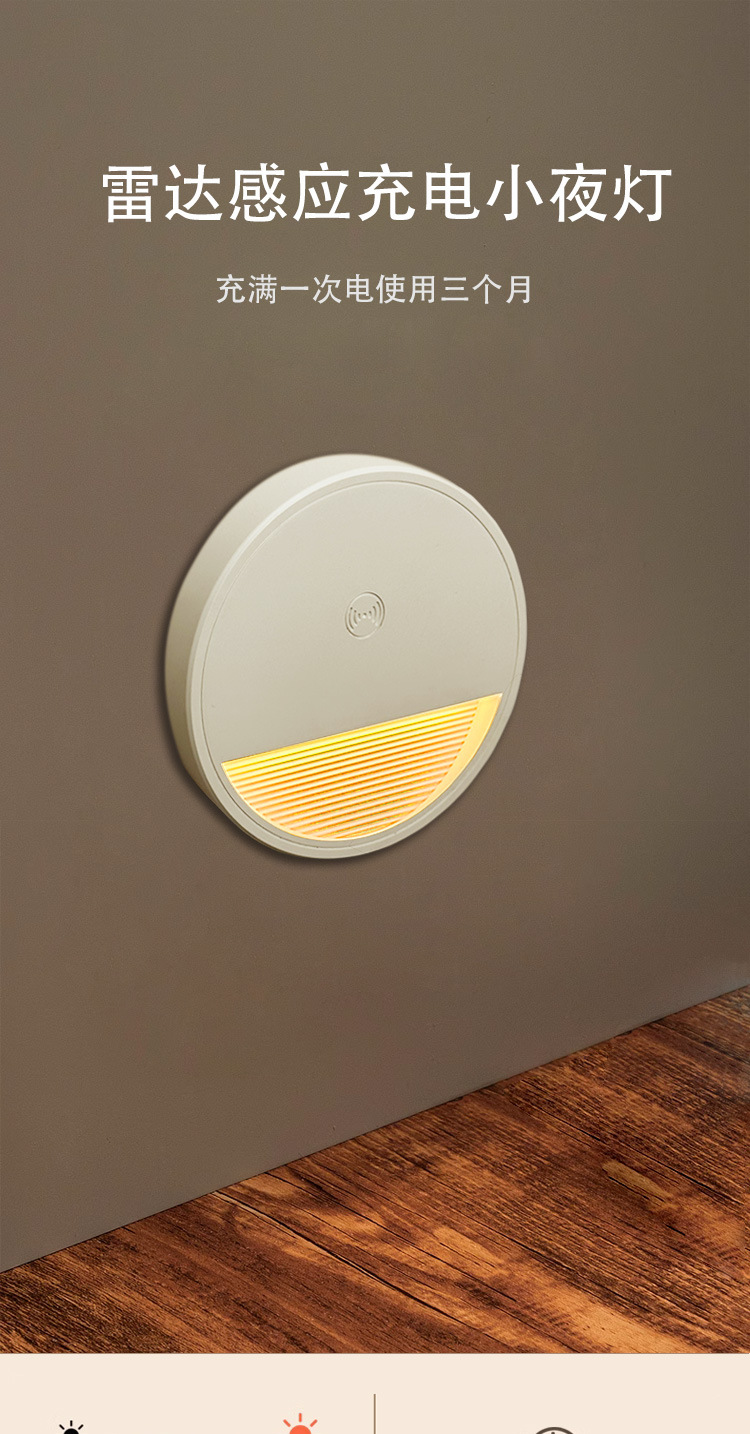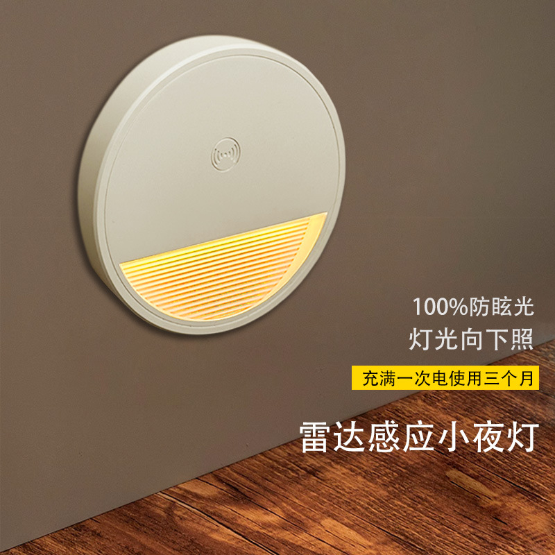라운드 스마트 유도 나이트 라이트 레이더 유도 램프 충전 벽 램프 LED 계단 배선-무료 마그네틱 발 램프