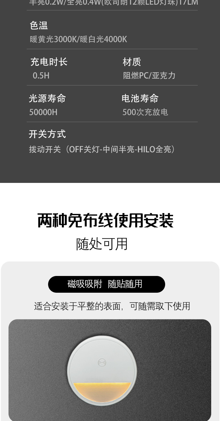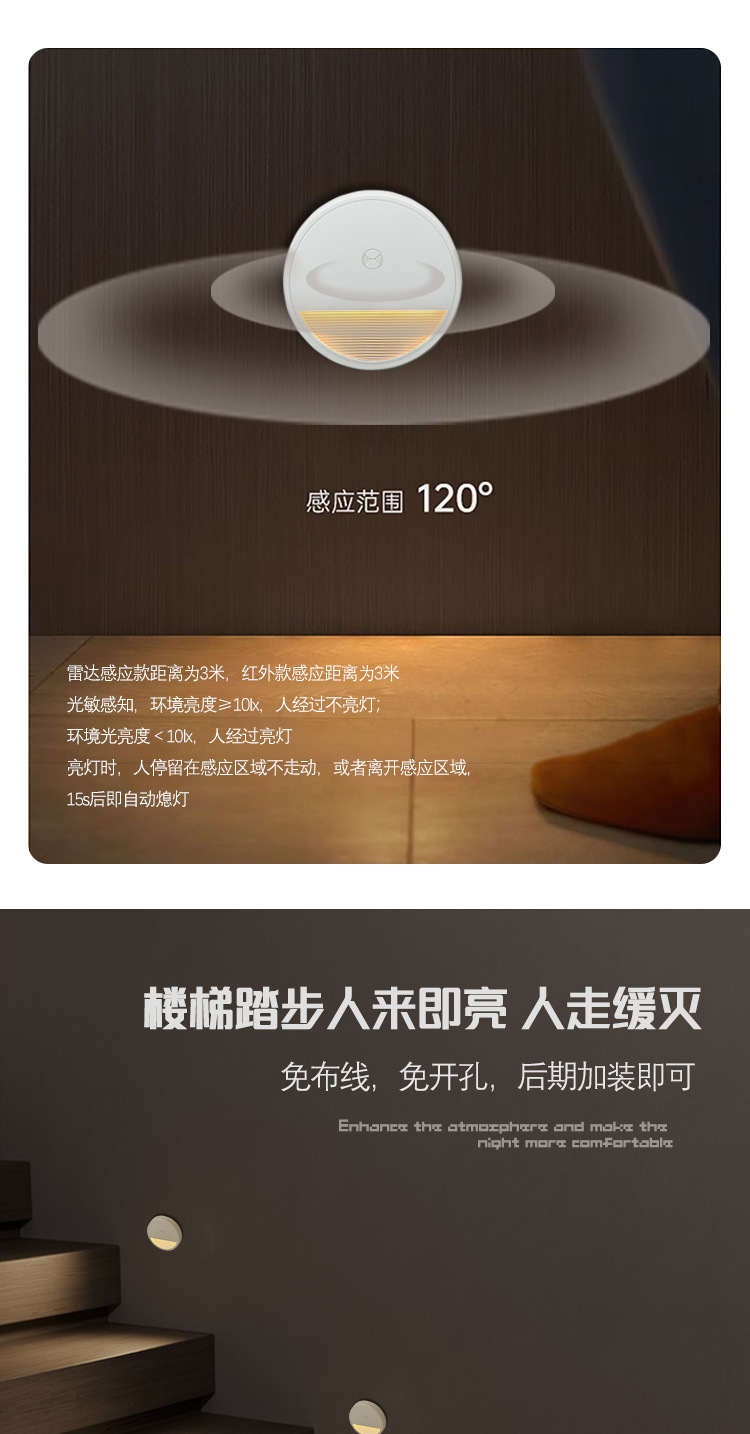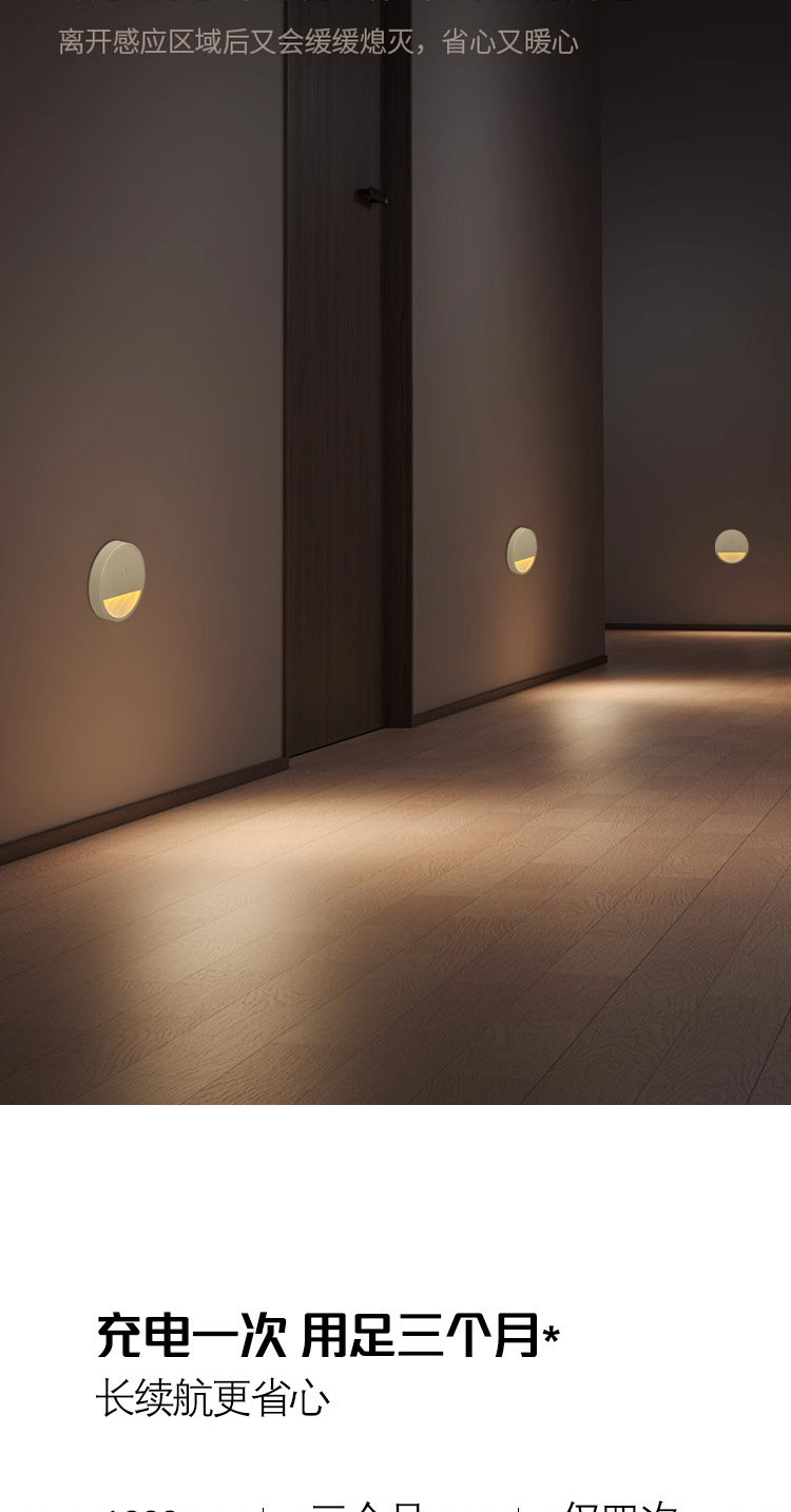 라운드 스마트 유도 나이트 라이트 레이더 유도 램프 충전 벽 램프 LED 계단 배선-무료 마그네틱 발 램프