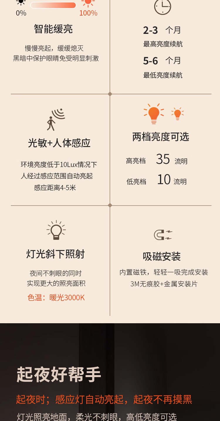 • 매트 화이트 [적외선 센서 모델] 따뜻한 노란색 빛 3000k