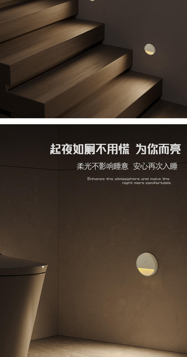 라운드 스마트 유도 나이트 라이트 레이더 유도 램프 충전 벽 램프 LED 계단 배선-무료 마그네틱 발 램프스토어 가기