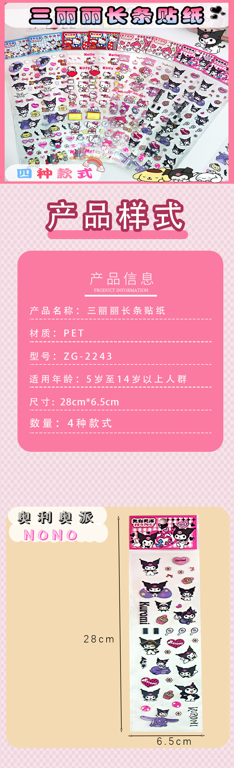 국경 3 릴리 긴 스티커 방수 애완 동물 소재 어린이 DIY 창조적 인 손 계정 소재 스티커