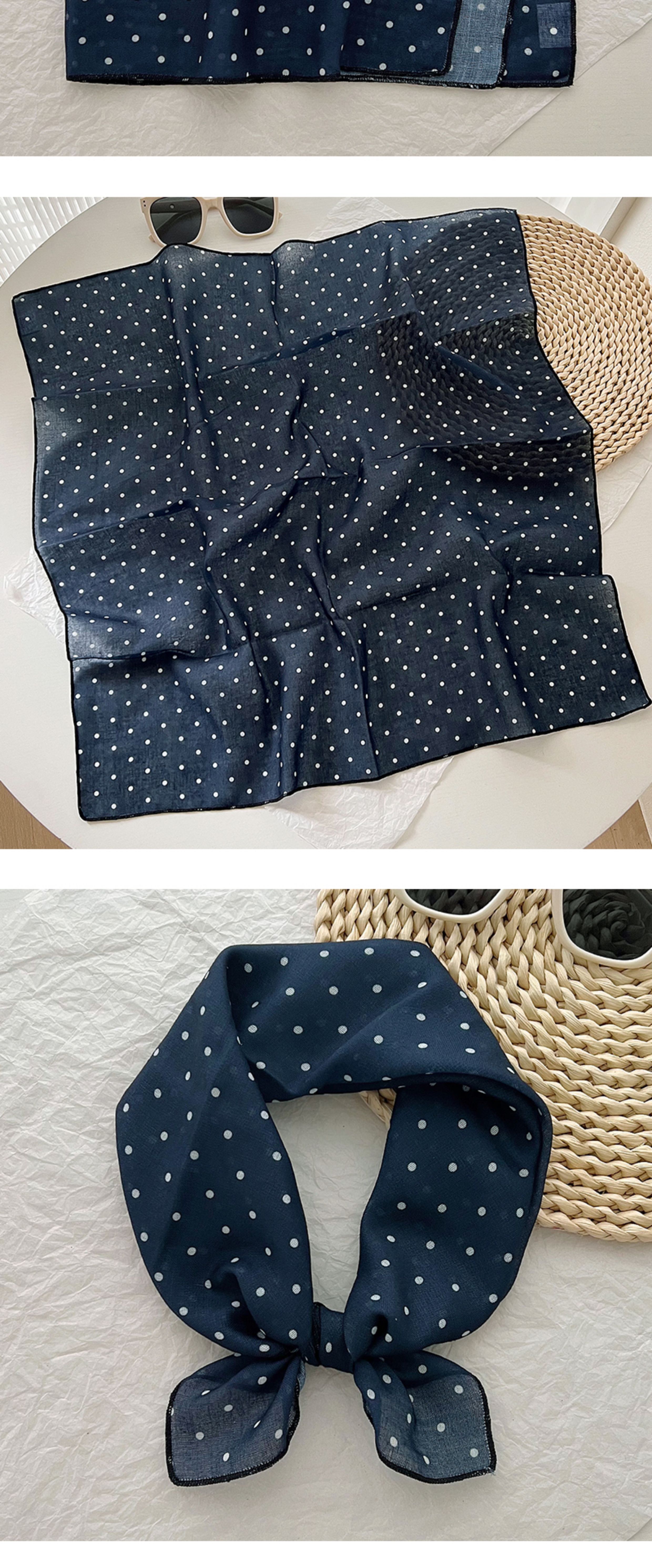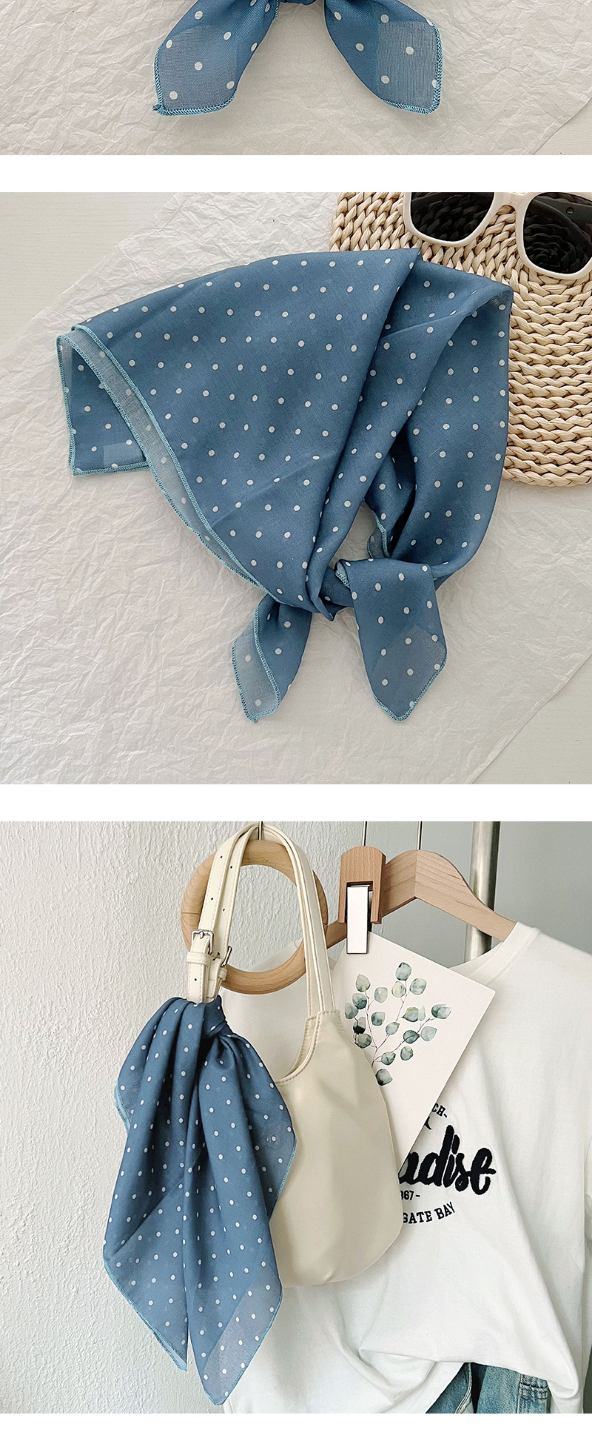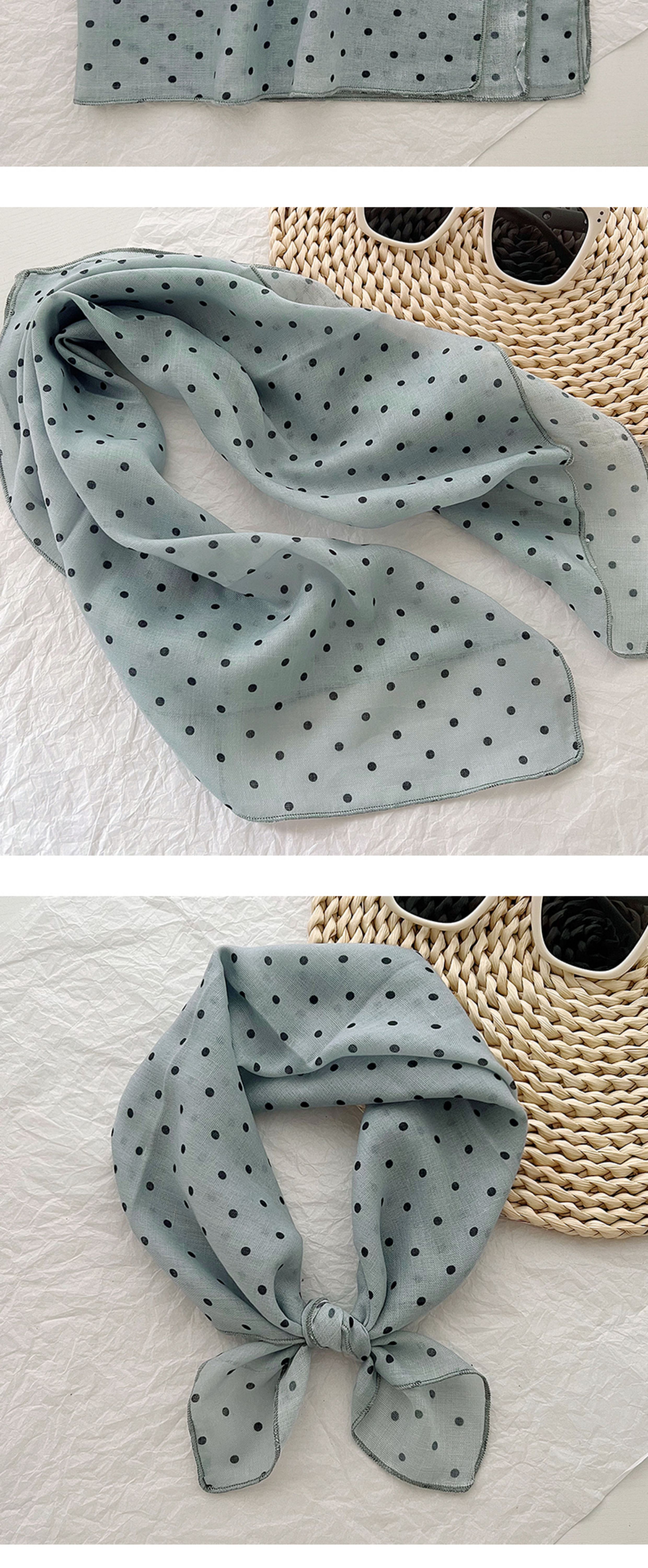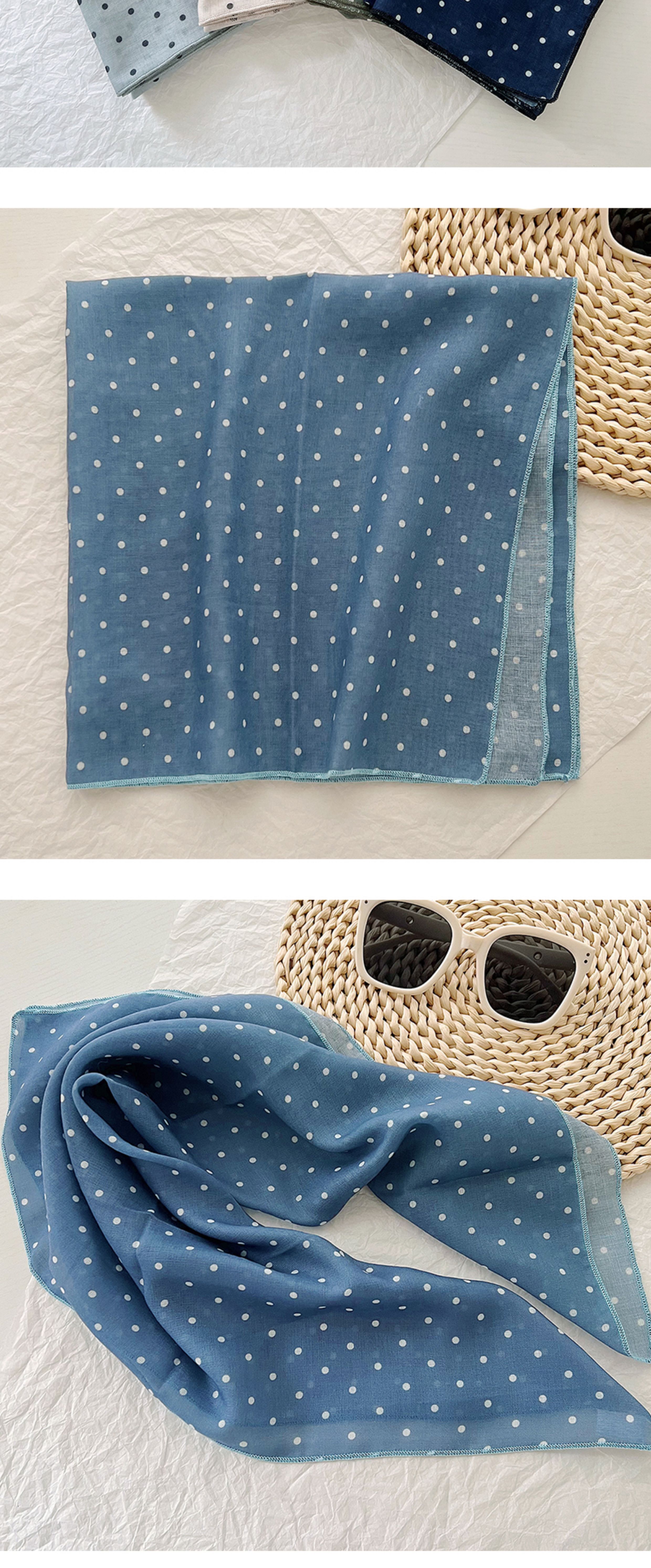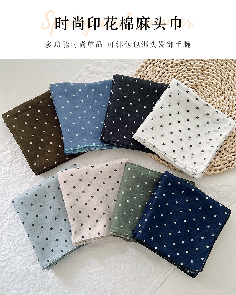 2024 한국식 새 도착 작은 웨이브 도트 코튼 및 리넨 스퀘어 스카프 여성 유행 올 매치 실크 스카프 다기능 타이 백 타이 헤어 밴드