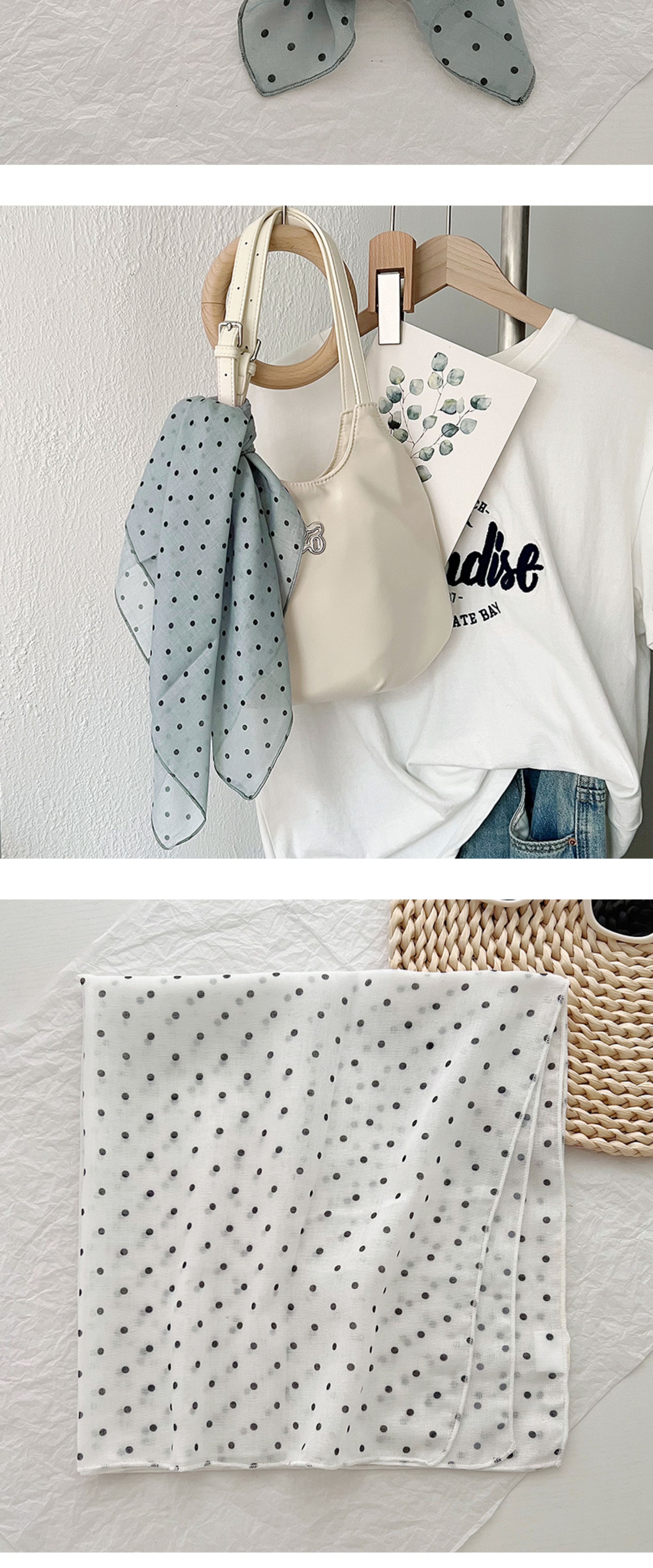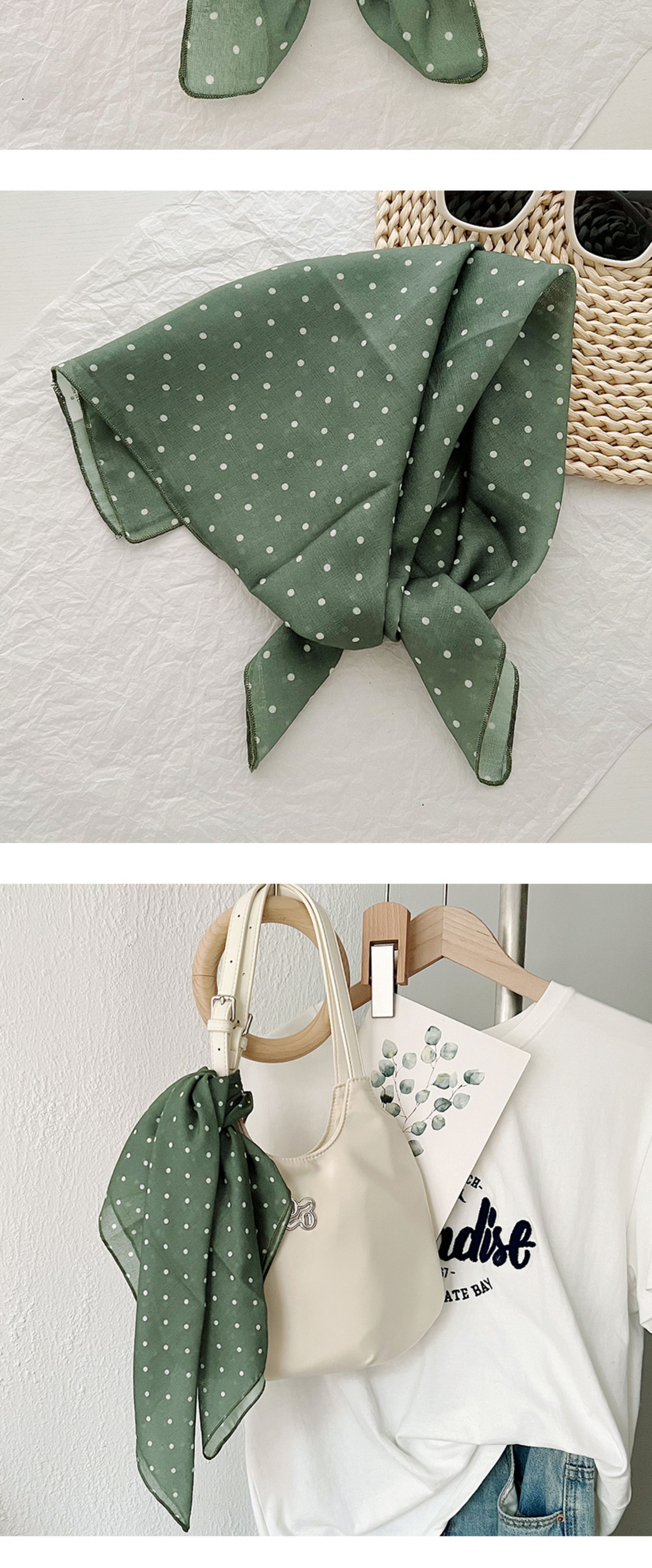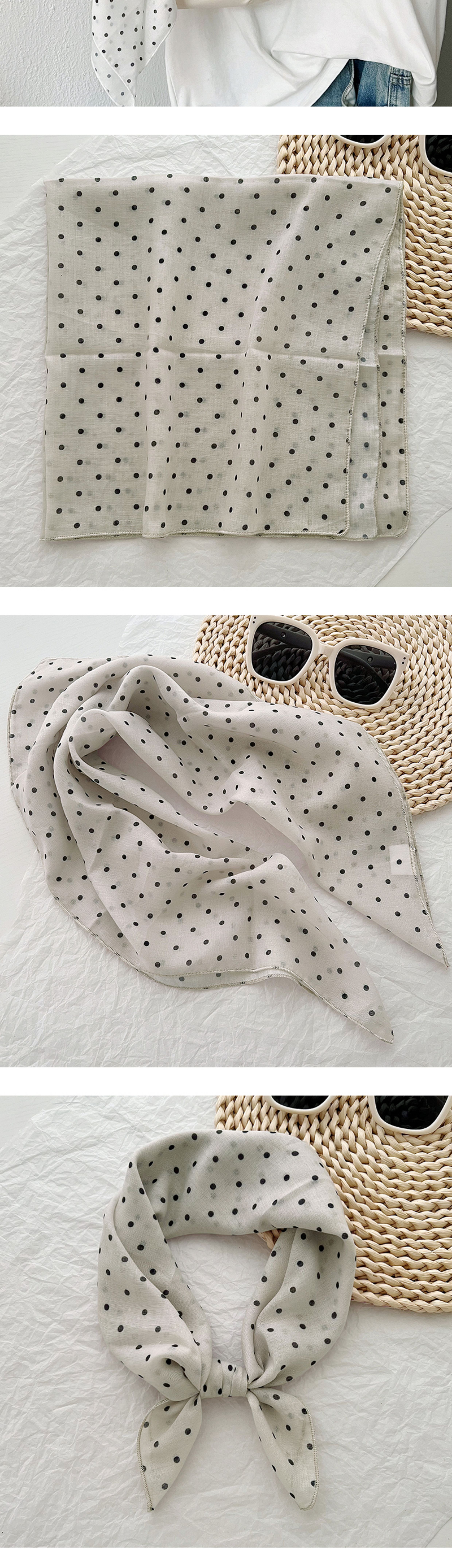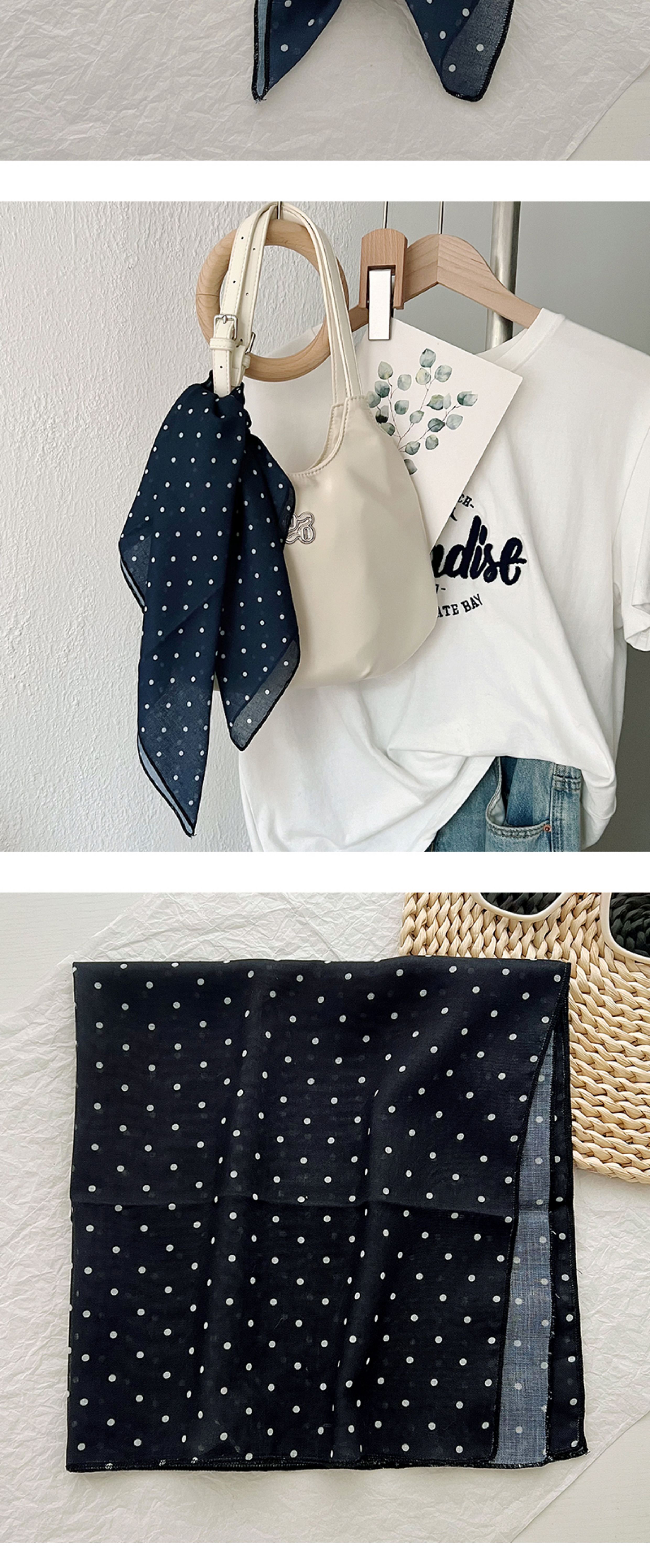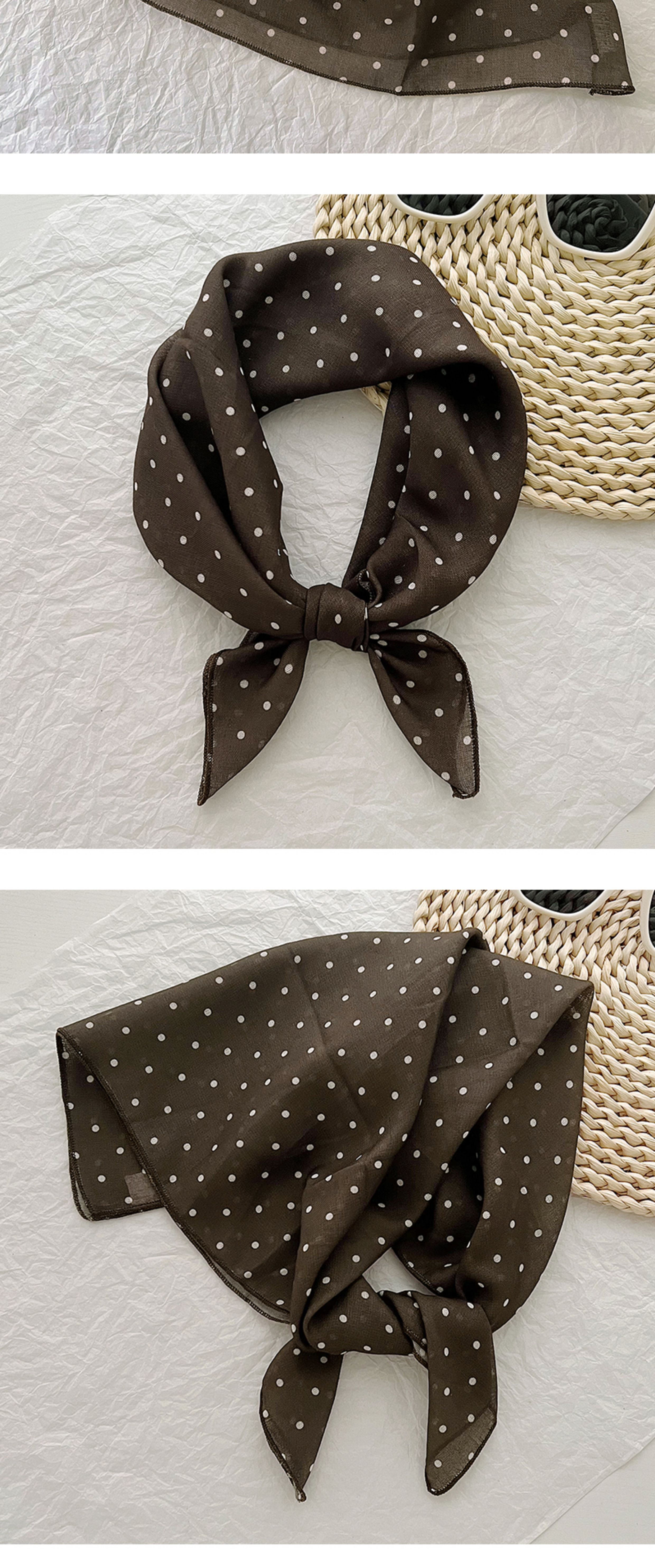 2024 한국식 새 도착 작은 웨이브 도트 코튼 및 리넨 스퀘어 스카프 여성 유행 올 매치 실크 스카프 다기능 타이 백 타이 헤어 밴드