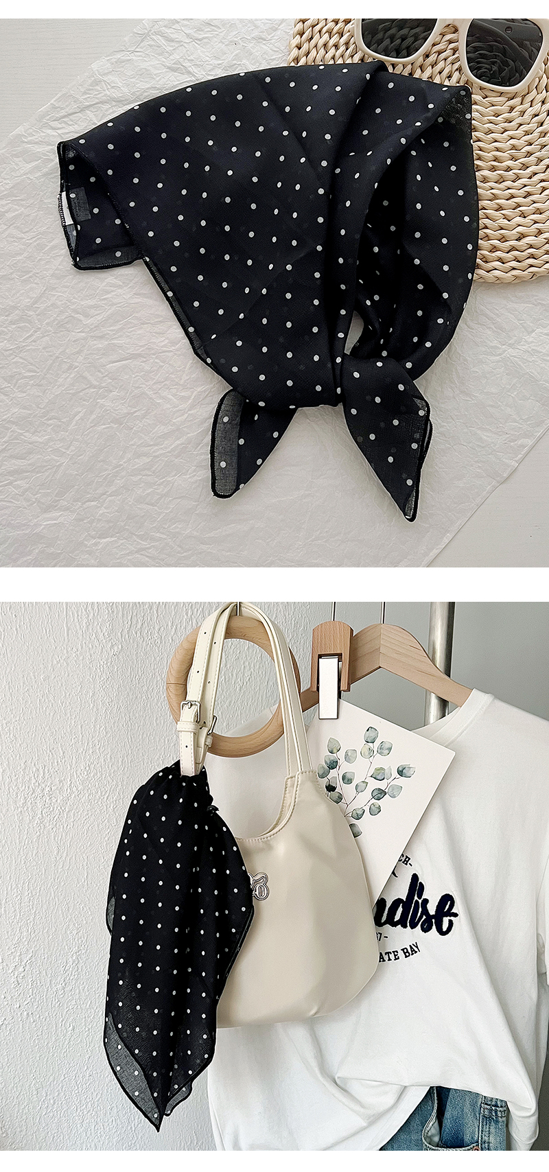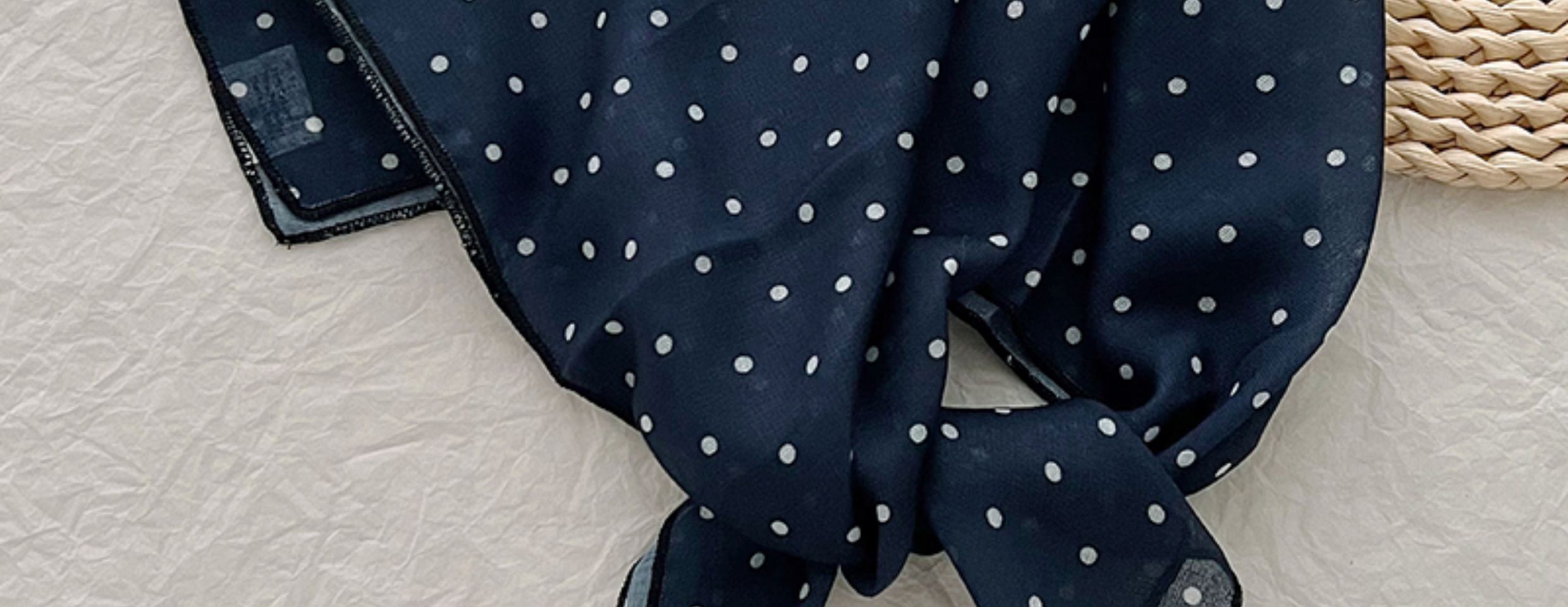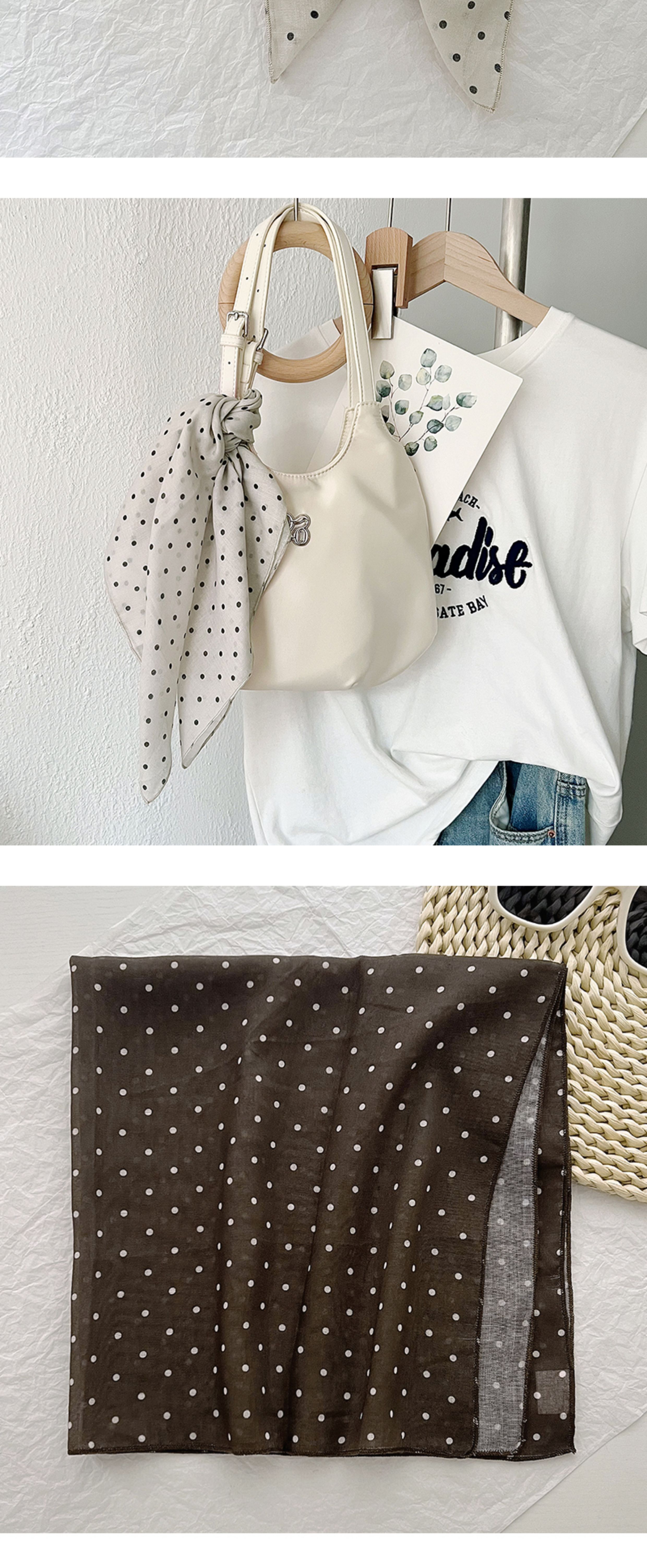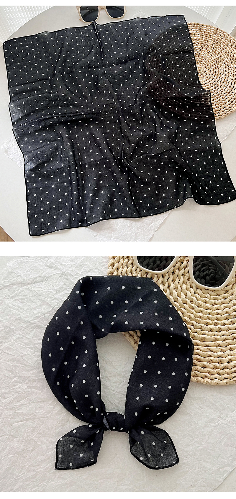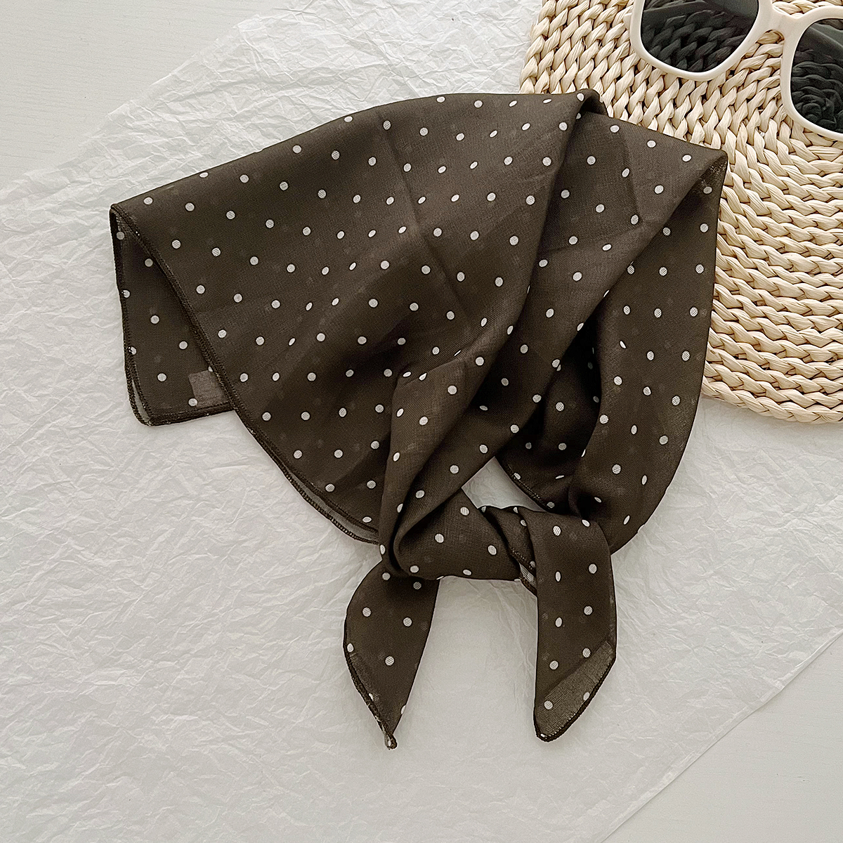 2024 한국식 새 도착 작은 웨이브 도트 코튼 및 리넨 스퀘어 스카프 여성 유행 올 매치 실크 스카프 다기능 타이 백 타이 헤어 밴드