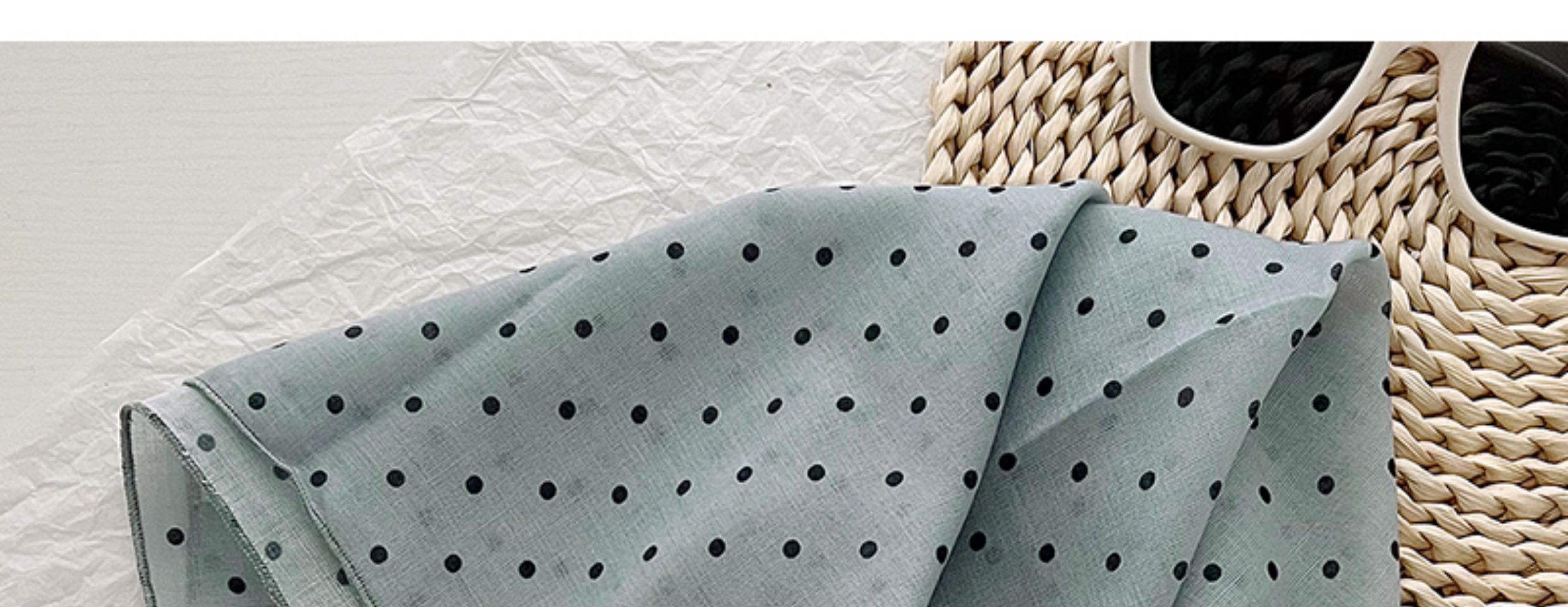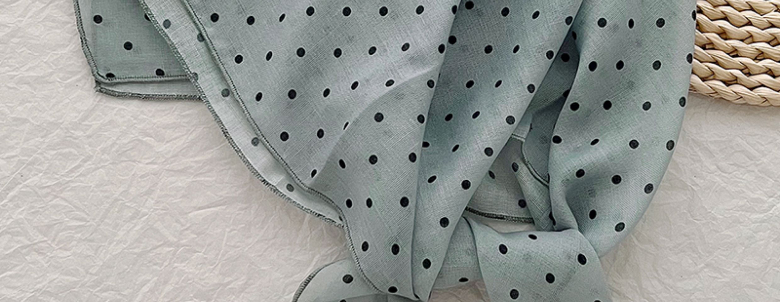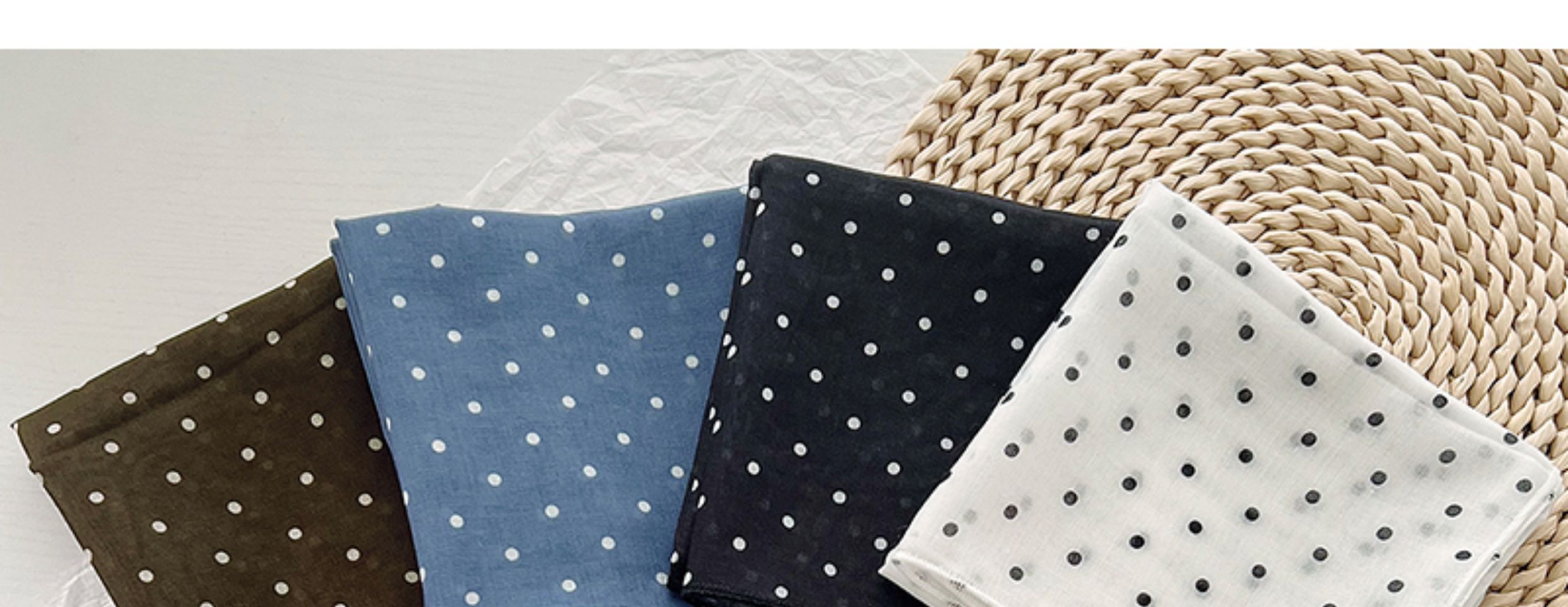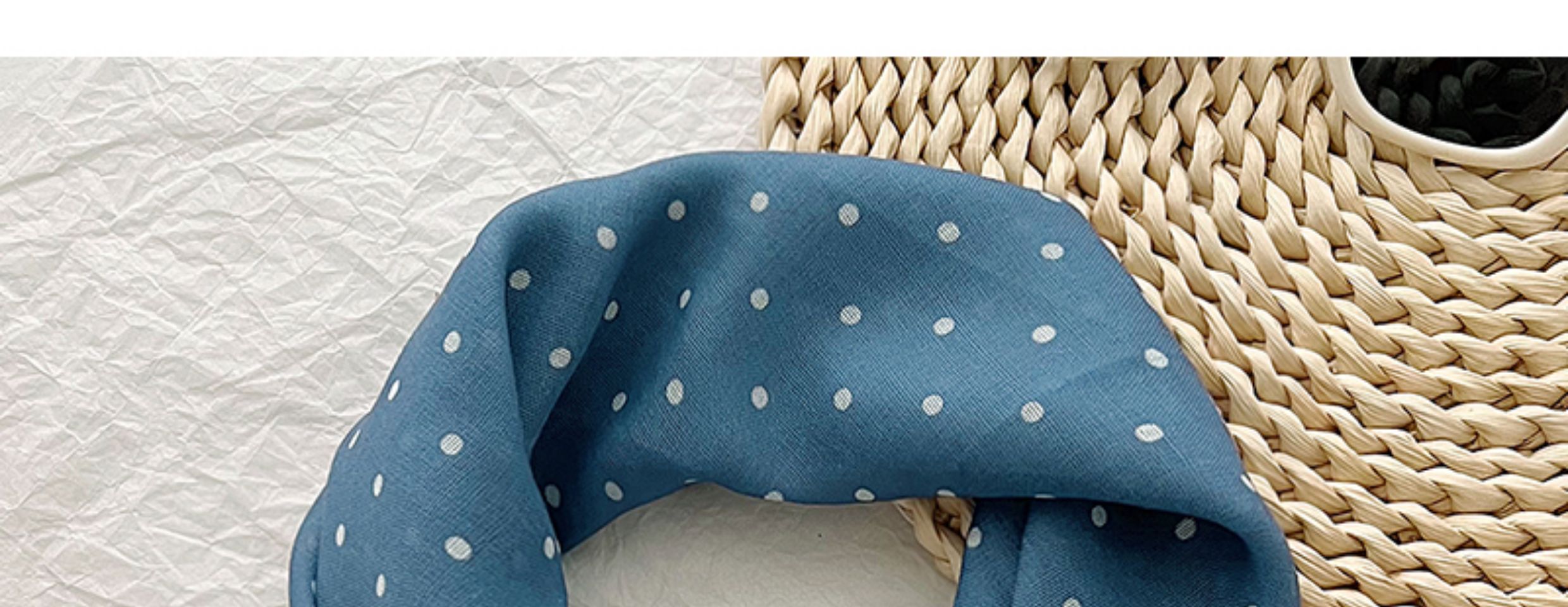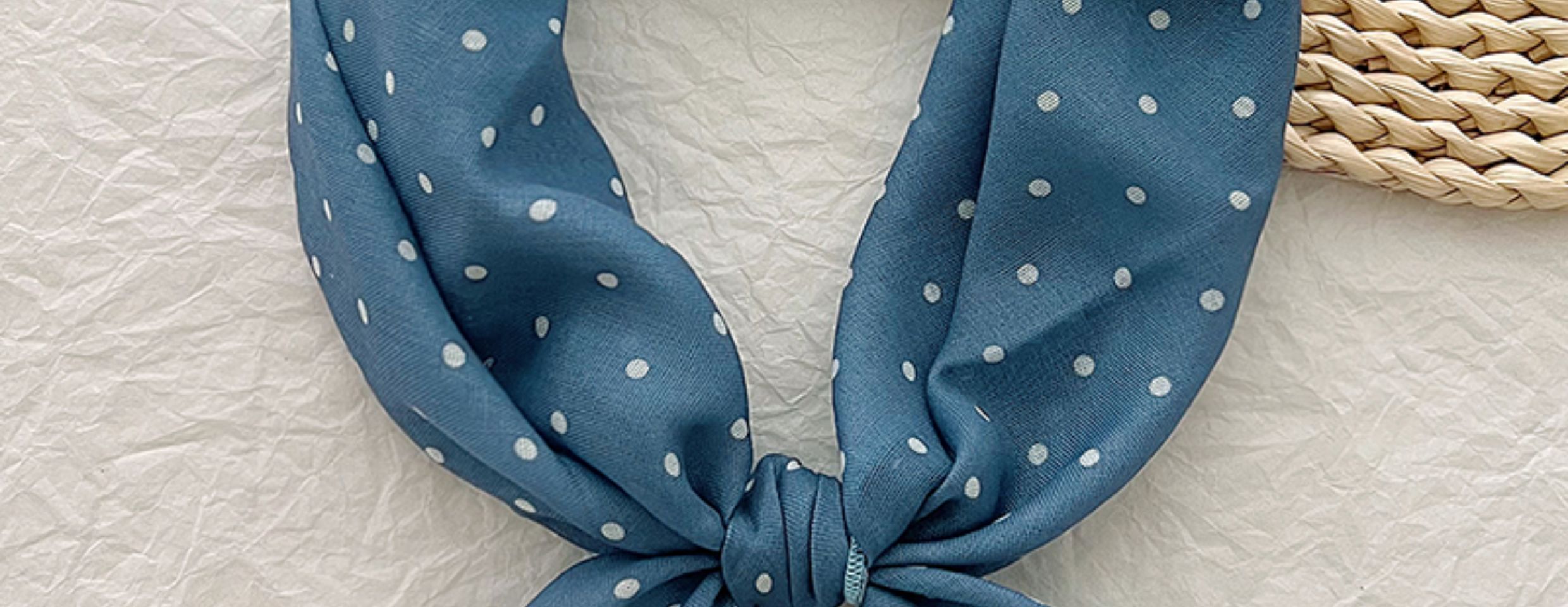 2024 한국식 새 도착 작은 웨이브 도트 코튼 및 리넨 스퀘어 스카프 여성 유행 올 매치 실크 스카프 다기능 타이 백 타이 헤어 밴드