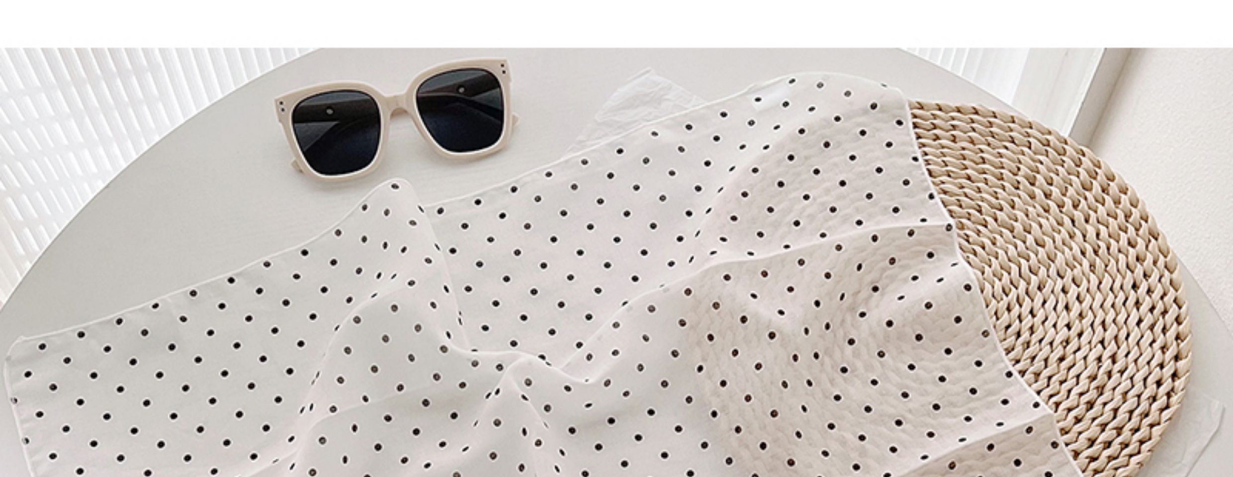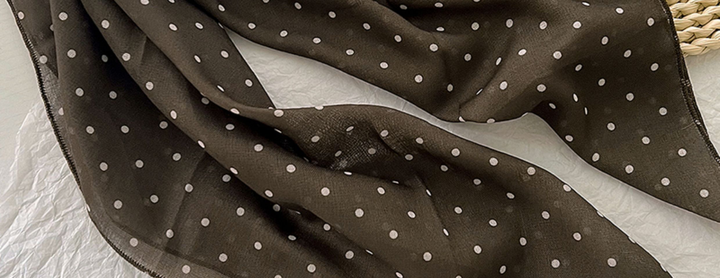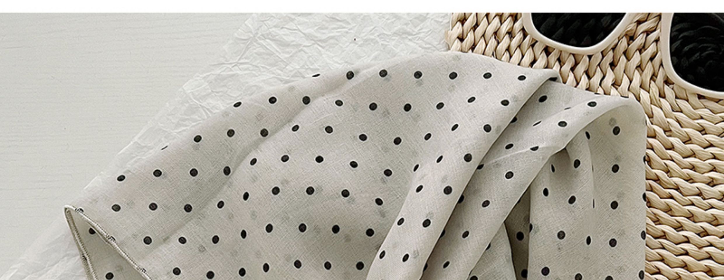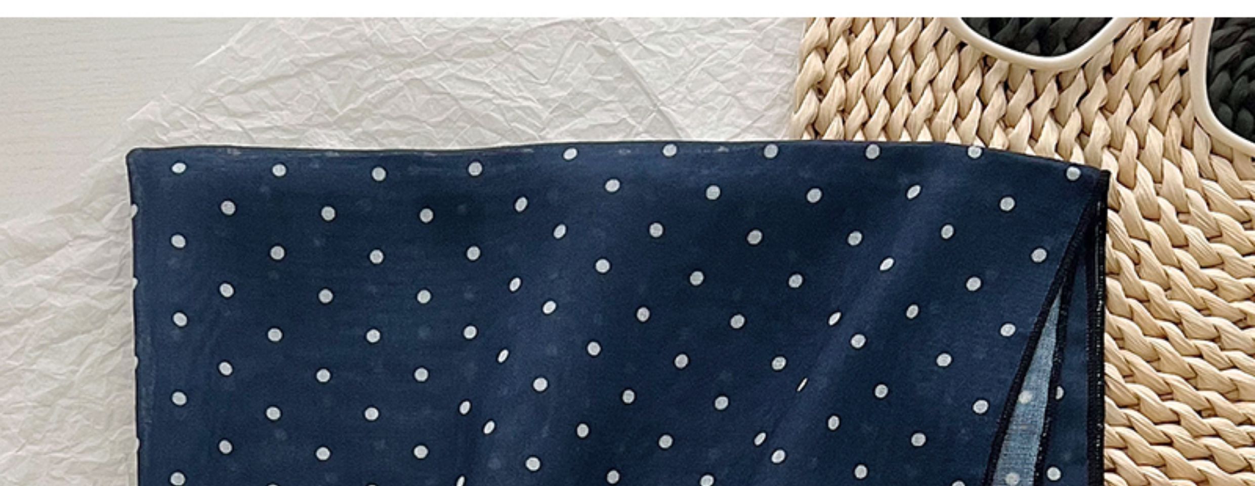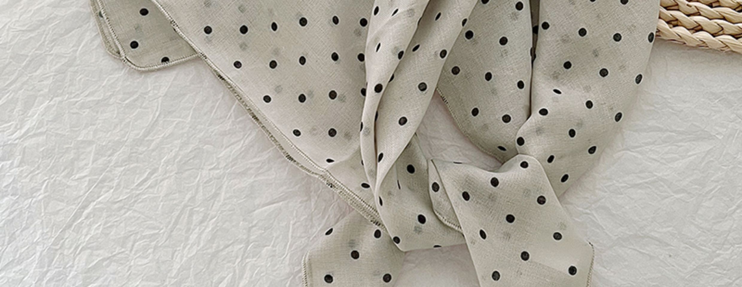 2024 한국식 새 도착 작은 웨이브 도트 코튼 및 리넨 스퀘어 스카프 여성 유행 올 매치 실크 스카프 다기능 타이 백 타이 헤어 밴드