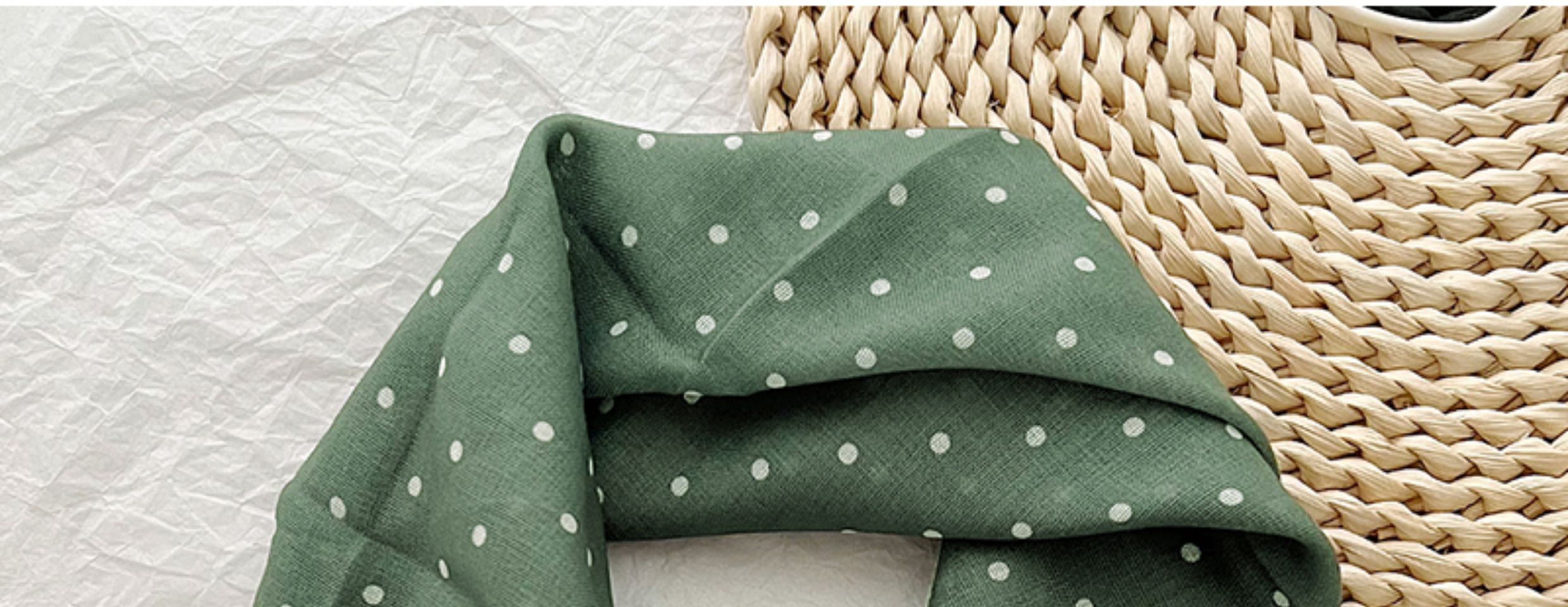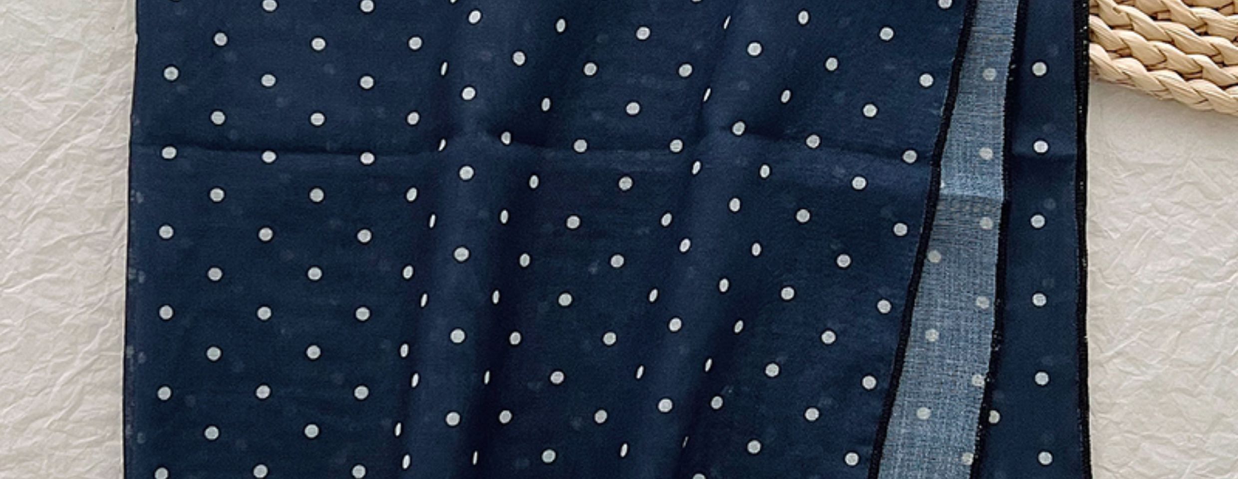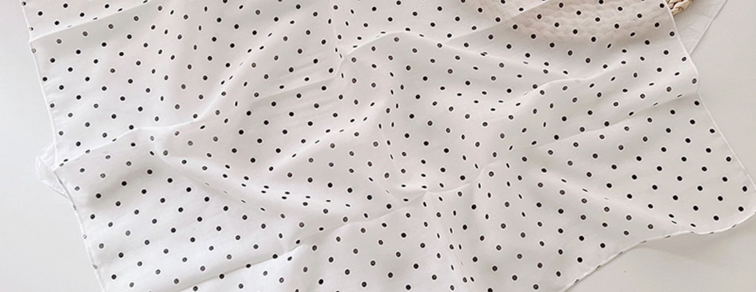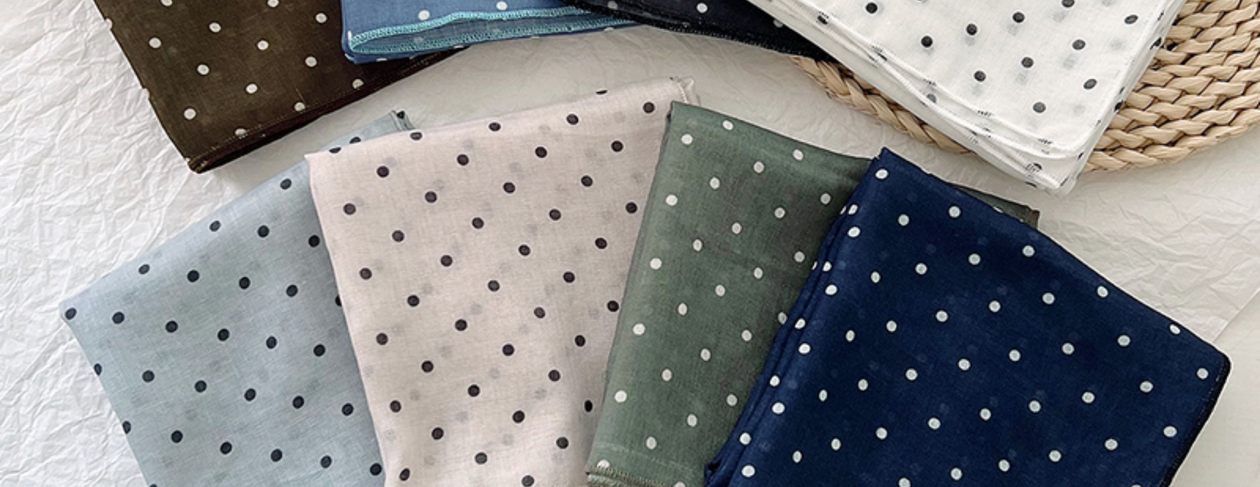 2024 한국식 새 도착 작은 웨이브 도트 코튼 및 리넨 스퀘어 스카프 여성 유행 올 매치 실크 스카프 다기능 타이 백 타이 헤어 밴드스토어 가기