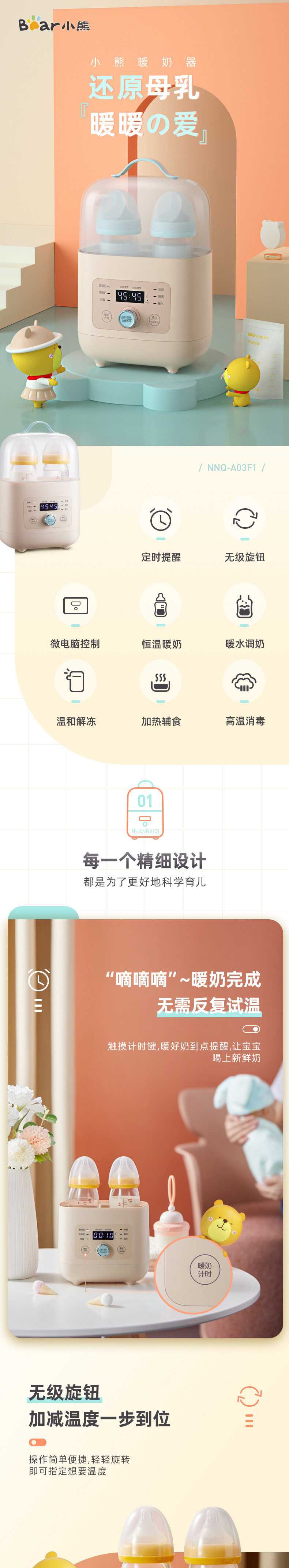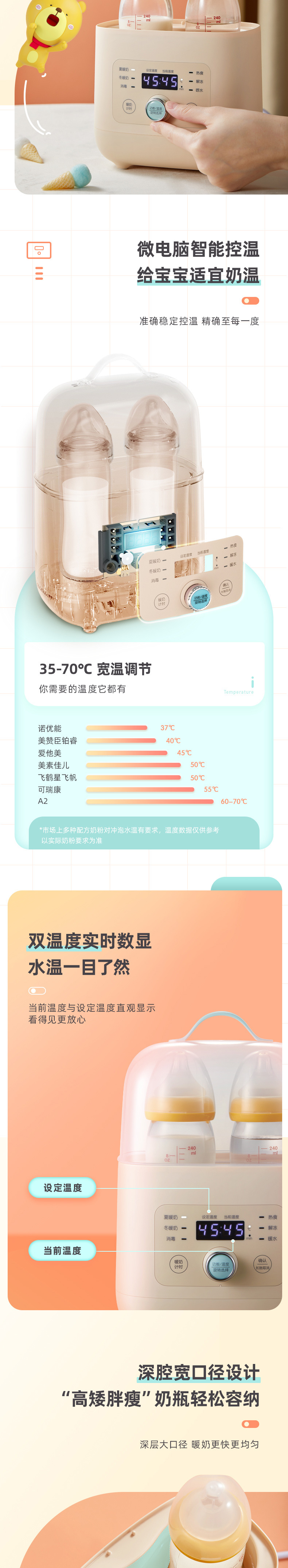 곰 우유 따뜻한 병 2 대 1 우유 따뜻한 모유 해동 타이밍 가열 보완 식품 NNQ-A03F1