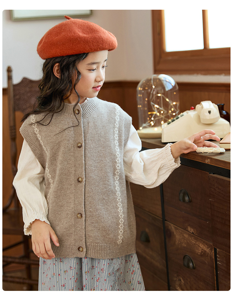 봄 가을 신상 한국 스타일 여아 울 니트 조끼, 세련된 아우터 가디건, 아동복, 아동 겨울 스웨터 조끼스토어 가기
