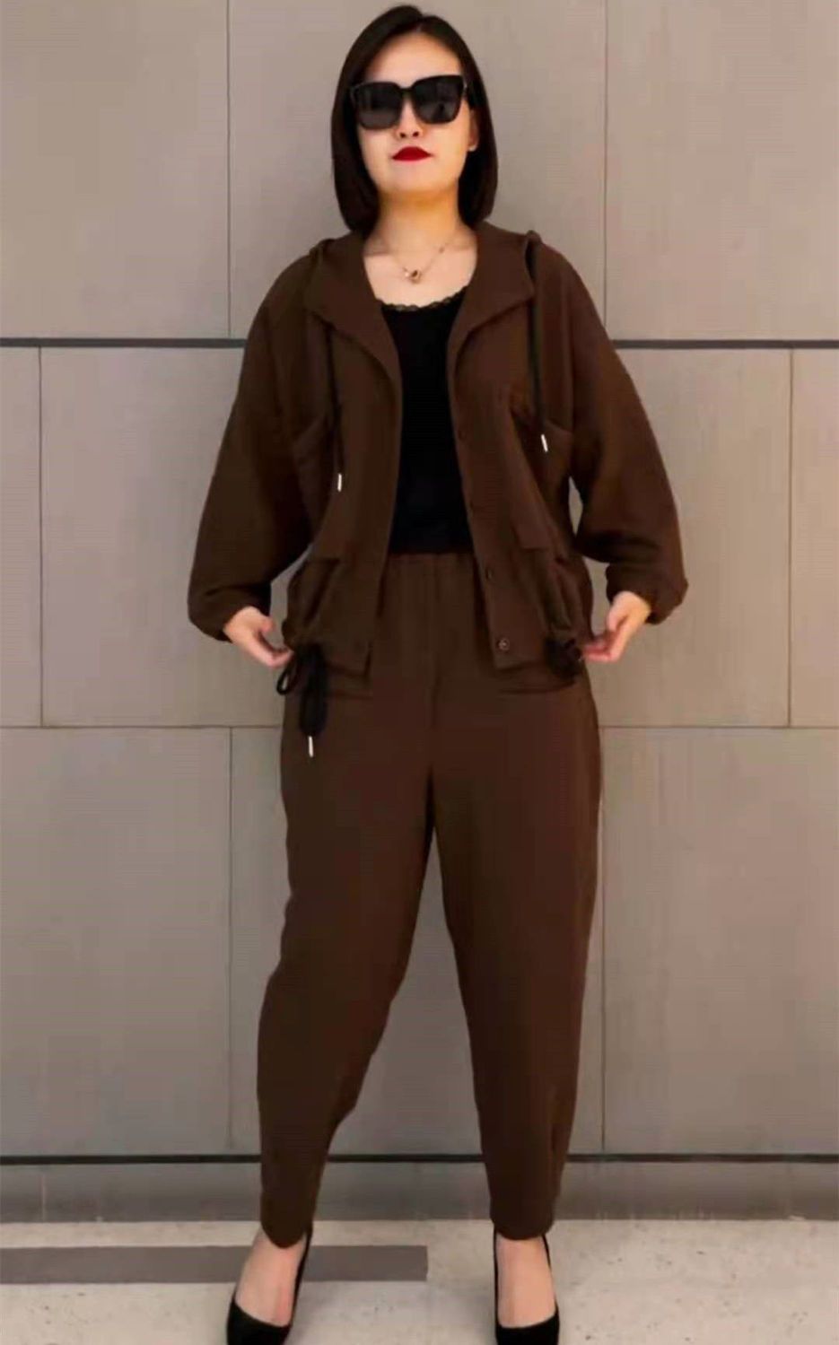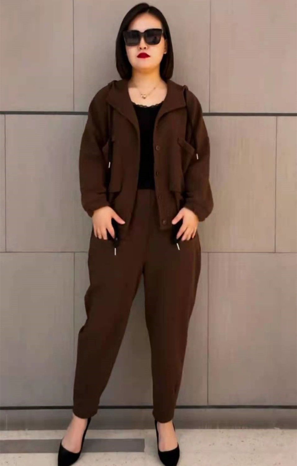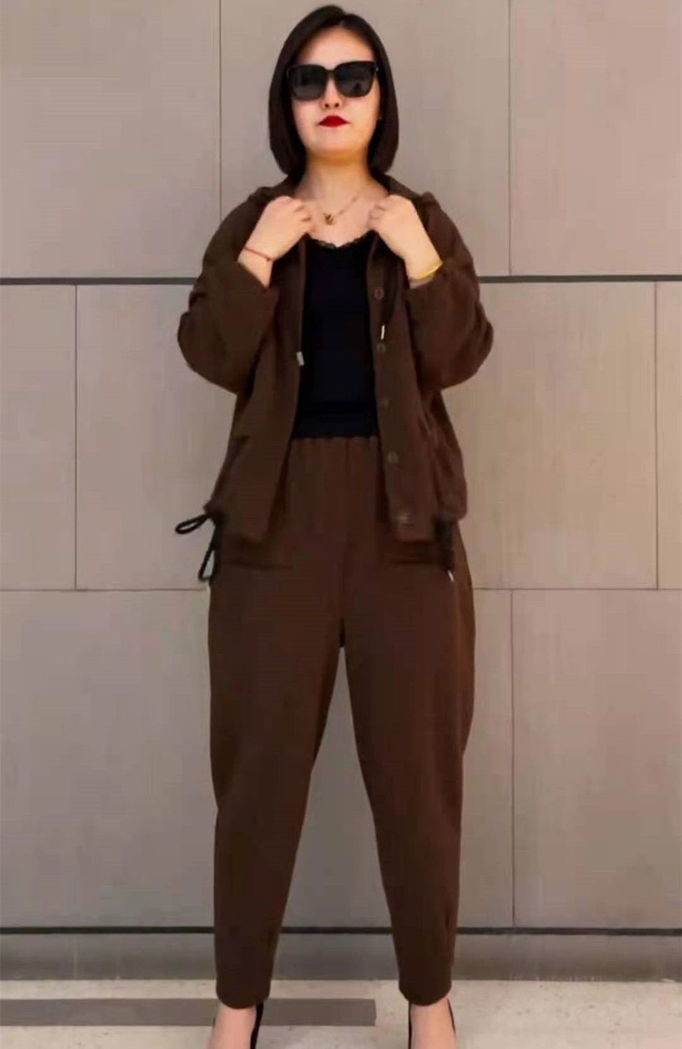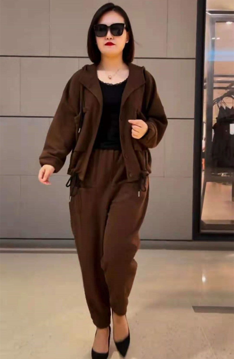 국경 간 플러스 사이즈 기모 두꺼운 인터넷 유명인 어머니 패션 Harlan 세트 여성의 가을과 겨울 느슨한 캐주얼 투피스 세트스토어 가기