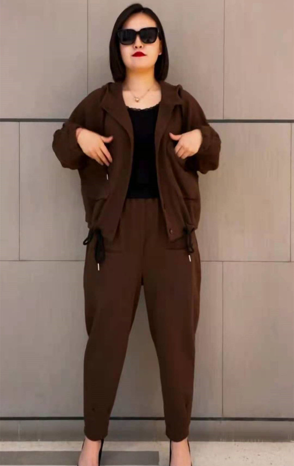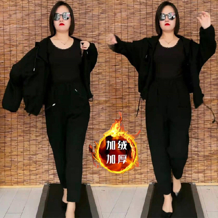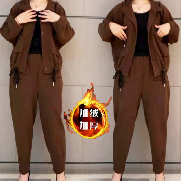 국경 간 플러스 사이즈 기모 두꺼운 인터넷 유명인 어머니 패션 Harlan 세트 여성의 가을과 겨울 느슨한 캐주얼 투피스 세트