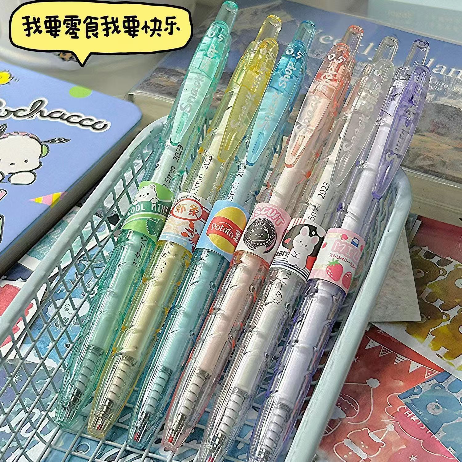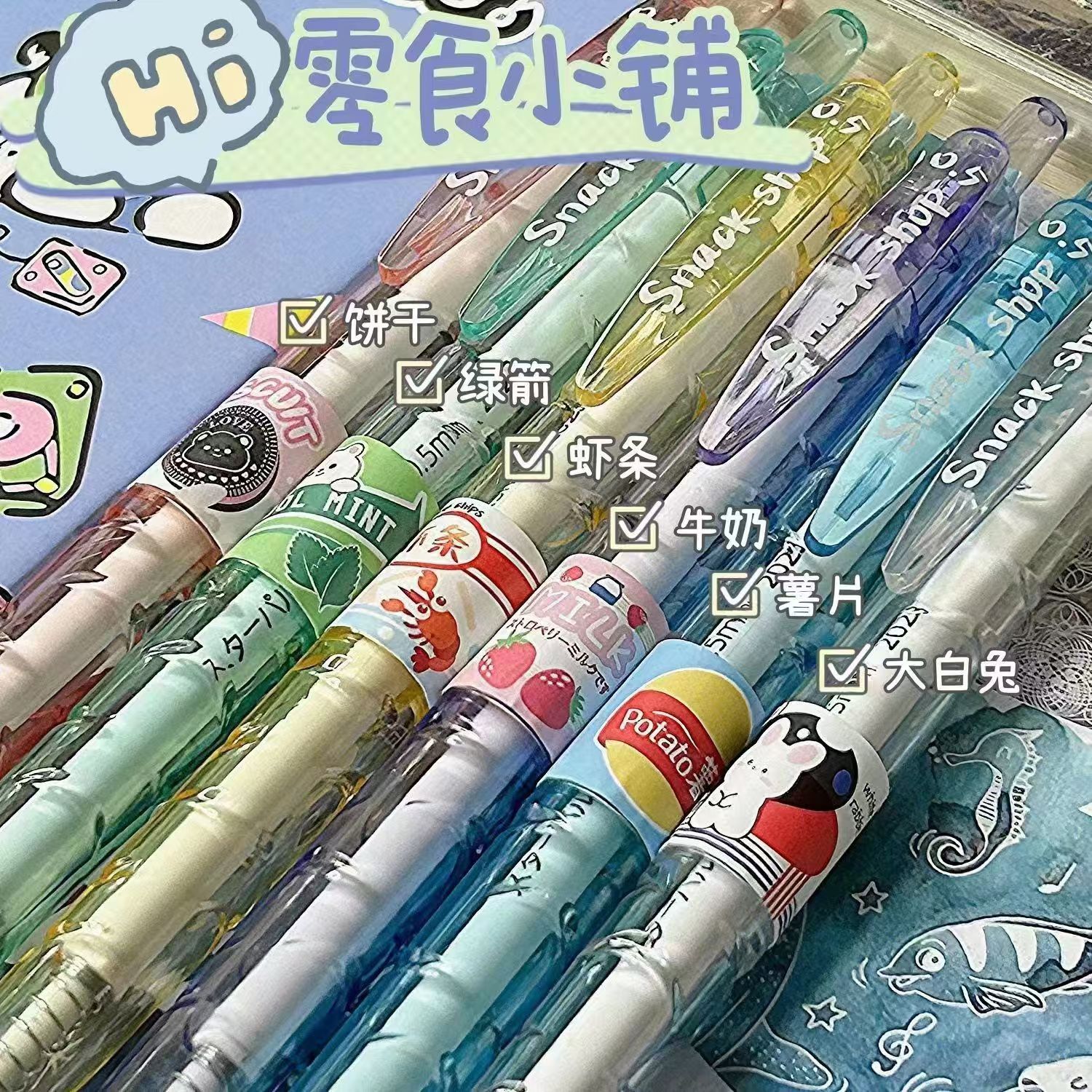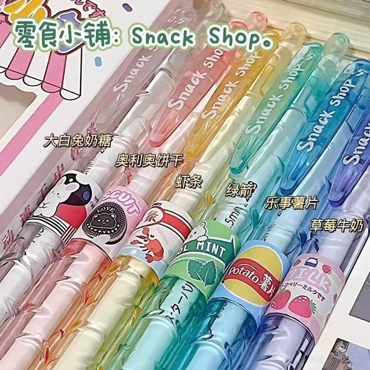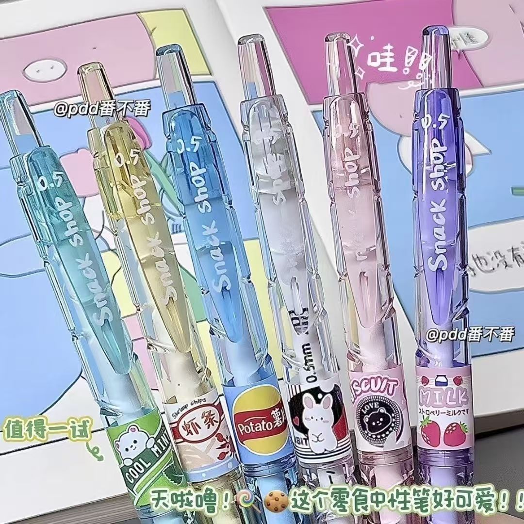 스낵 숍 냄비 병에 푸시 펜 음료 제한 브러쉬 펜 작은 신선한 빠른 건조 젤 펜 도매스토어 가기