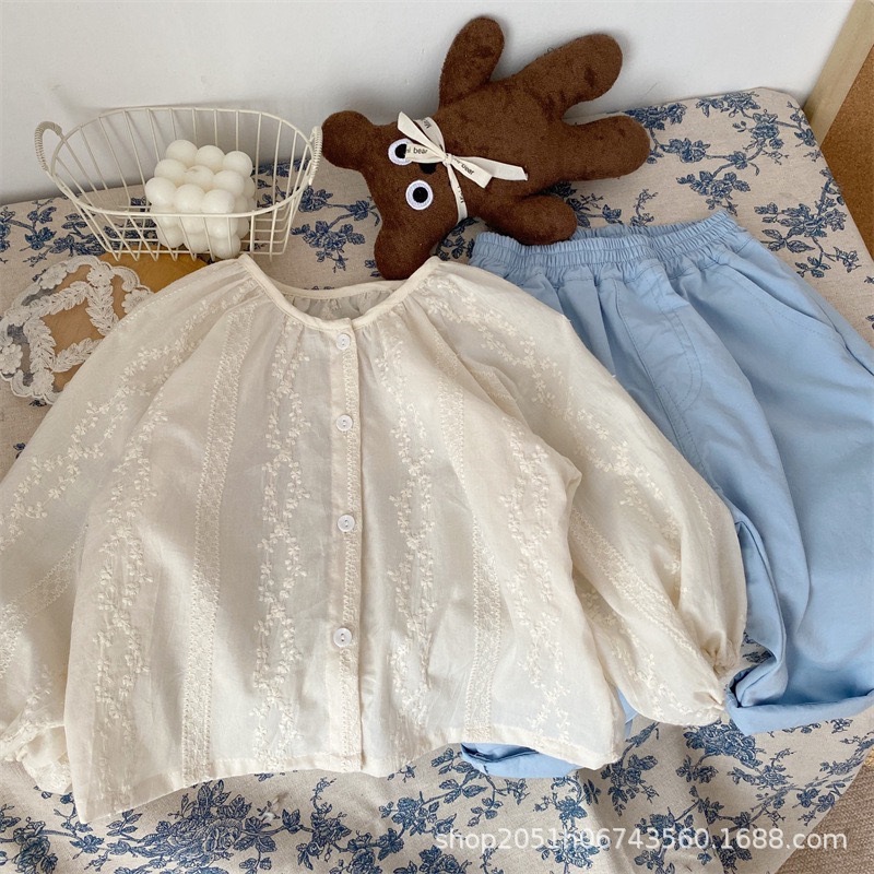 소녀의 봄과 가을 레이스베이스 셔츠 아기 한국 인형 칼라 공주 스타일 셔츠 어린이 귀여운 인형 셔츠스토어 가기
