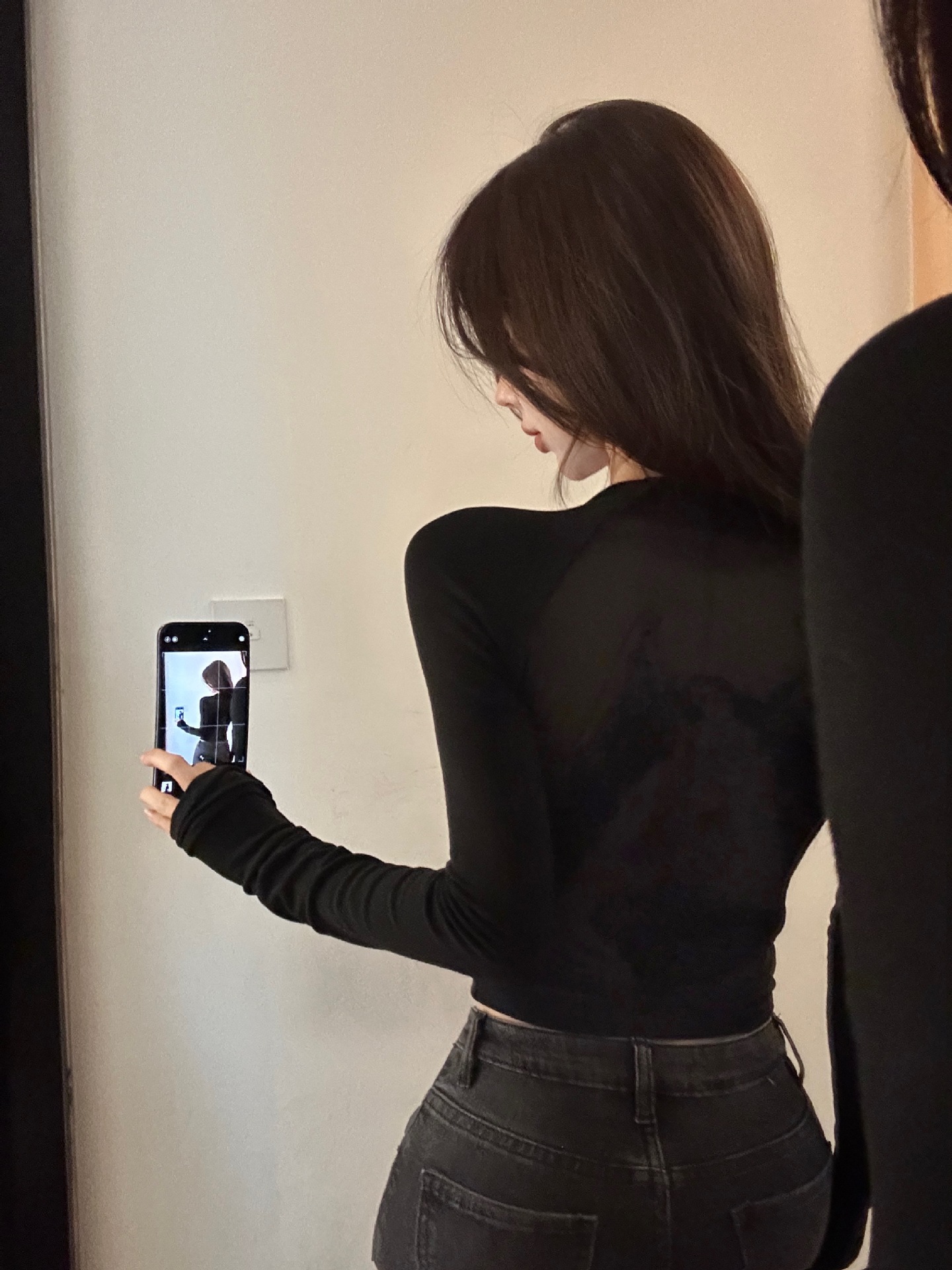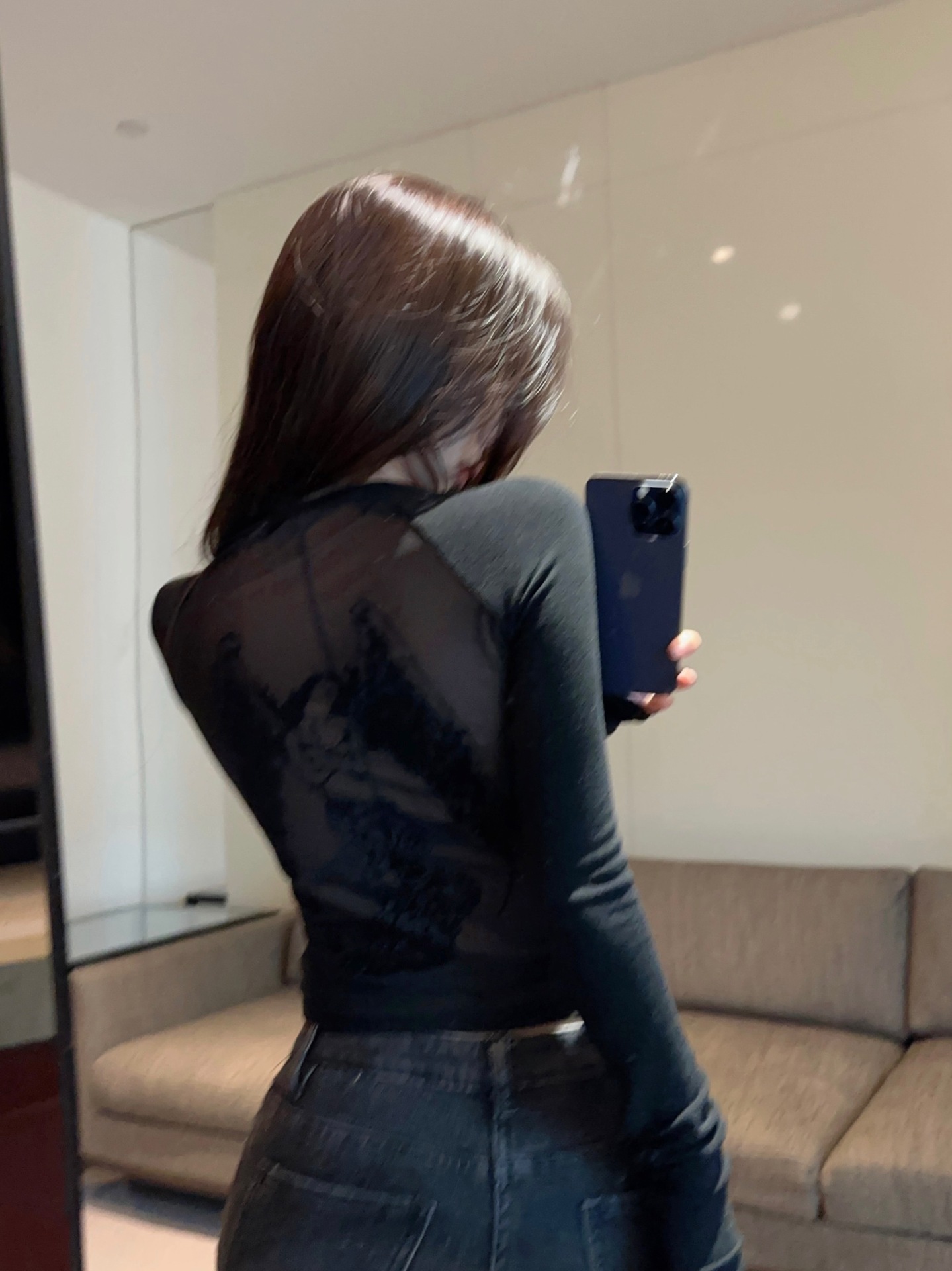 퓨어 스파이스 걸스 섹시 백리스 탑 여성의 가을과 겨울 메쉬 관점 레이스베이스 셔츠 독특한 세련된 작은 셔츠스토어 가기