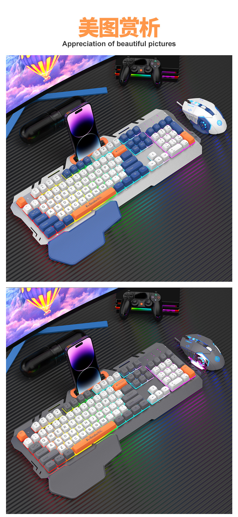 • Viper KM160 게이밍 키보드 + 마우스 세트 흰색과 파란색