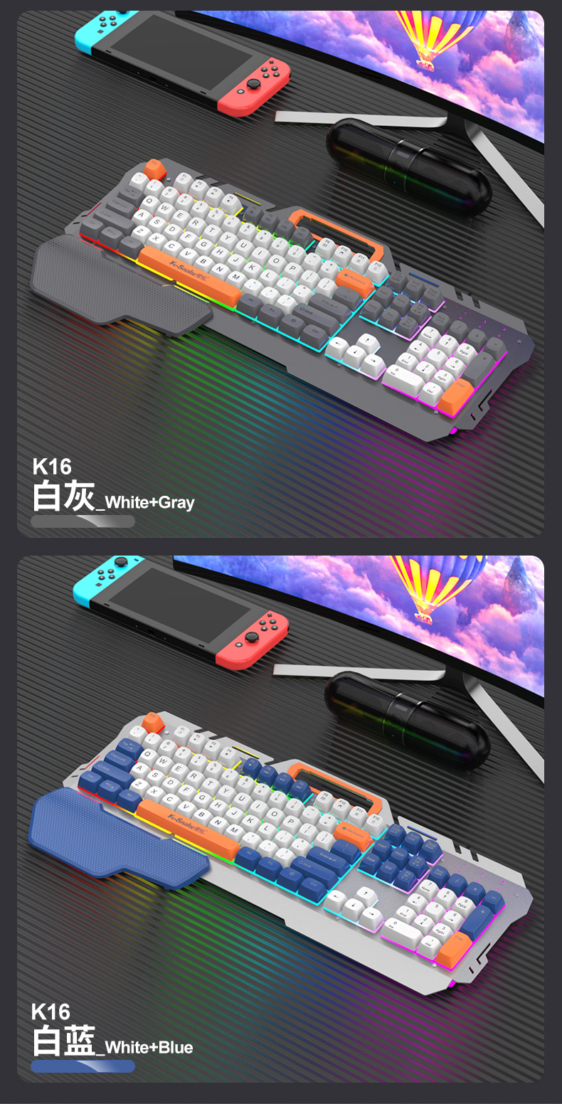 • Viper K16 게이밍 싱글 키보드 흰색 및 파란색