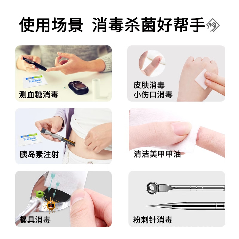 의료용 알코올 면 패드, 휴대폰 화면 닦기용 75도 소독 면 패드, 매니큐어 및 여드름 바늘, 혈당 측정용, 멸균 휴대용 패키지