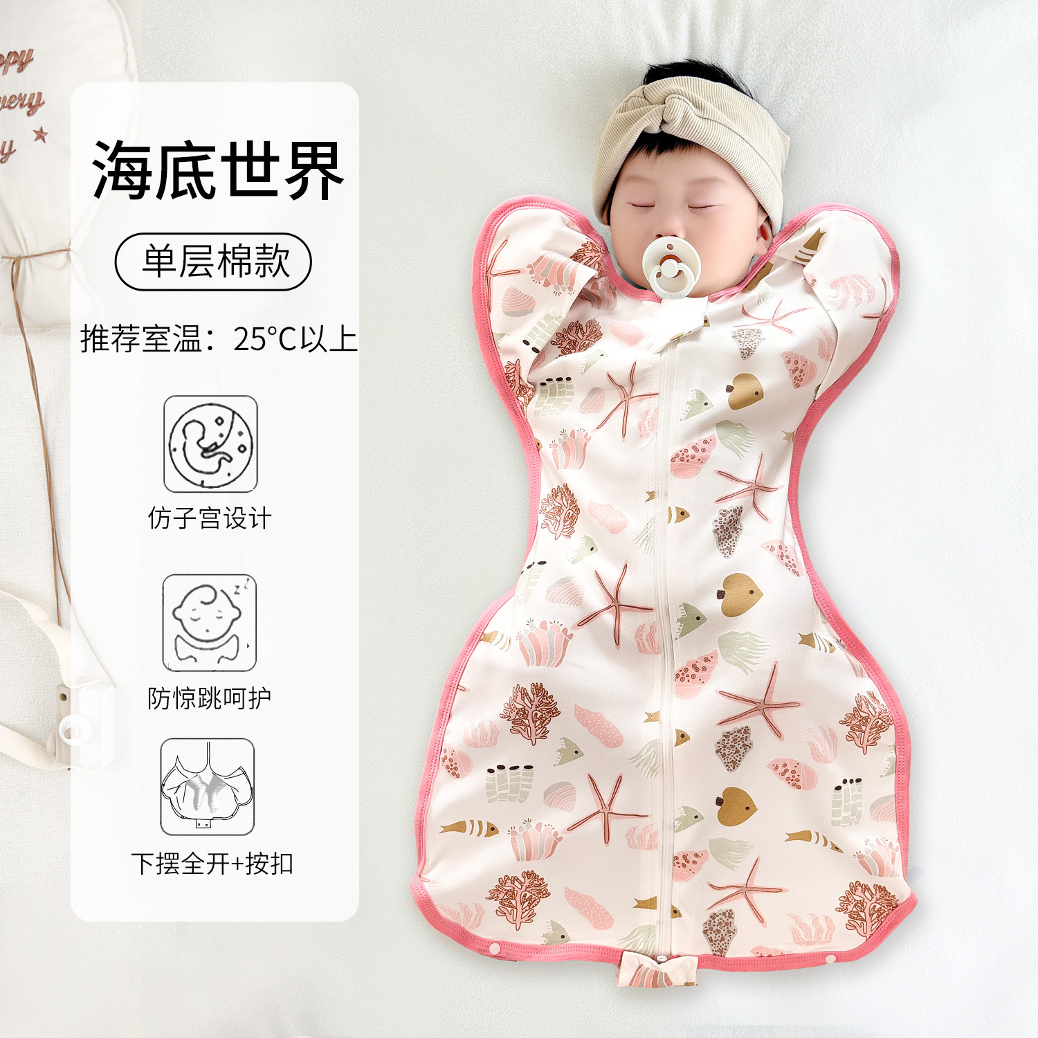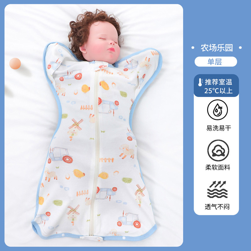 신생아 항복형 단층 순면 침낭, 아기 포대기, 깜박임 방지 아기 누비 이불, 킥 방지 이불