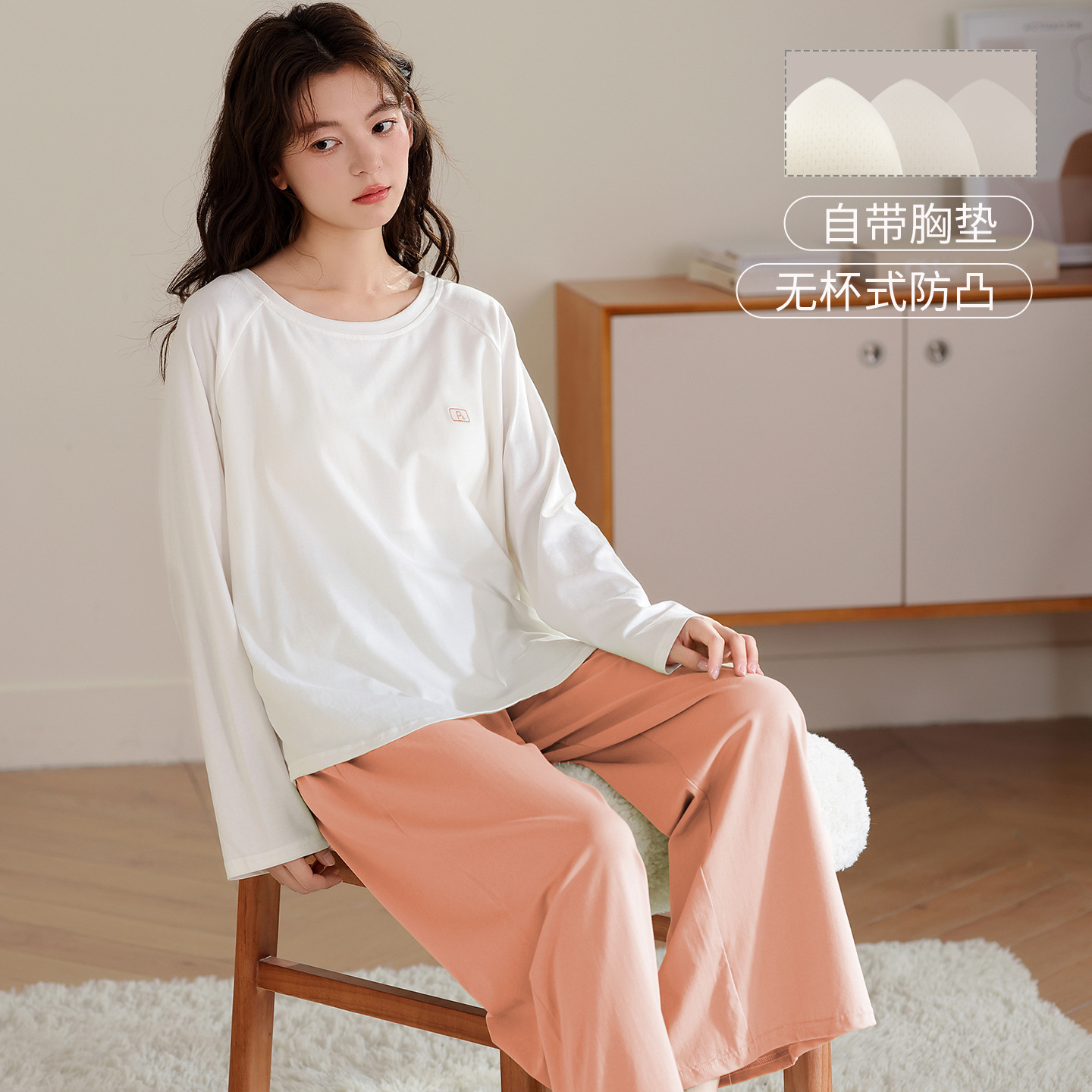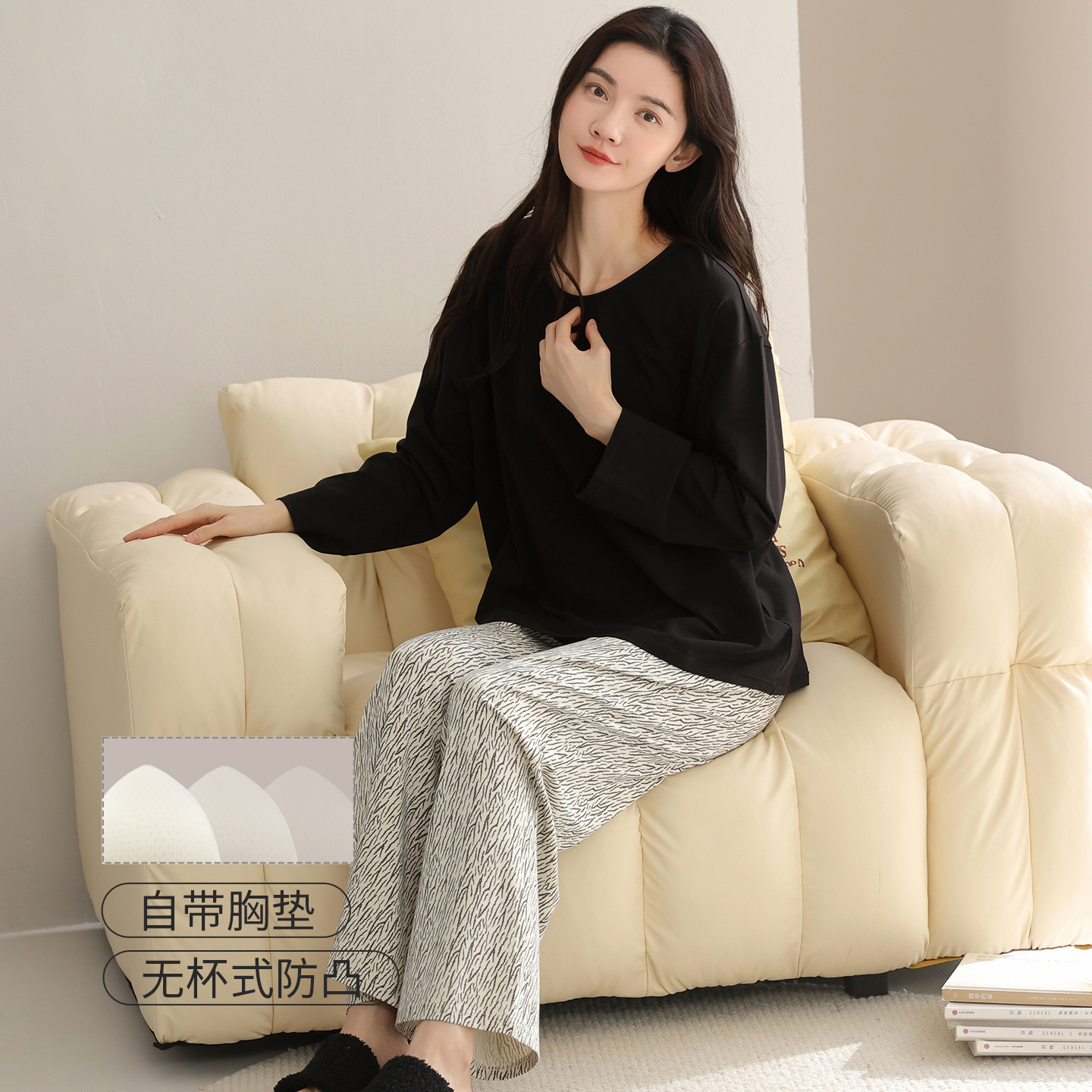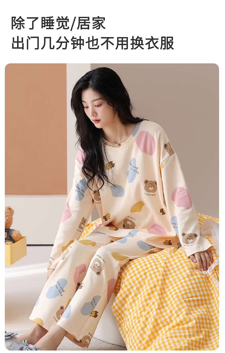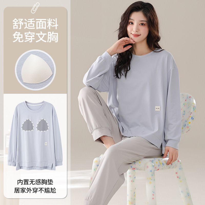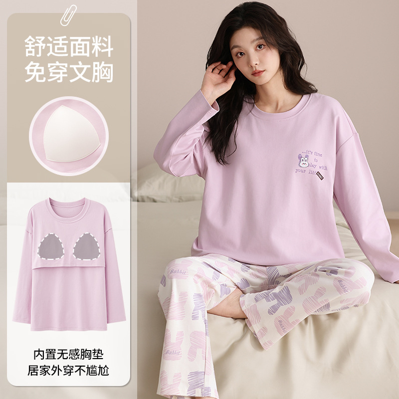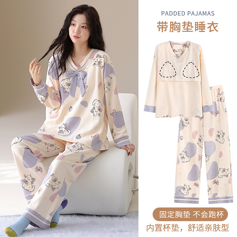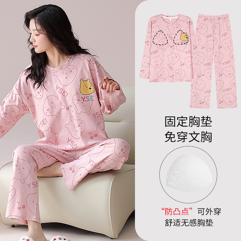 양면 패딩 180g 긴팔 바지 파자마 여성 가을 가슴 패드와 세트 만화 귀여운 집 옷을 입고스토어 가기