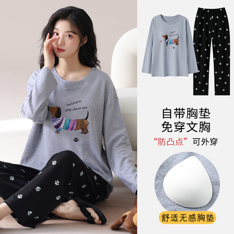 양면 패딩 180g 긴팔 바지 파자마 여성 가을 가슴 패드와 세트 만화 귀여운 집 옷을 입고
