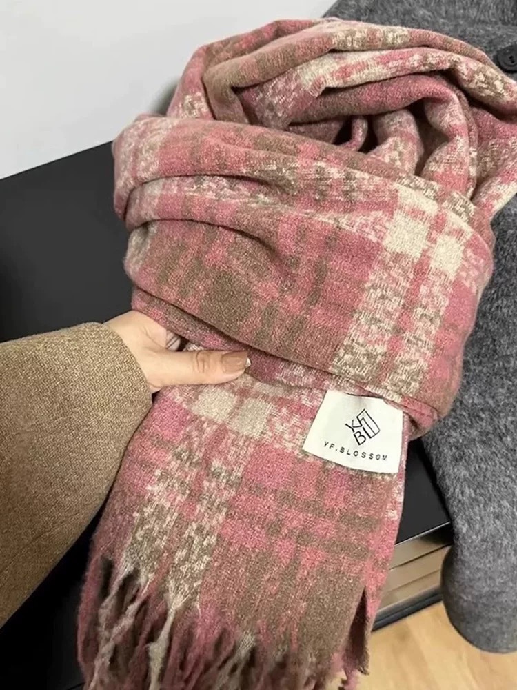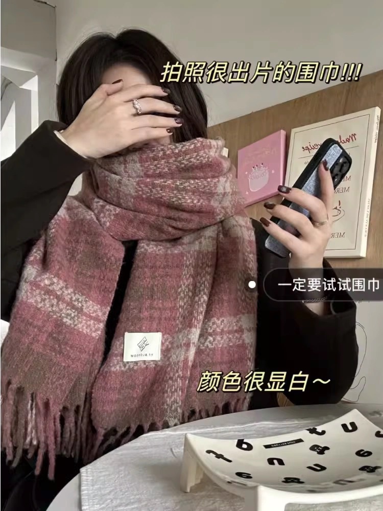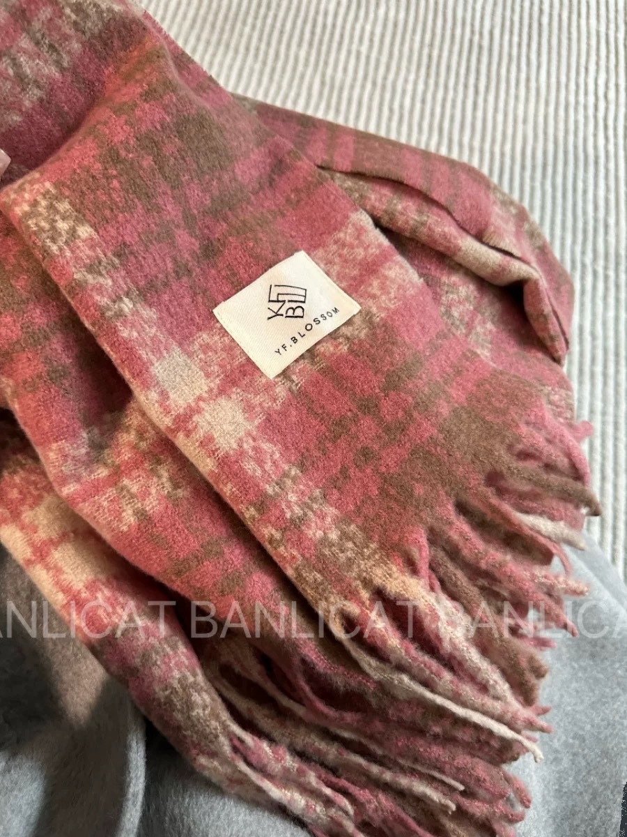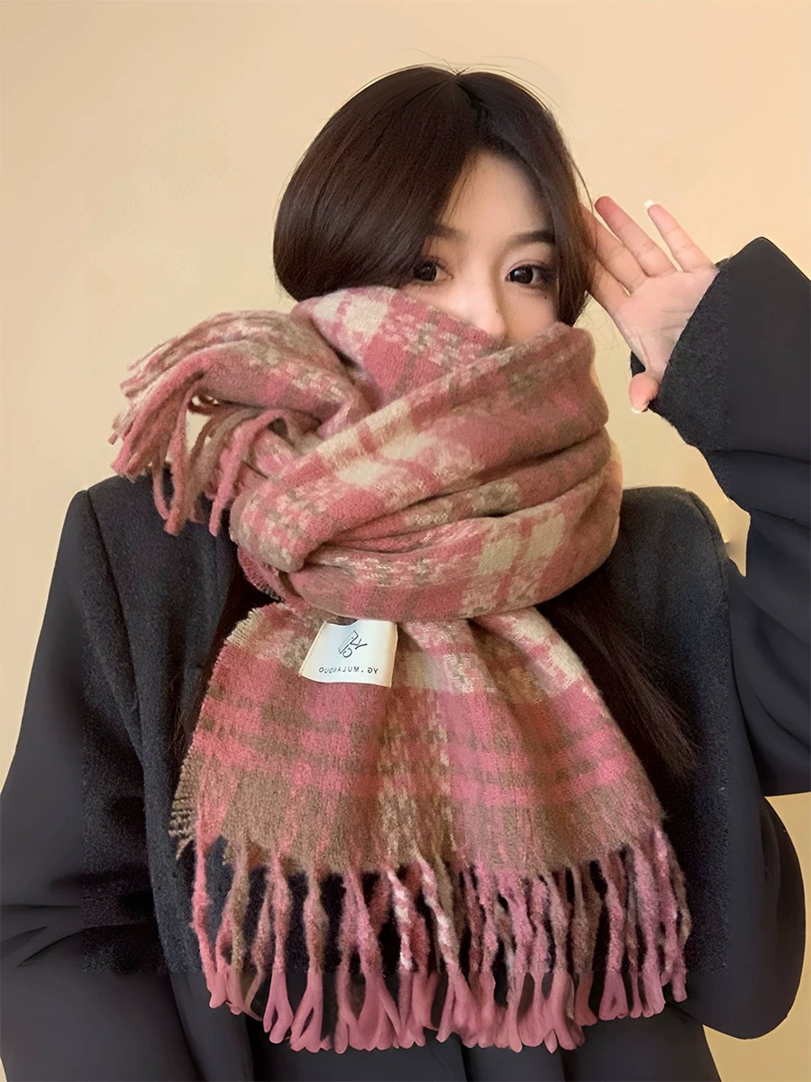 드라이 로즈 페어 체크 무늬 스카프 여성의 겨울 스카프 새로운 가을과 겨울 분위기 센스 고급 센스 올 매치 학생복