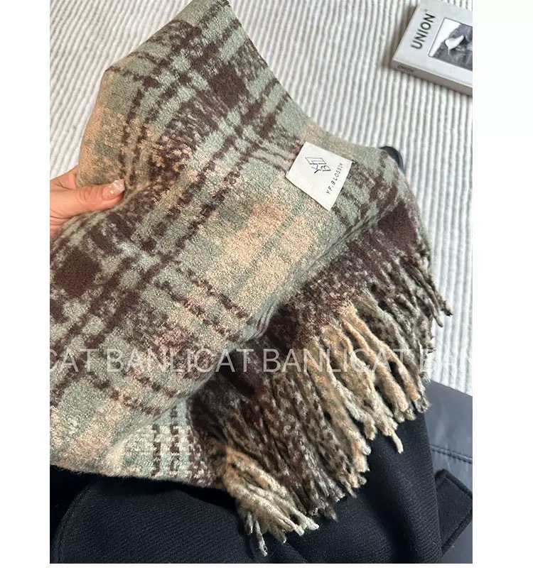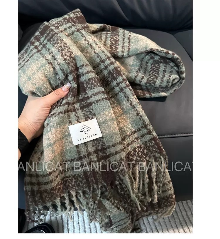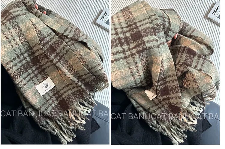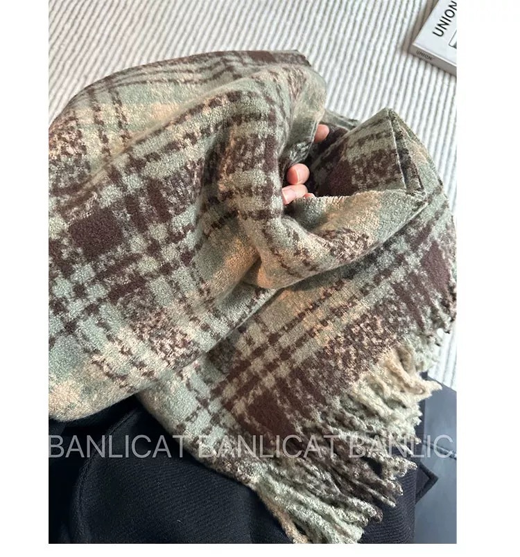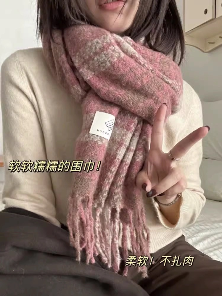 드라이 로즈 페어 체크 무늬 스카프 여성의 겨울 스카프 새로운 가을과 겨울 분위기 센스 고급 센스 올 매치 학생복