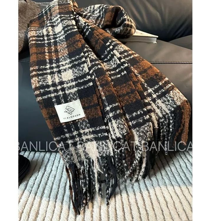 드라이 로즈 페어 체크 무늬 스카프 여성의 겨울 스카프 새로운 가을과 겨울 분위기 센스 고급 센스 올 매치 학생복스토어 가기