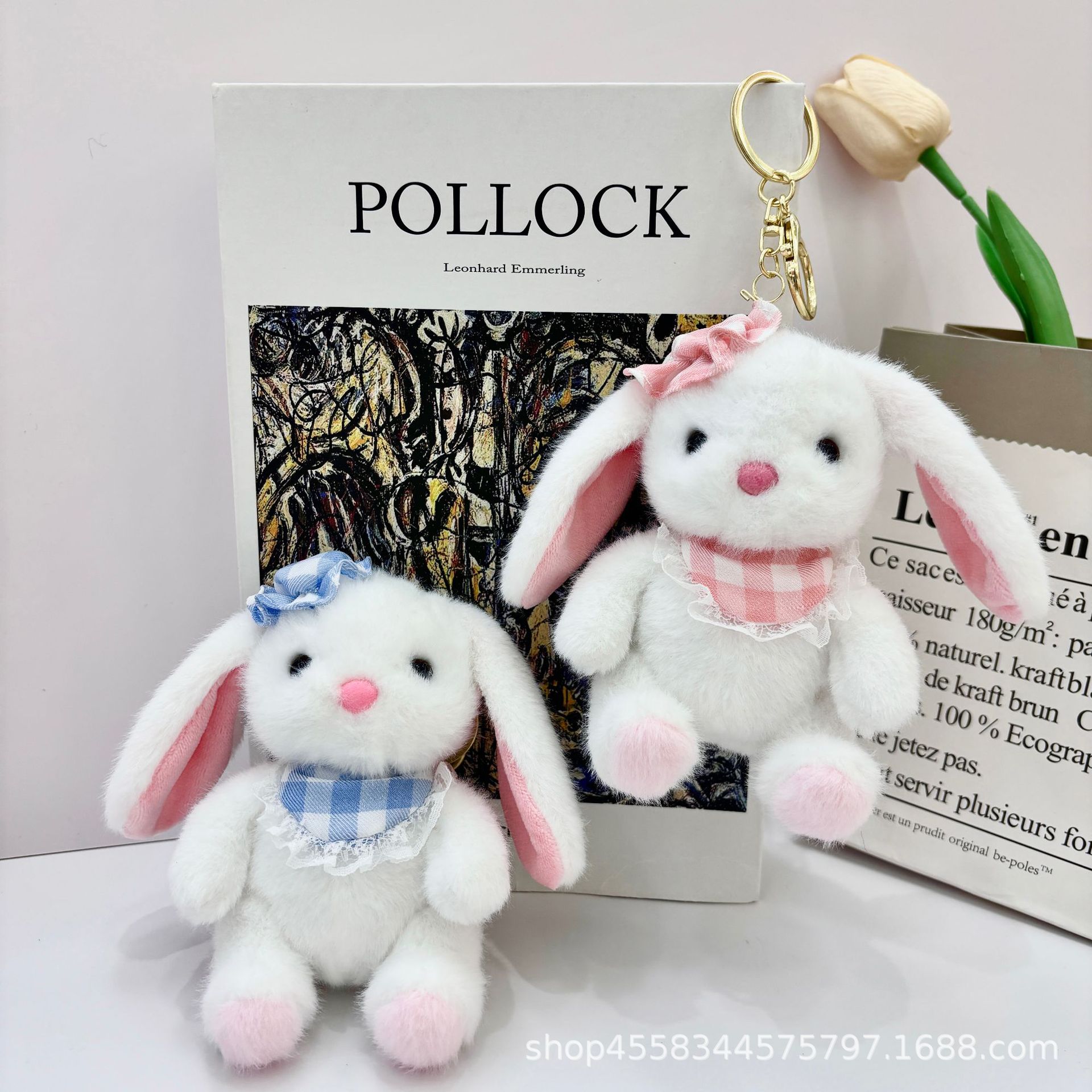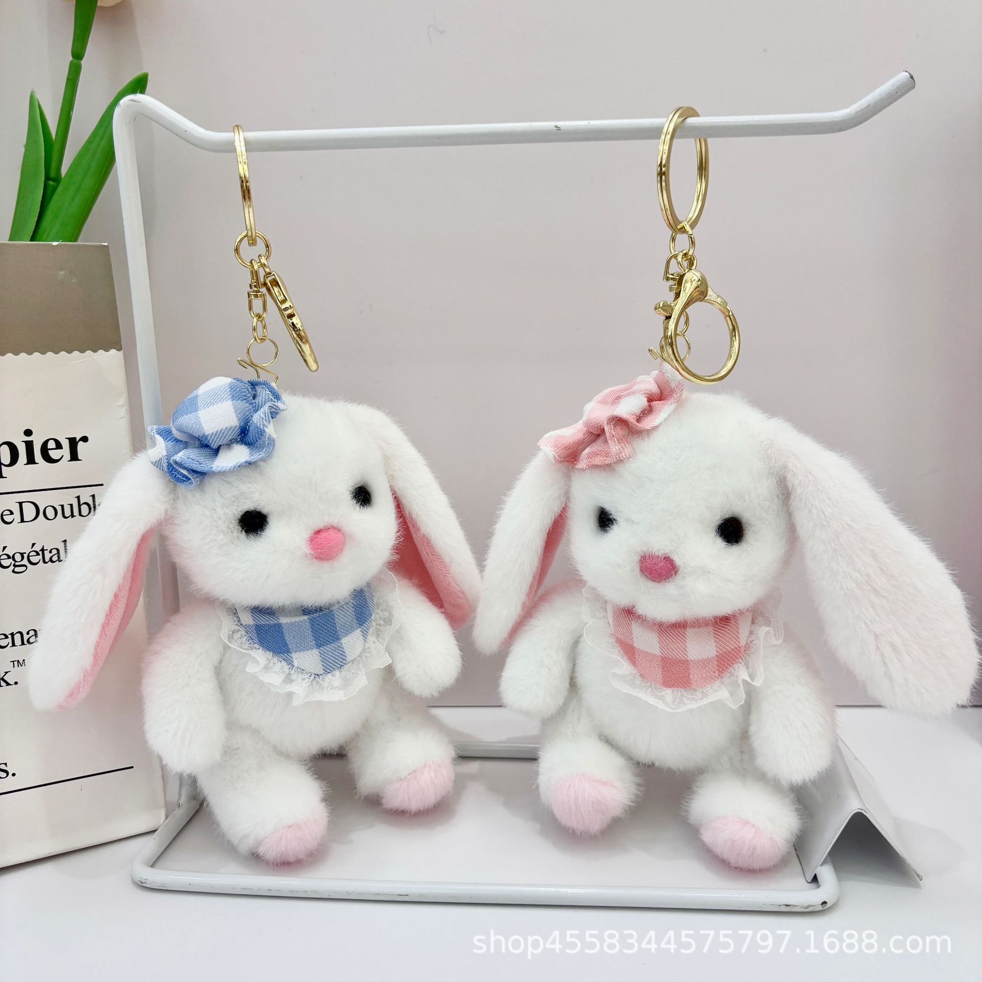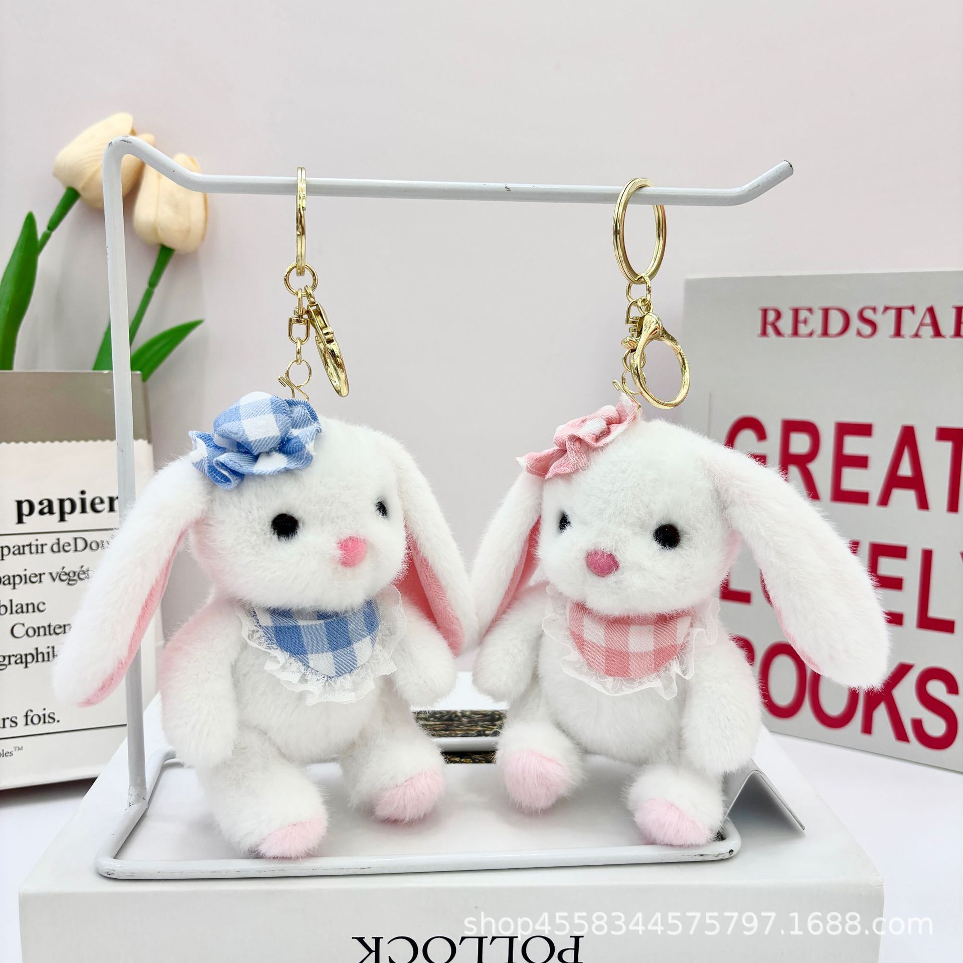긴 귀 토끼 봉제 배낭 펜던트 작은 토끼 인형 키 체인 소녀 가방 흰색 토끼 교수형 재고 도매