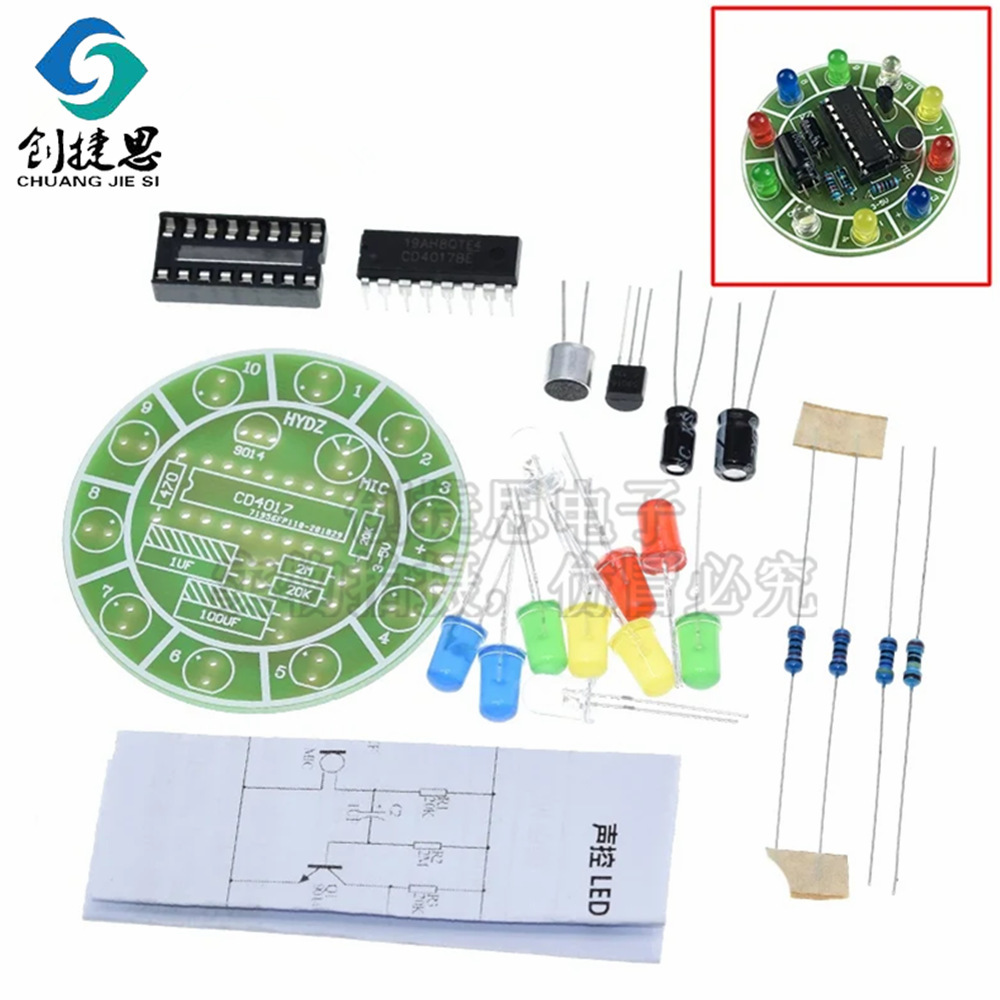• 4017 다채로운 음성 제어 회전 LED 조명 키트 음성 제어 전자 생산 diy 키트 diy 생산 부품