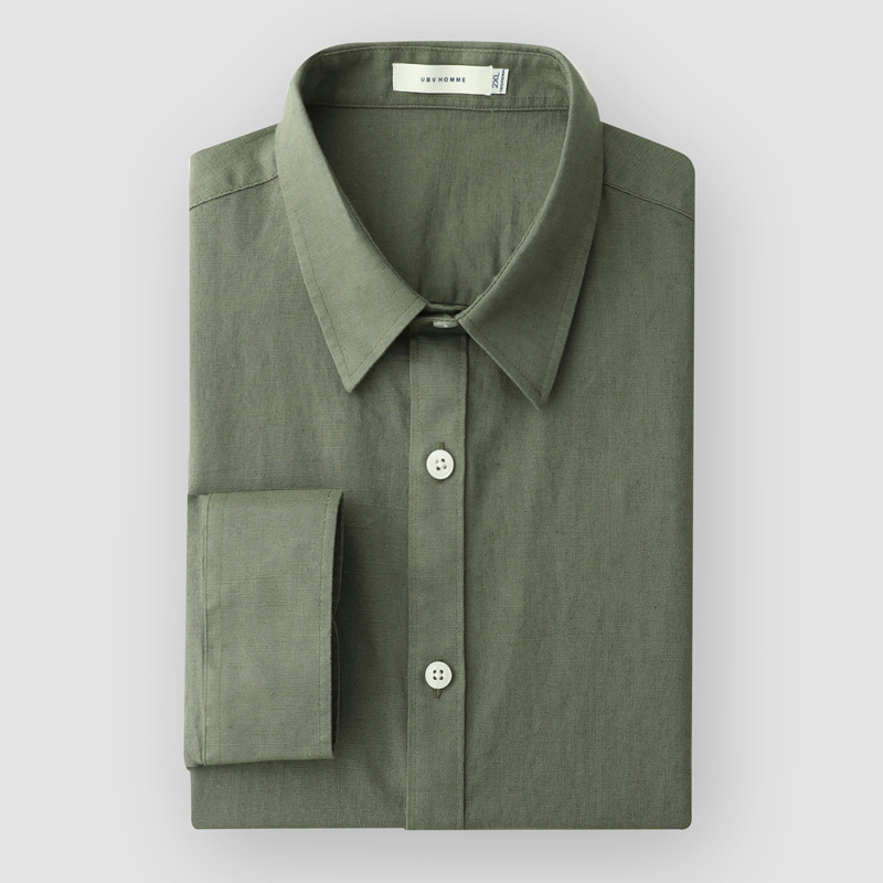 면과 린넨 혼방 옥스퍼드 직물 방식, 통기성, 철분 없음, 2025 봄 인치 셔츠, 피크 칼라, 남성용 아메리칸 캐주얼 긴팔 셔츠스토어 가기