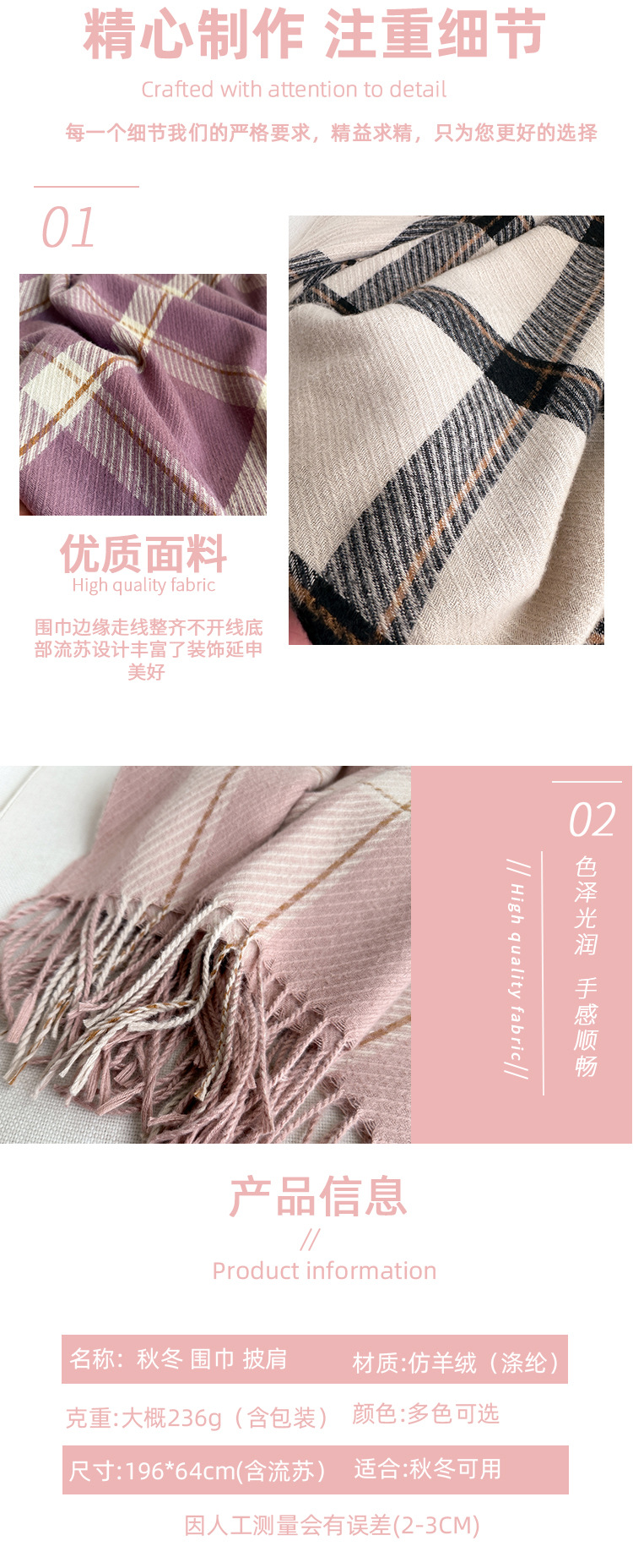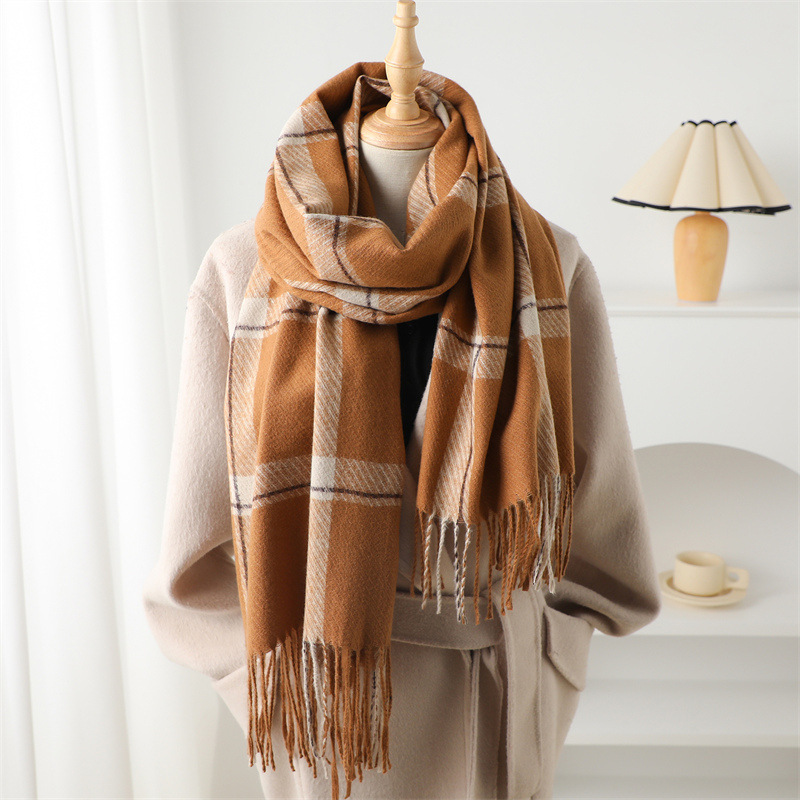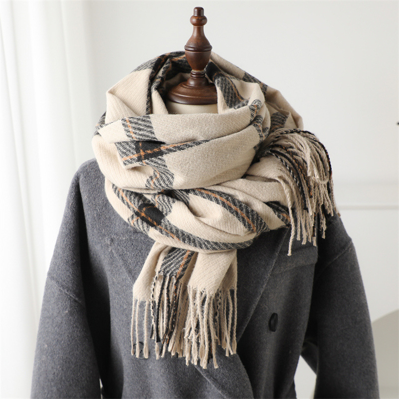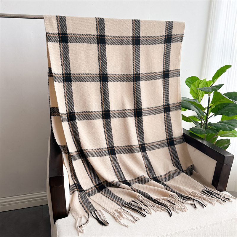 간단한 고급 모조 캐시미어 격자 무늬 따뜻한 목도리 스카프 유니섹스 가을 겨울 패션 올 매치 술 스카프
