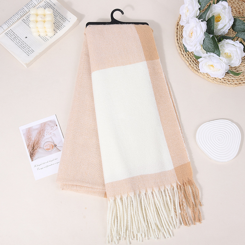 한국 격자 무늬 간단한 스카프 2024 가을과 겨울 새로운 격자 무늬 따뜻한 한국 술 스카프 목도리 높은 감각스토어 가기