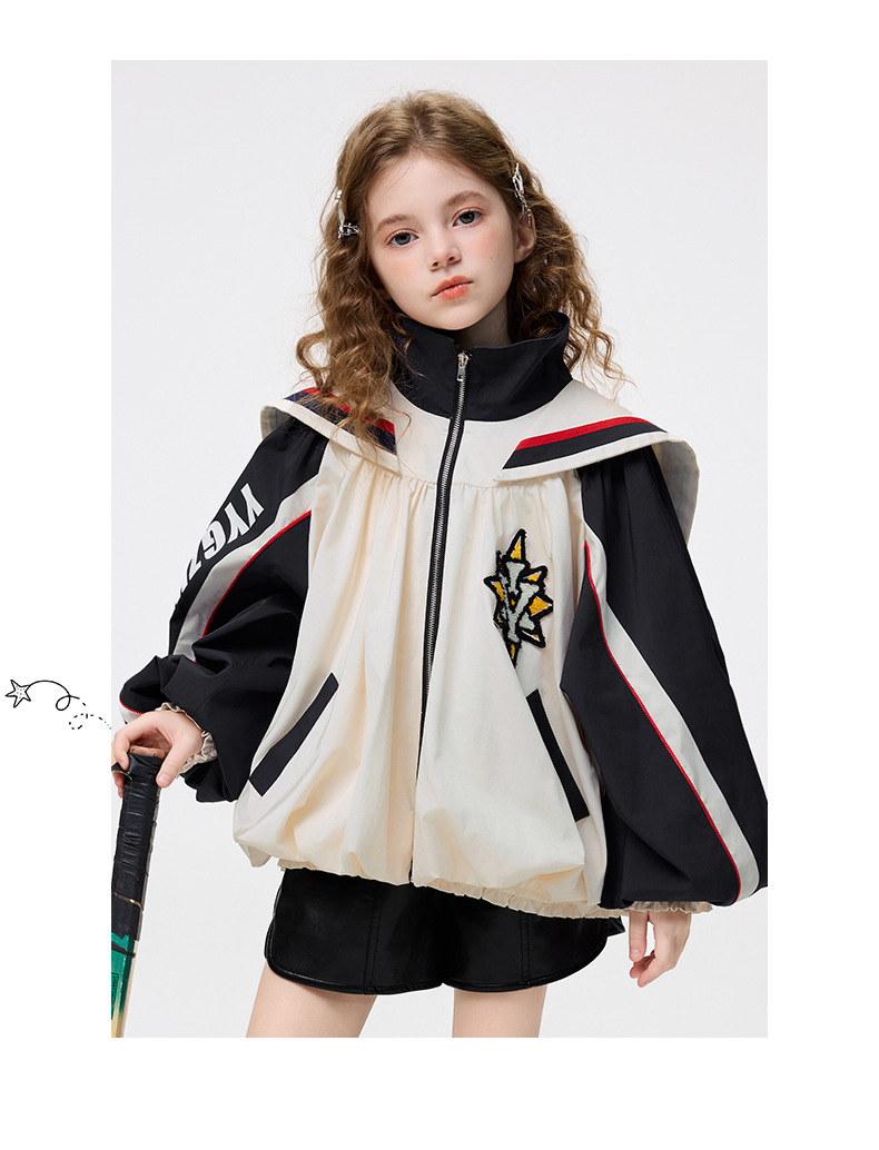 소녀의 코트 봄과 가을 2024 새로운 스타일 소녀의 해군 칼라 재킷 어린이 느슨한 캐주얼 탑 가을