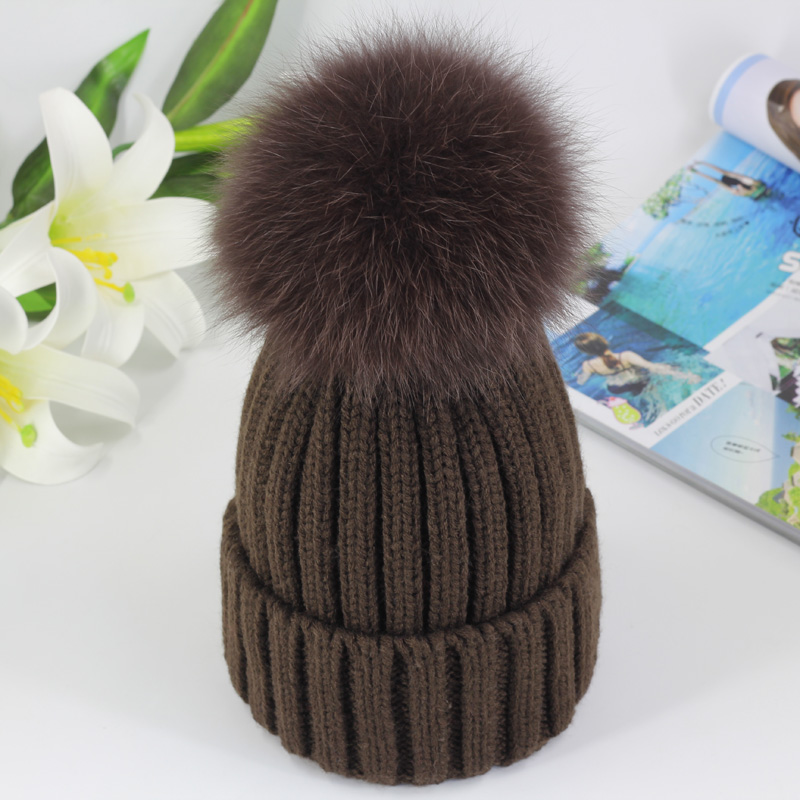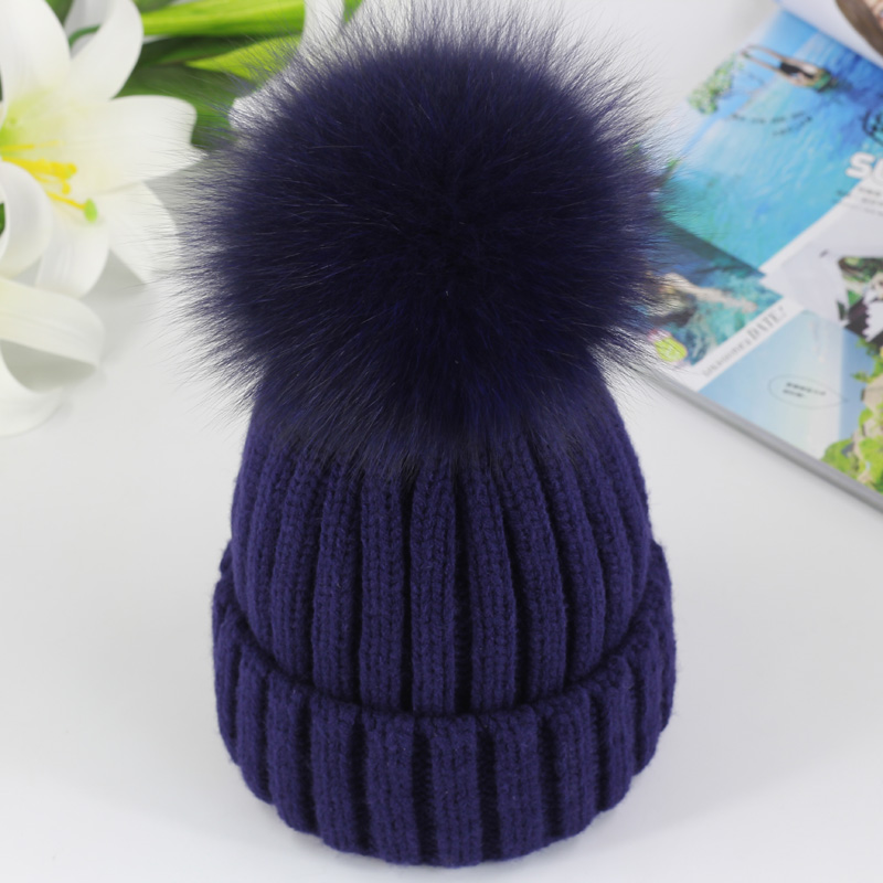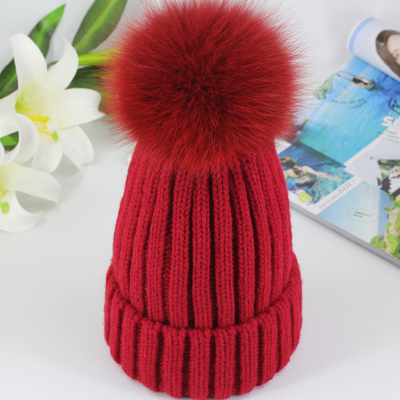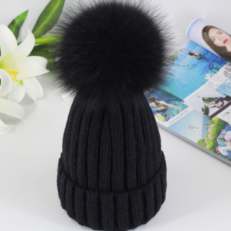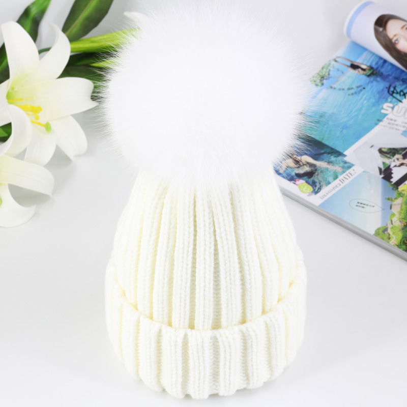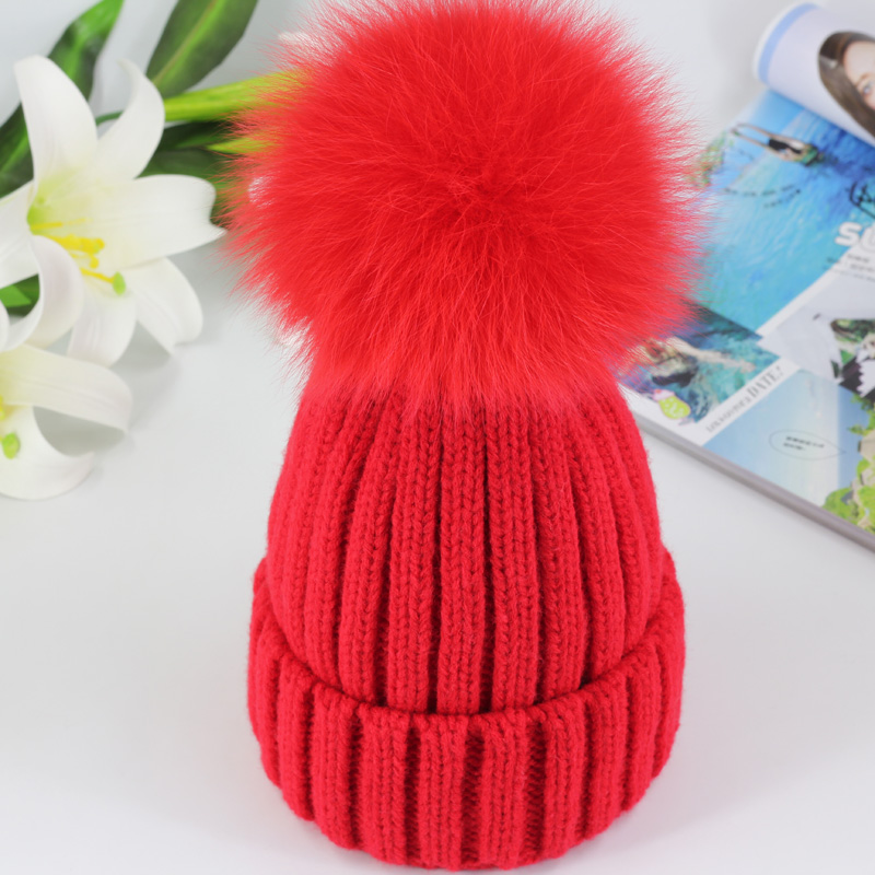 여자 가을 · 겨울 여우 큰 모피 공 양모 모자 한국식 올매치 따뜻한 모피 니트 어린이 파린-자식 모자