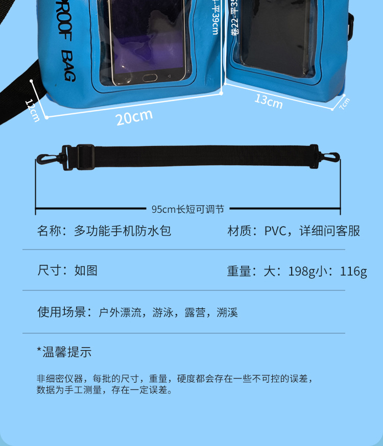 휴대폰 방수 가방, 고투명 방수 크로스백, 터치스크린 가능, 두꺼운 8등급 야외 수영 보관 가방, 야외 레저용스토어 가기