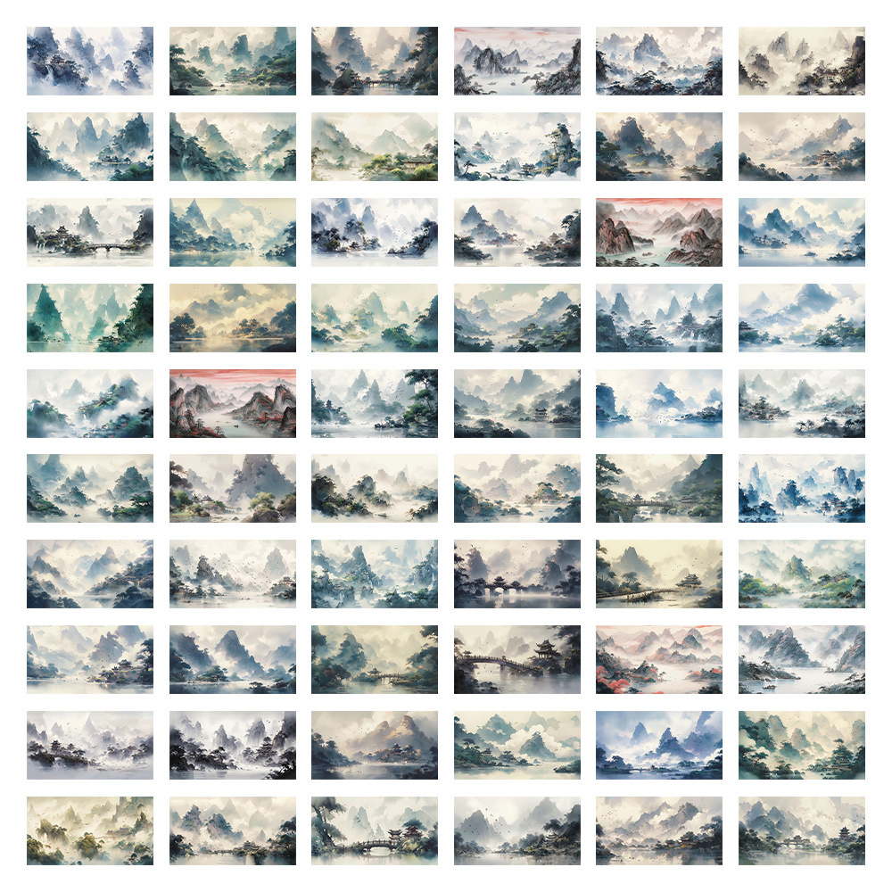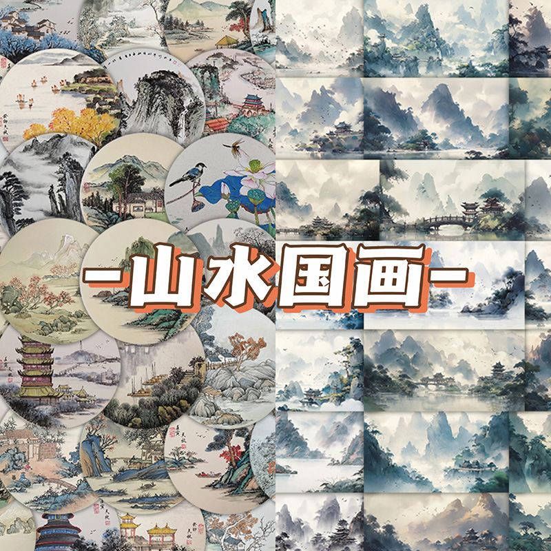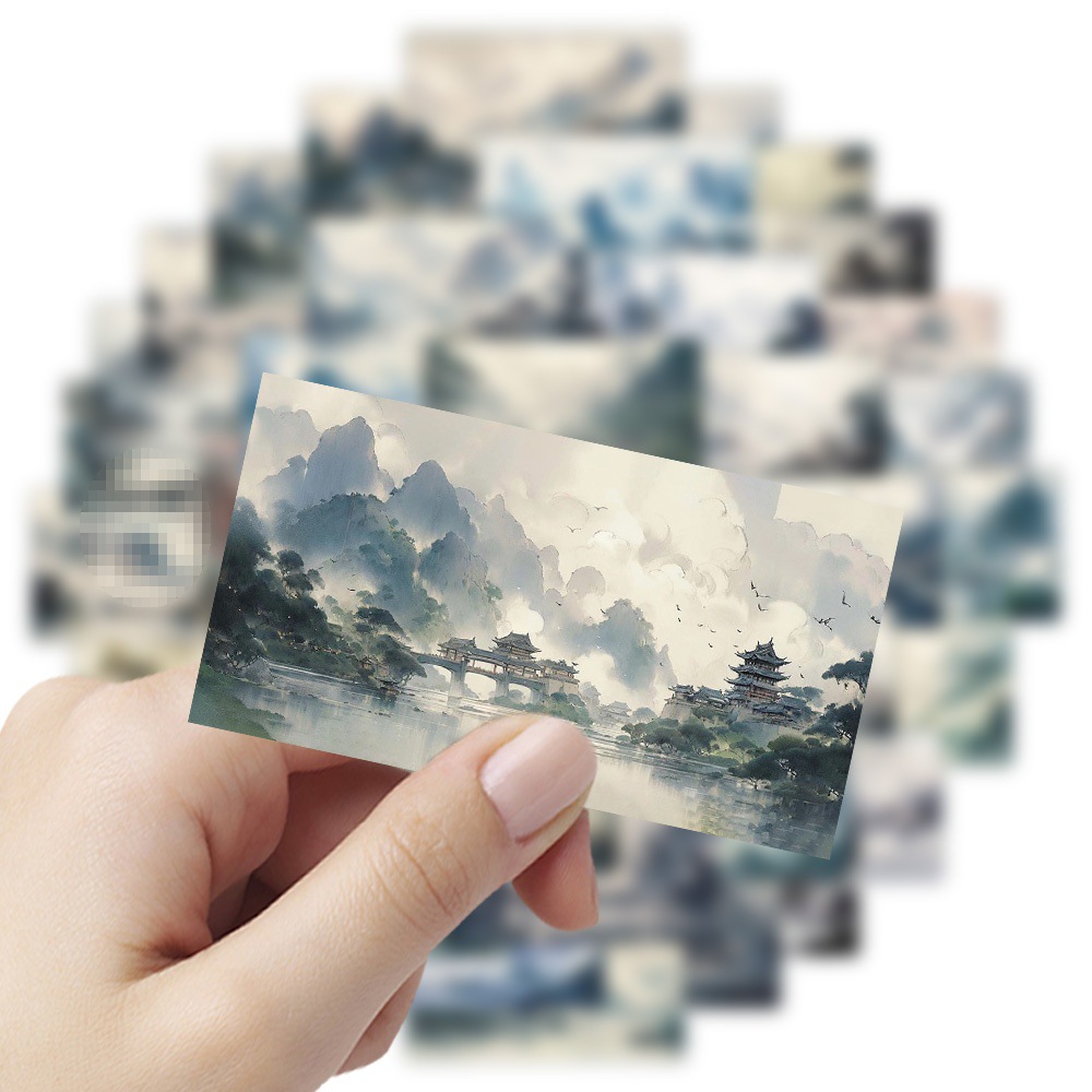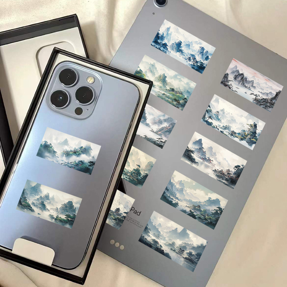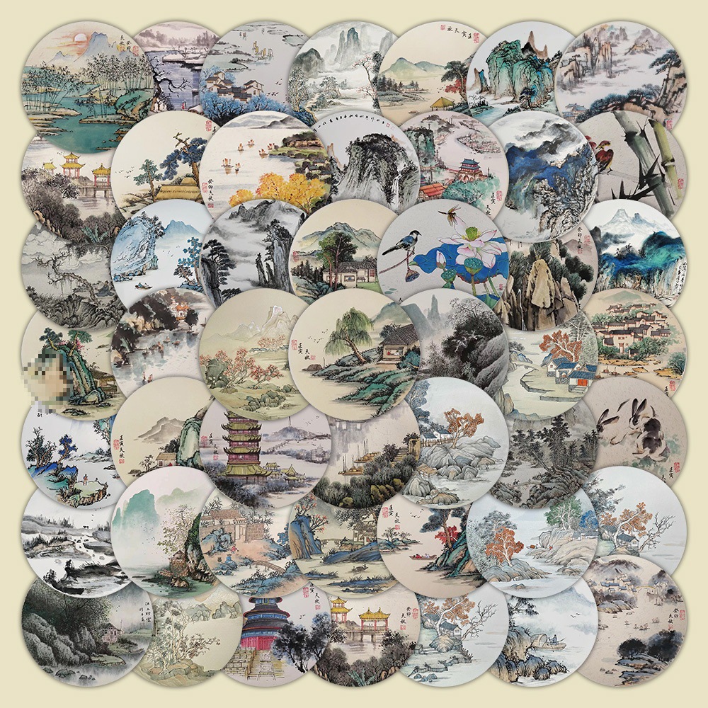 최고 비용 효율적인 120 조각 풍경 중국 그림 스티커 잉크 스타일 둥근 사각형 국가 조수 장식 손 계정 요소 배치스토어 가기