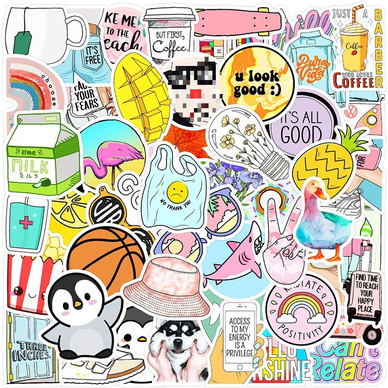 슈퍼 비용 효과적인 100 간단한 작은 신선한 스티커 창조적 인 바람 선 장식 방수 자체 붙여 넣기 배치스토어 가기