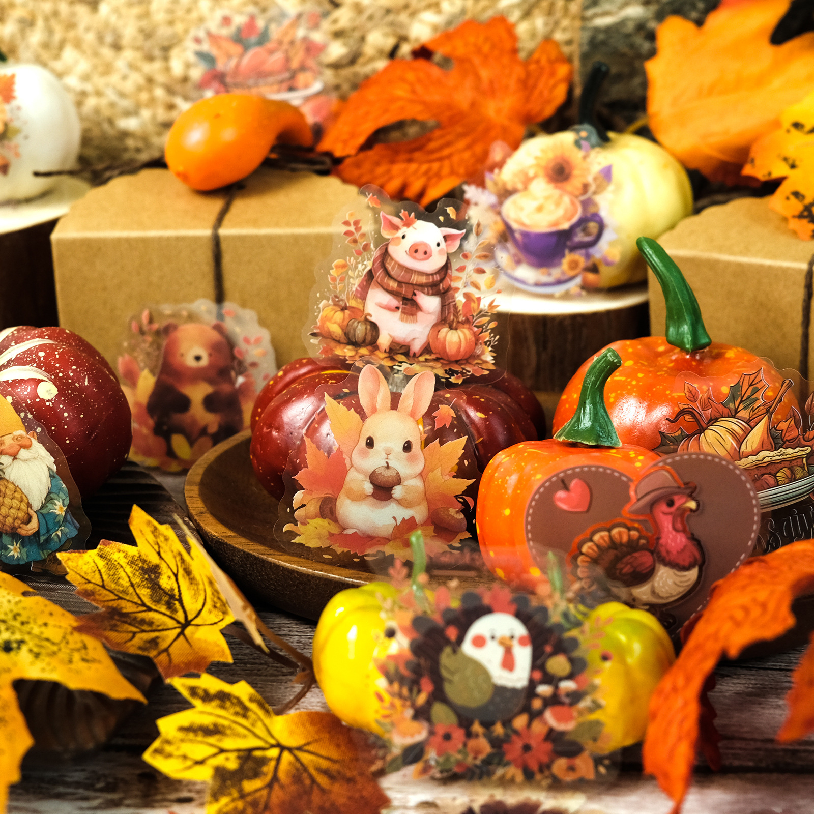 슈퍼 비용 효율적인 50 추수 감사절 스티커 투명 애완 동물 소재 방수 창조적 인 휴대 전화 쉘 데스크탑 손 배치