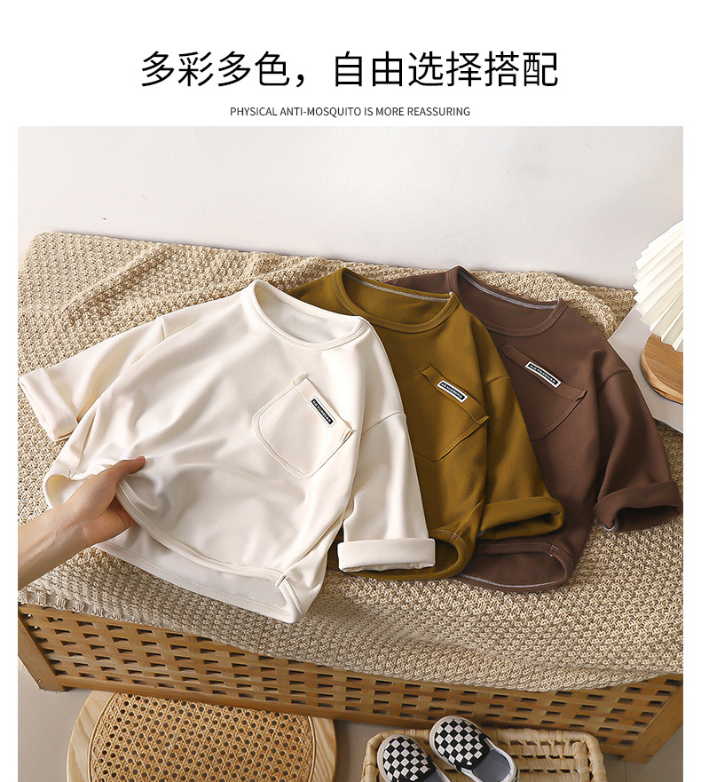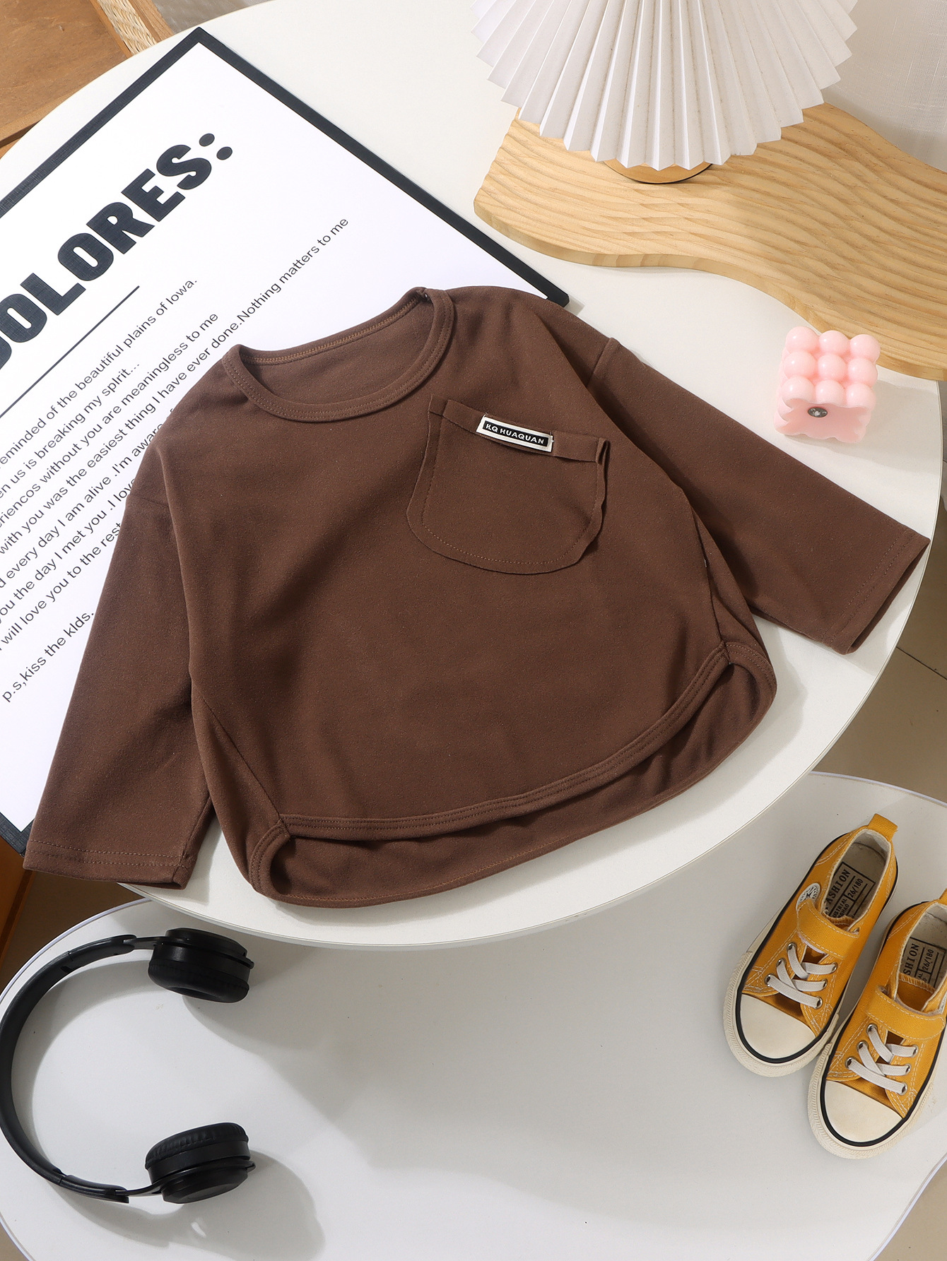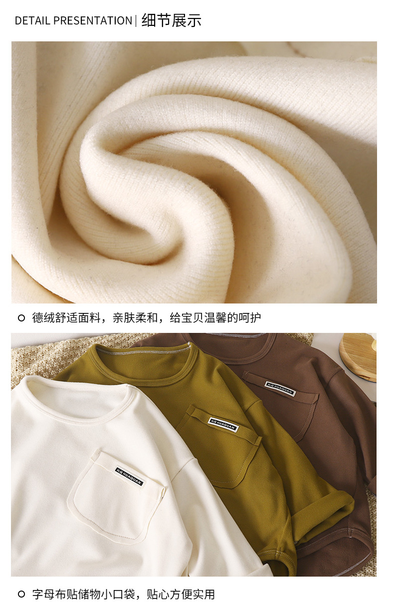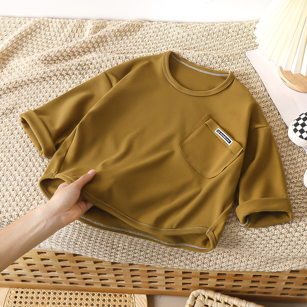 어린이 한국식 단색 싱글 탑 2024 봄 새 소년과 소녀 단순 느슨한 긴팔 벨벳 싱글 탑스토어 가기