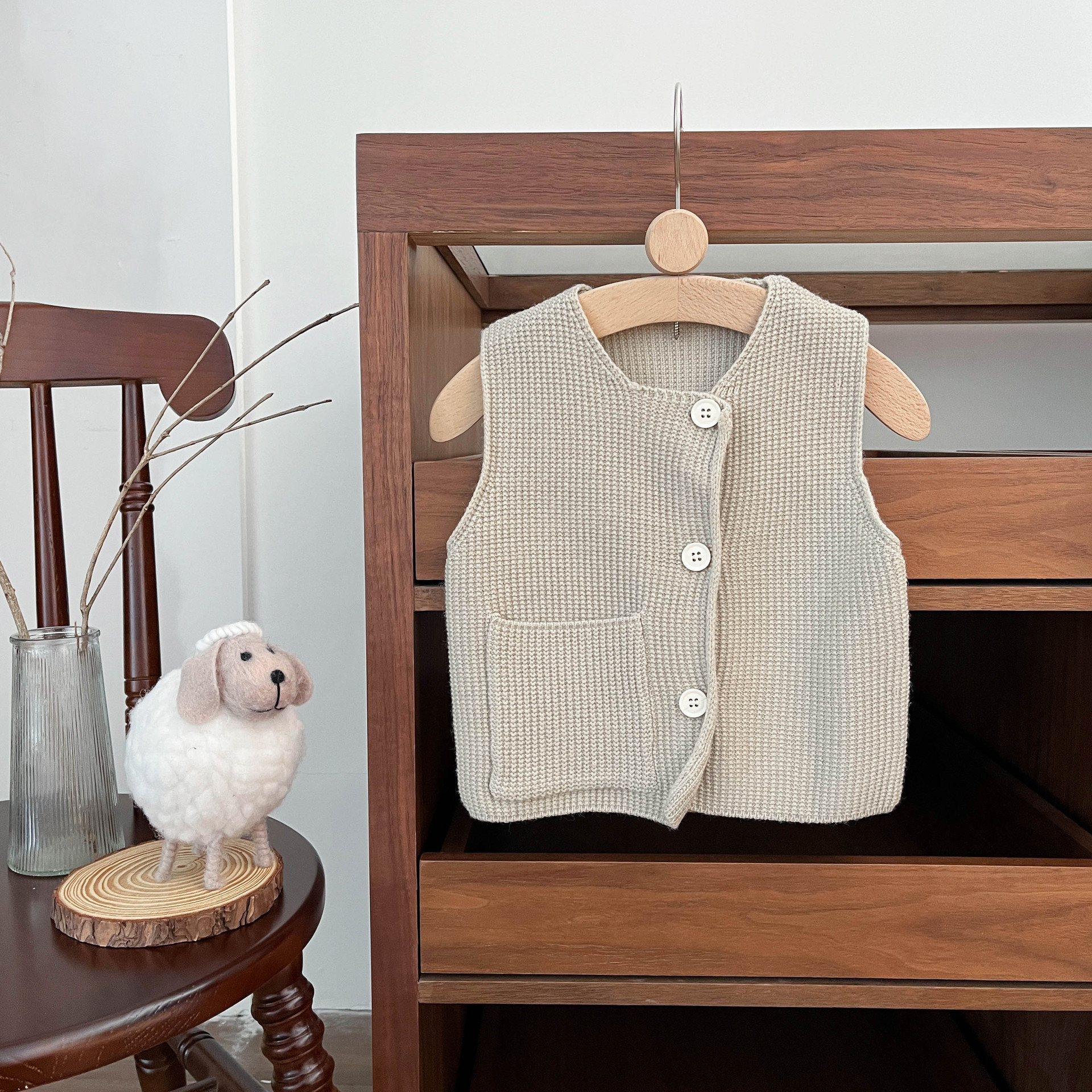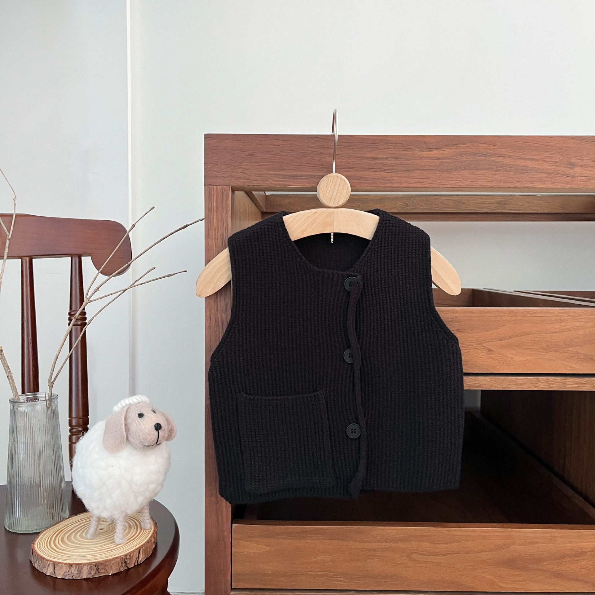 모리 심플 ~ 한국 어린이 단색 조커 니트 조끼 남자와 여자의 보물 스웨터 카디건 허리 코트 봄과 가을 코트스토어 가기
