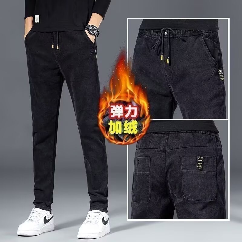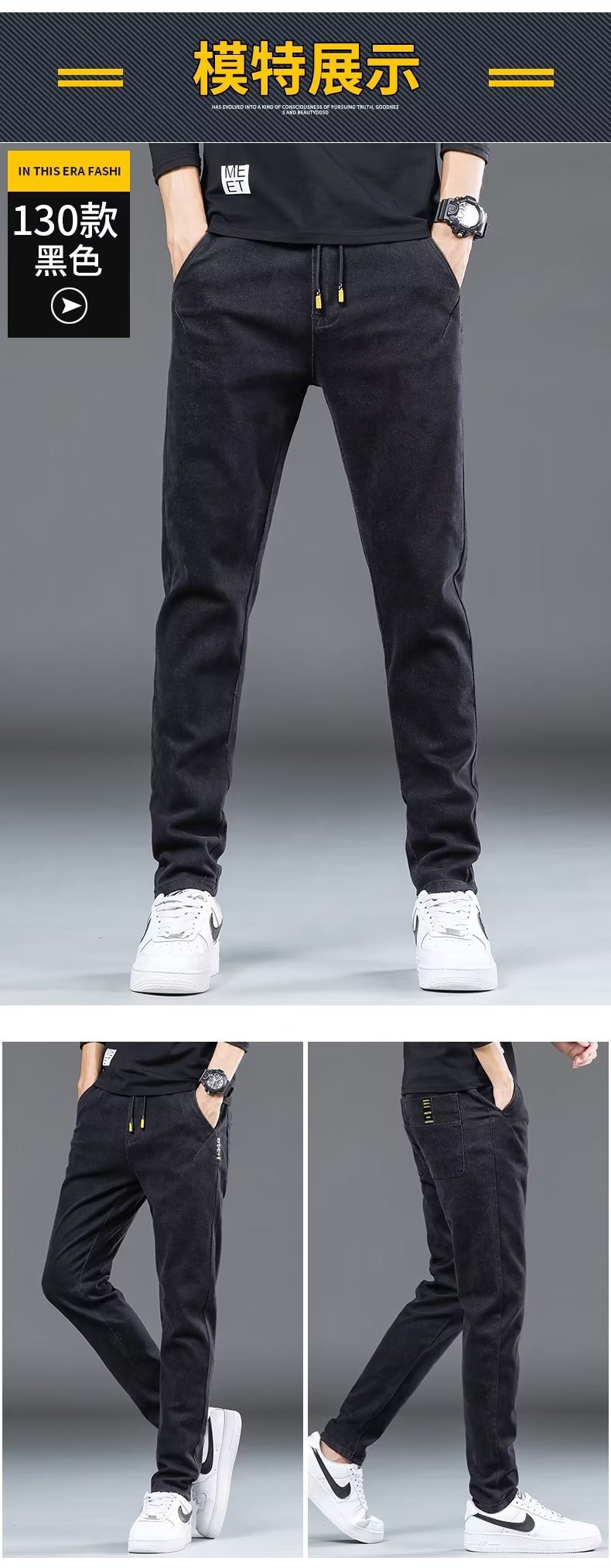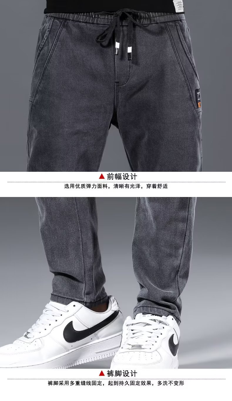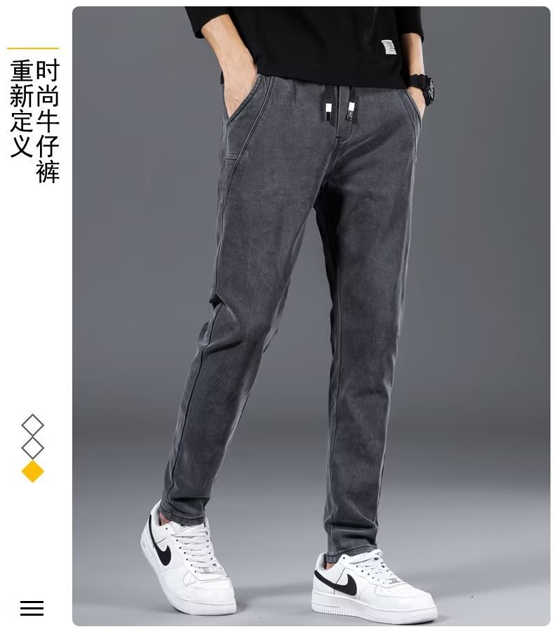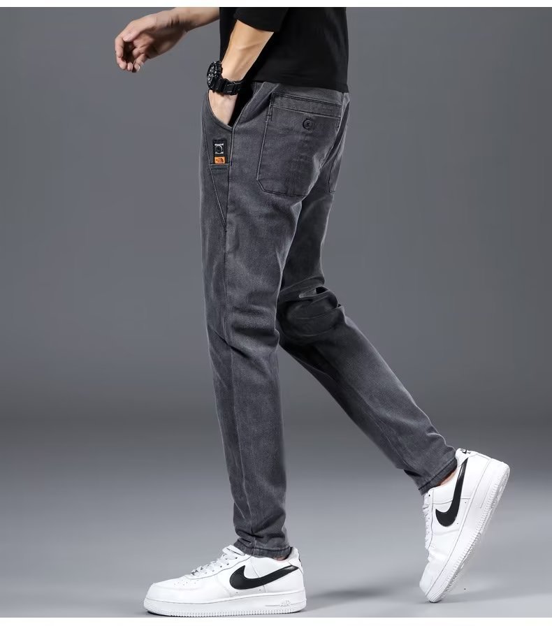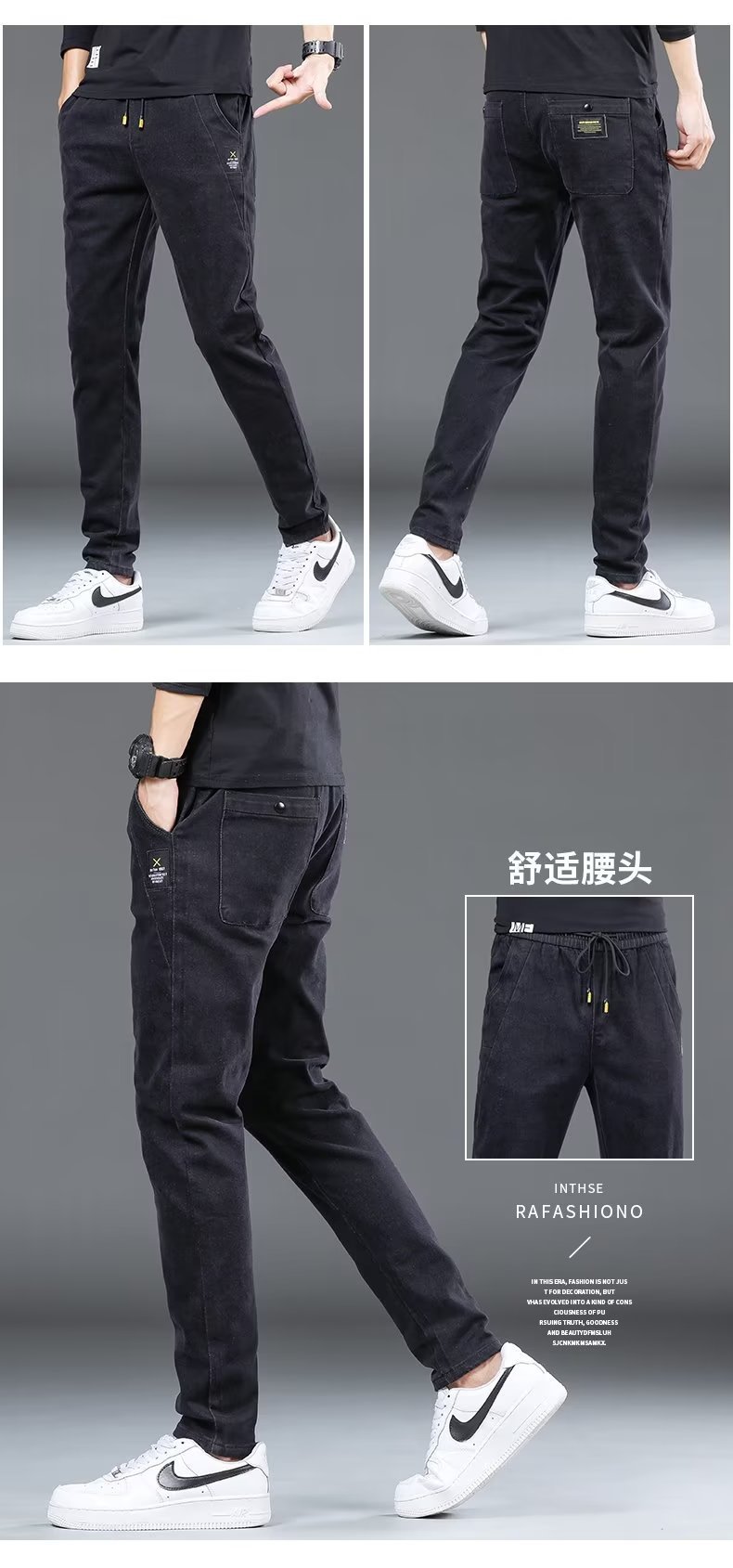 탄성 허리 청바지 남자의 봄과 가을 새로운 2024 새로운 느슨한 스트레이트 캐주얼 남자의 긴 바지스토어 가기