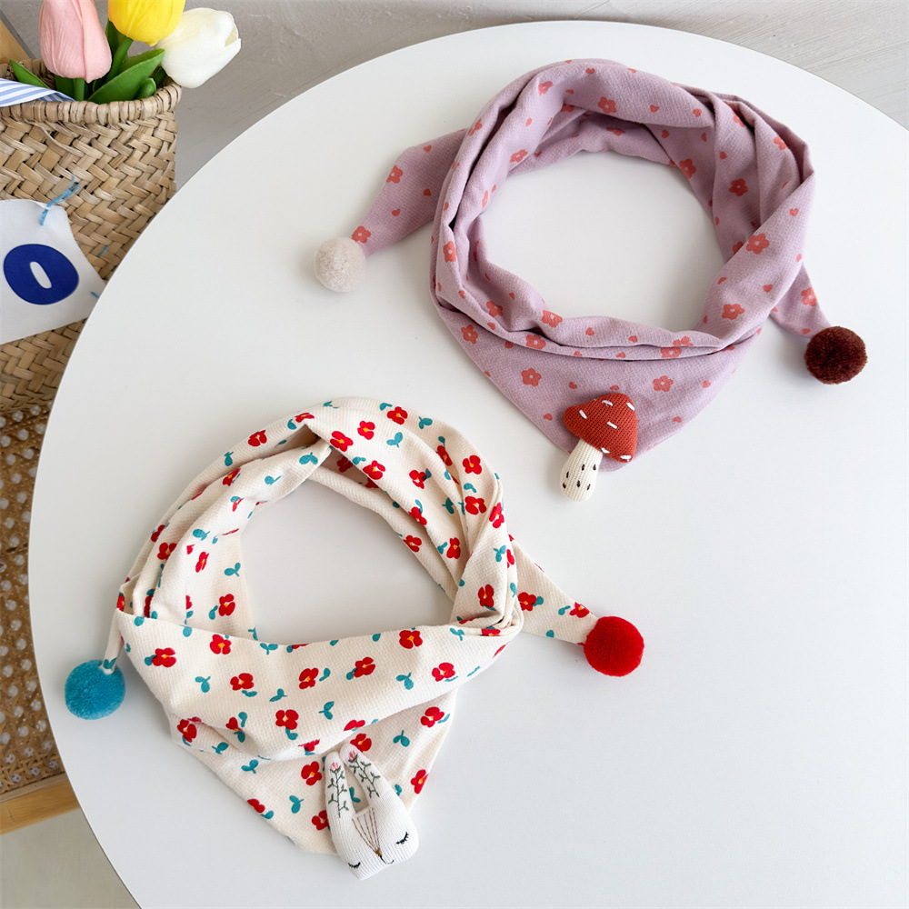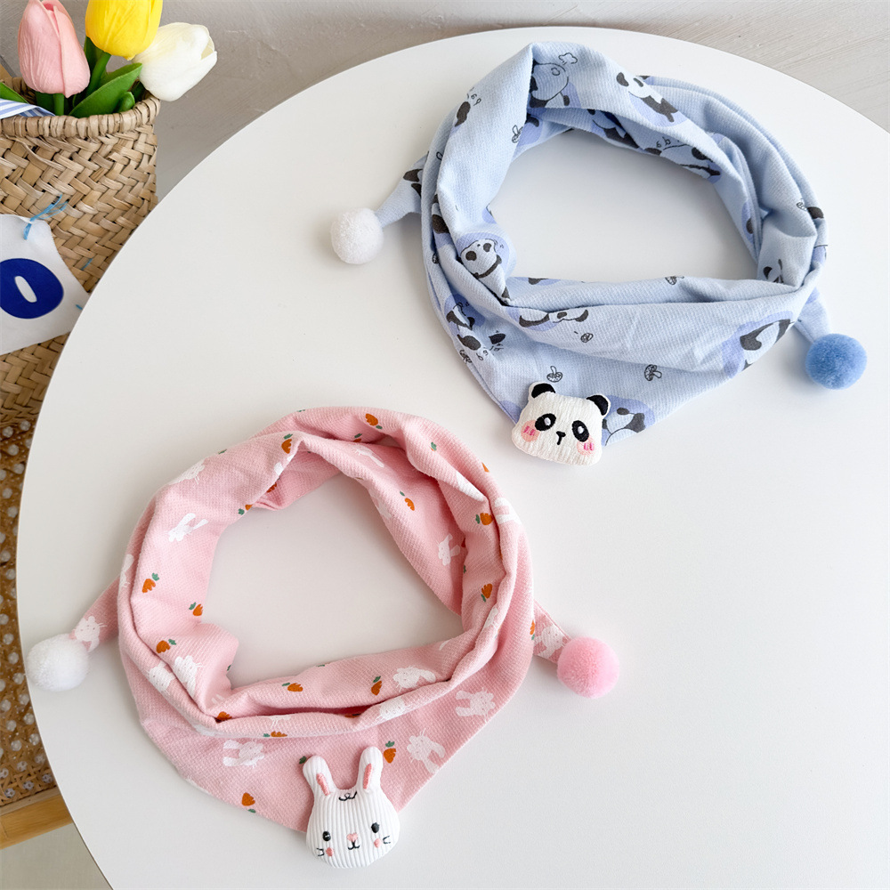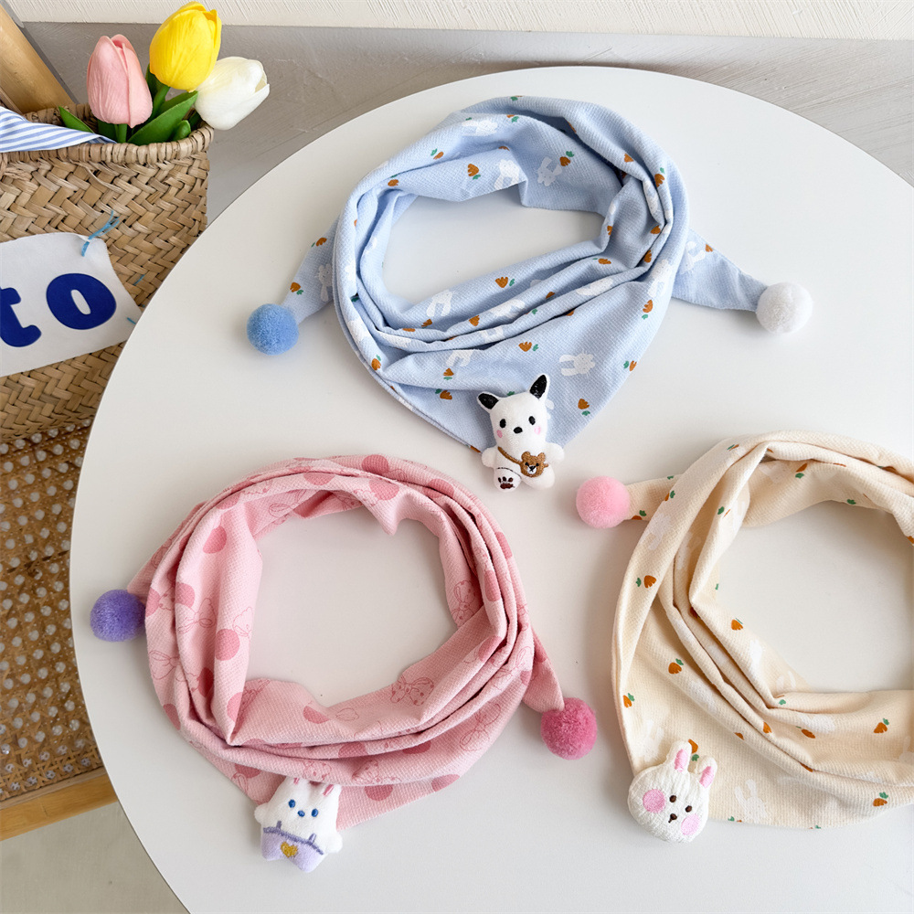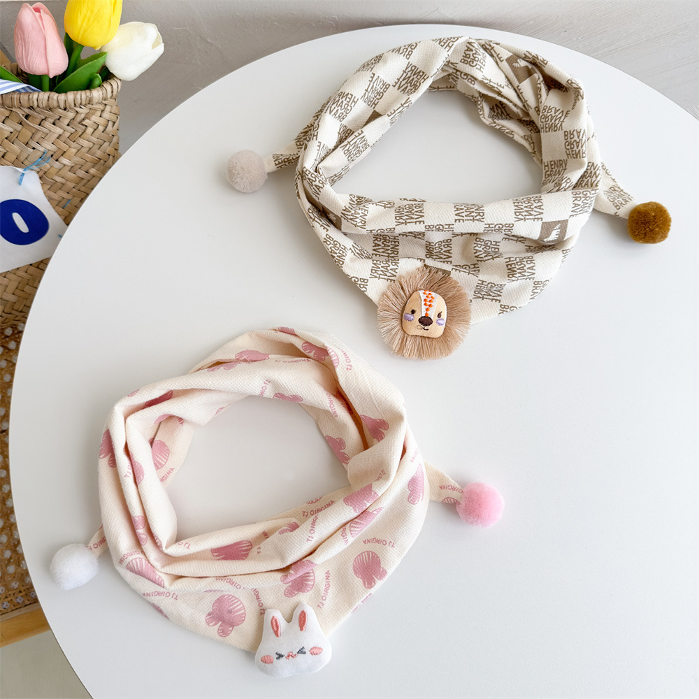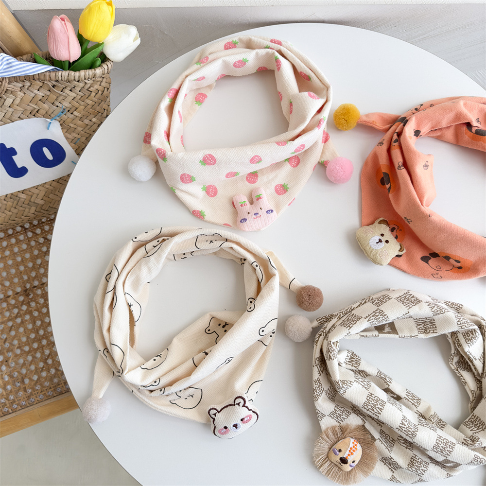 2025 가을과 겨울 면화 린넨 어린이 스카프 소년 소녀 만화 삼각형 수건 아기 타액 수건 따뜻한 아기 스카프스토어 가기