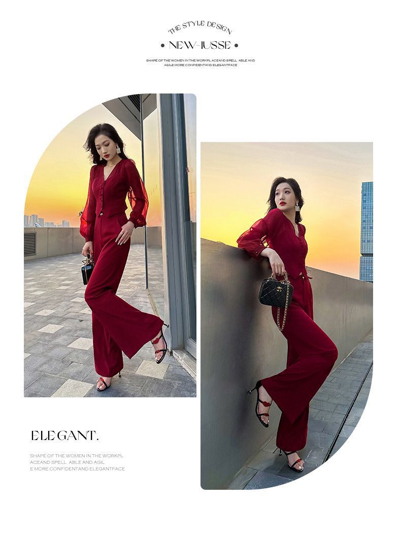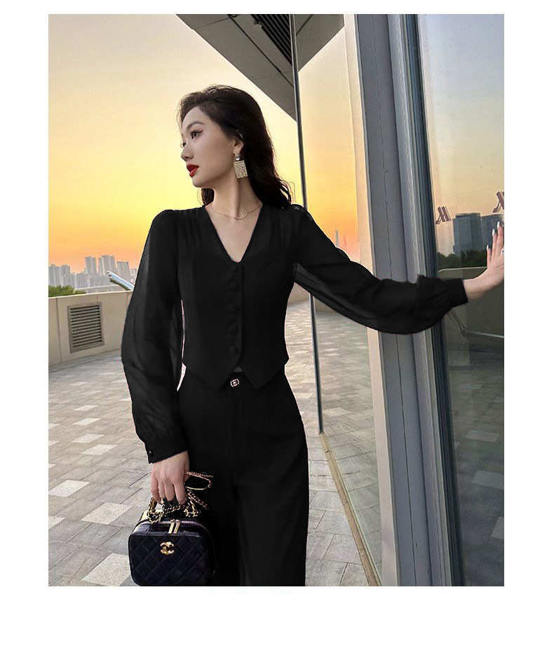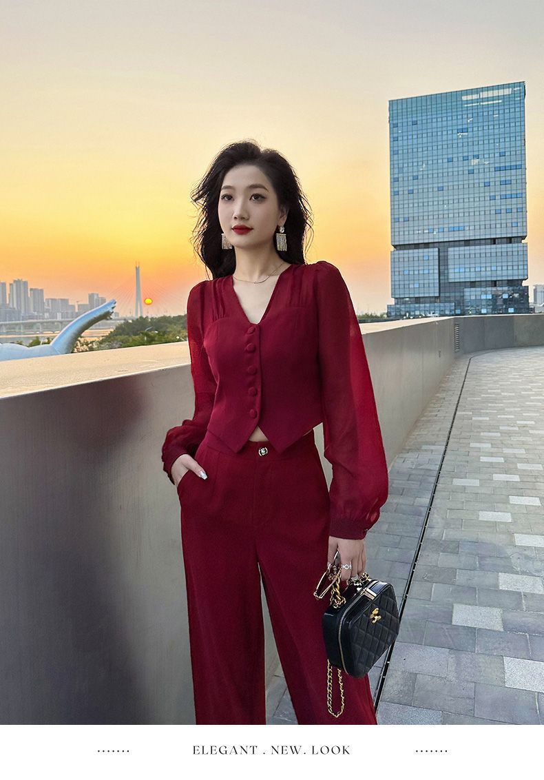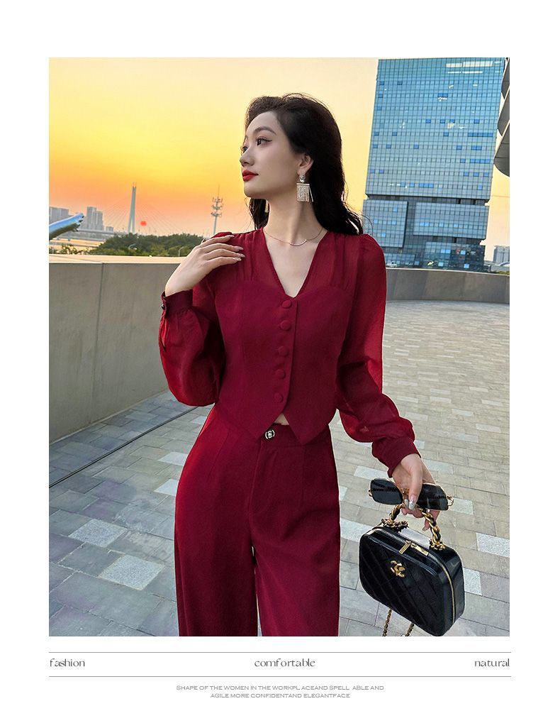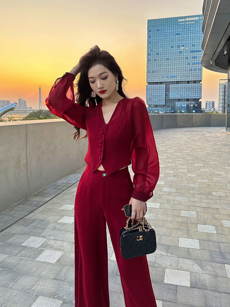 패션 세트 여성용 셔츠 탑 와이드 레그 바지 투피스 세트 2024 가을 신입 세트