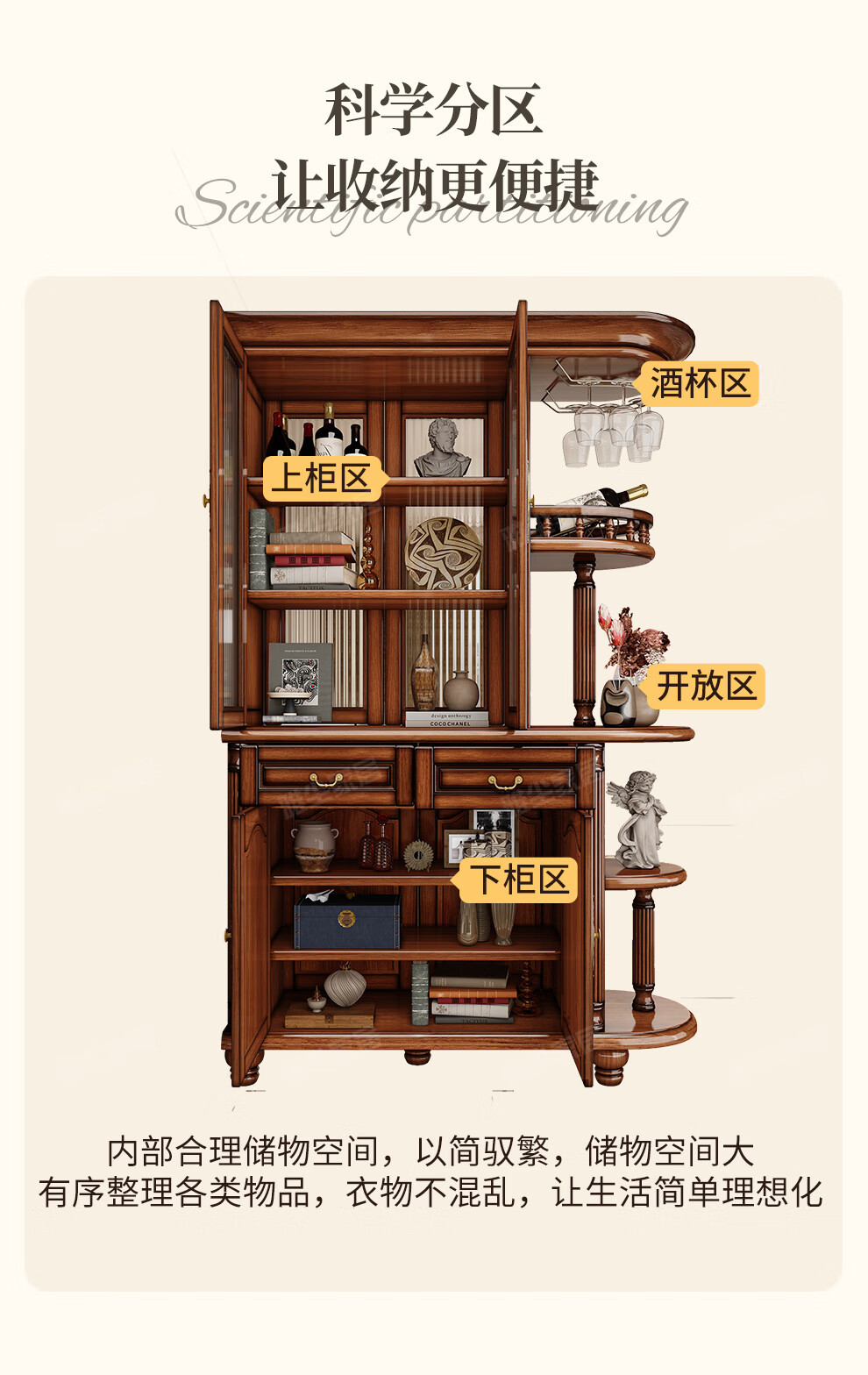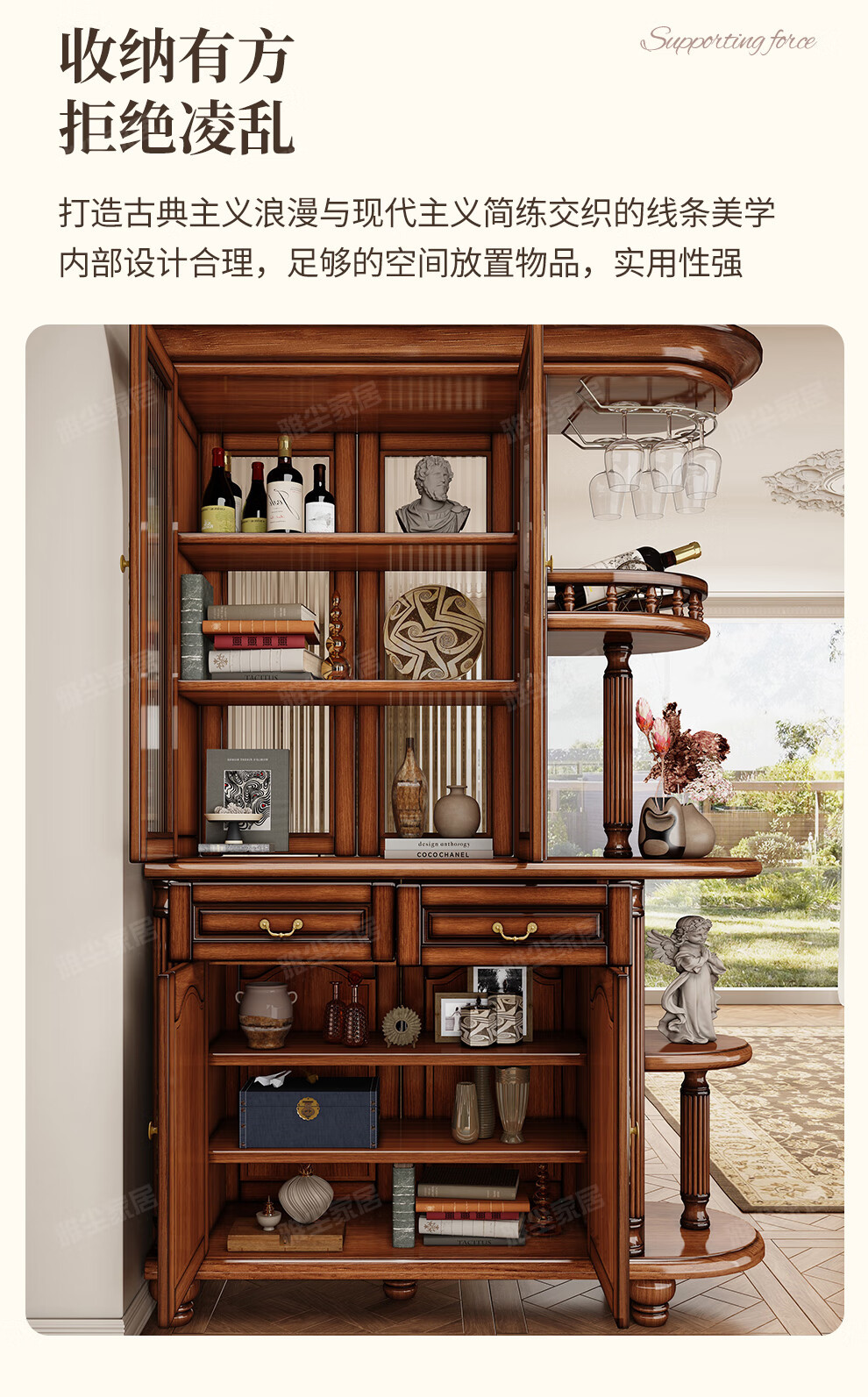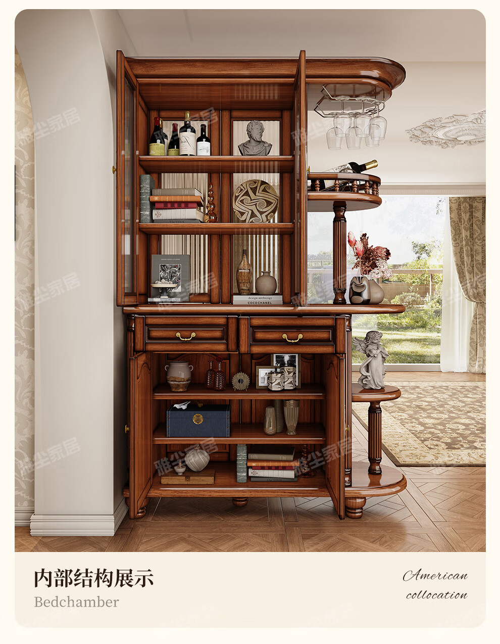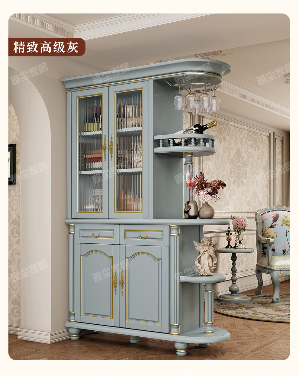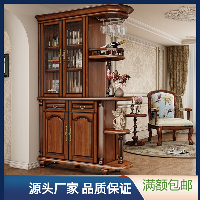 아메리칸 스타일 솔리드 우드 룸 캐비닛 빈티지 와인 캐비닛 스토리지 홀 양면 입구 캐비닛 거실 파티션 라이트 럭셔리 사이드 보드