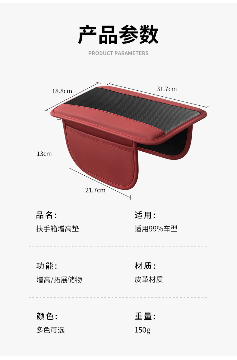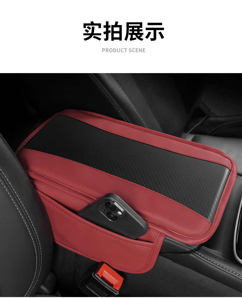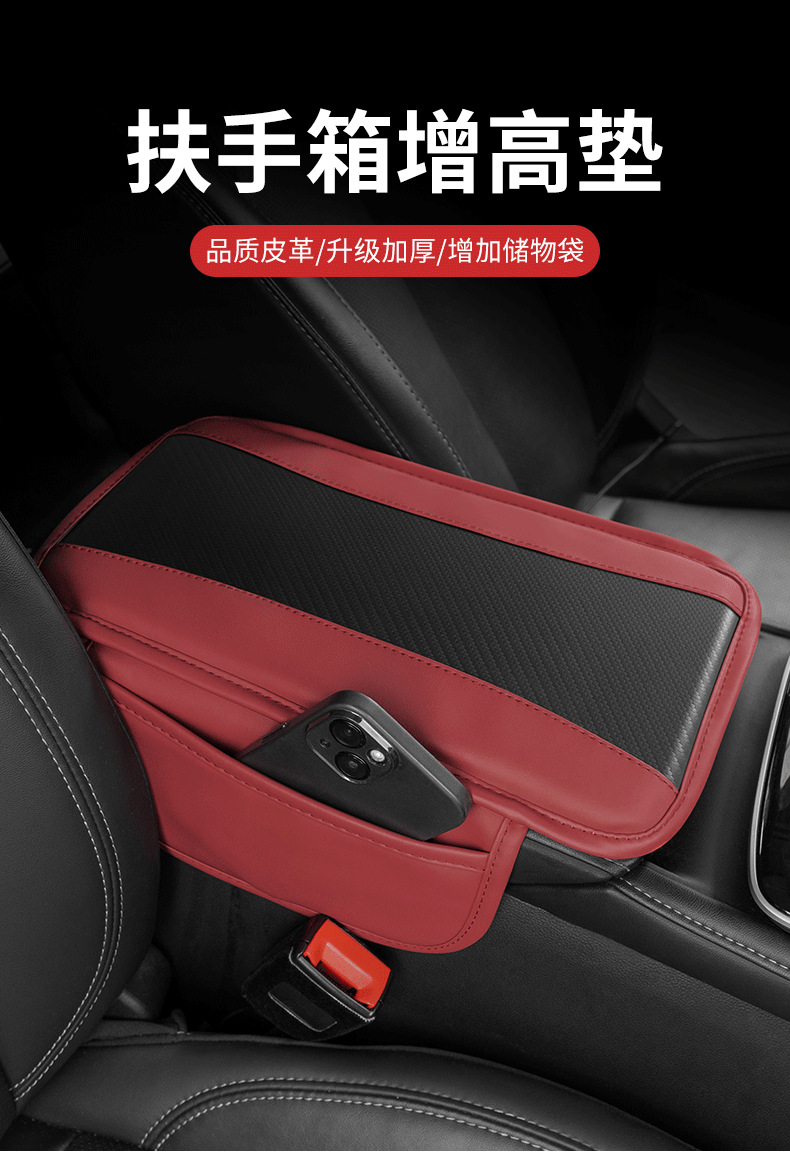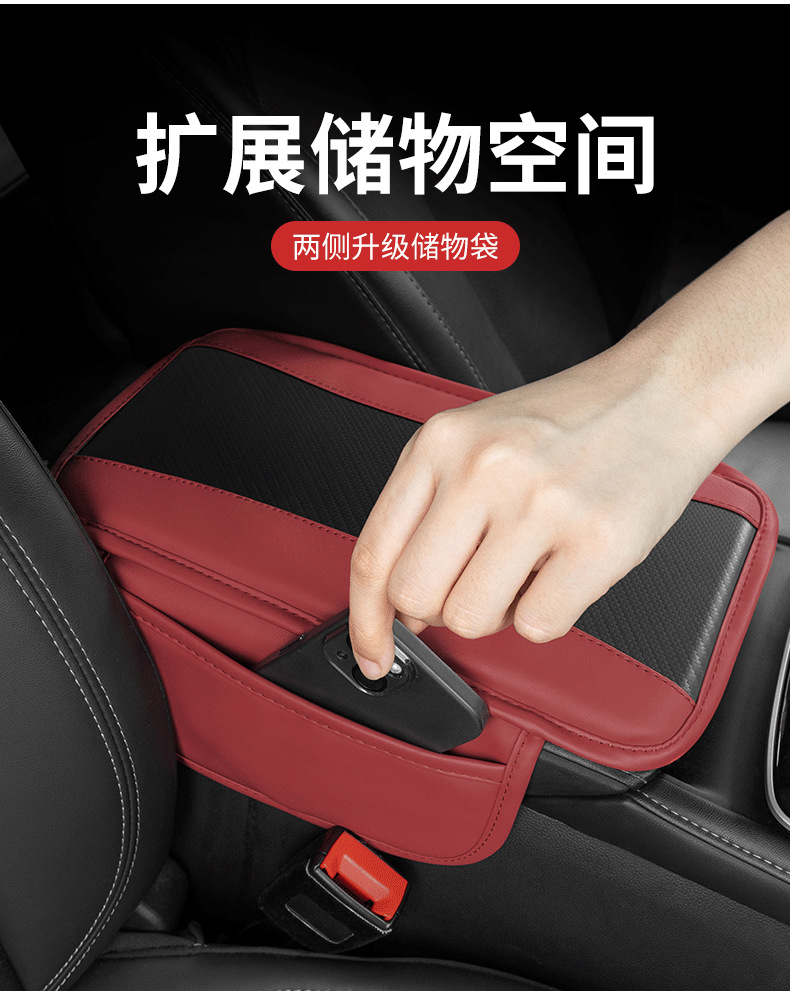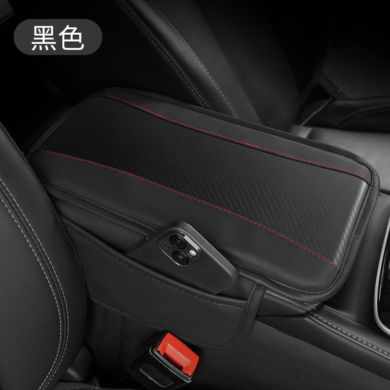 자동차 팔걸이 상자 패드 다기능 저장 가방 사이드 가방 자동차 팔걸이 상자 보호 패드 자동차 높이 패드 탄소 섬유 패턴