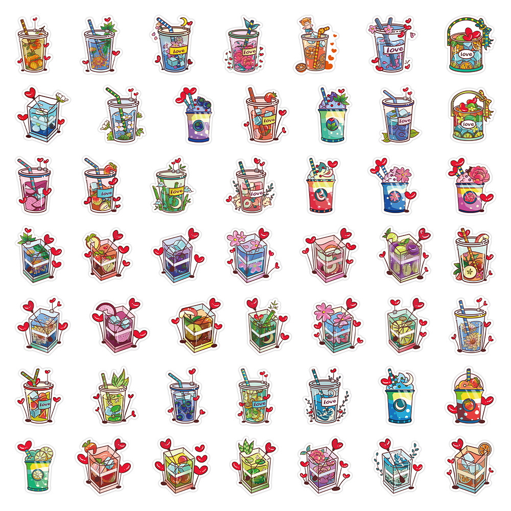 슈퍼 비용 효율적인 100 만화 발렌타인 데이 우유 차 음료 스티커 창조적 인 DIY 휴대 전화 쉘 손 계정 iP 배치